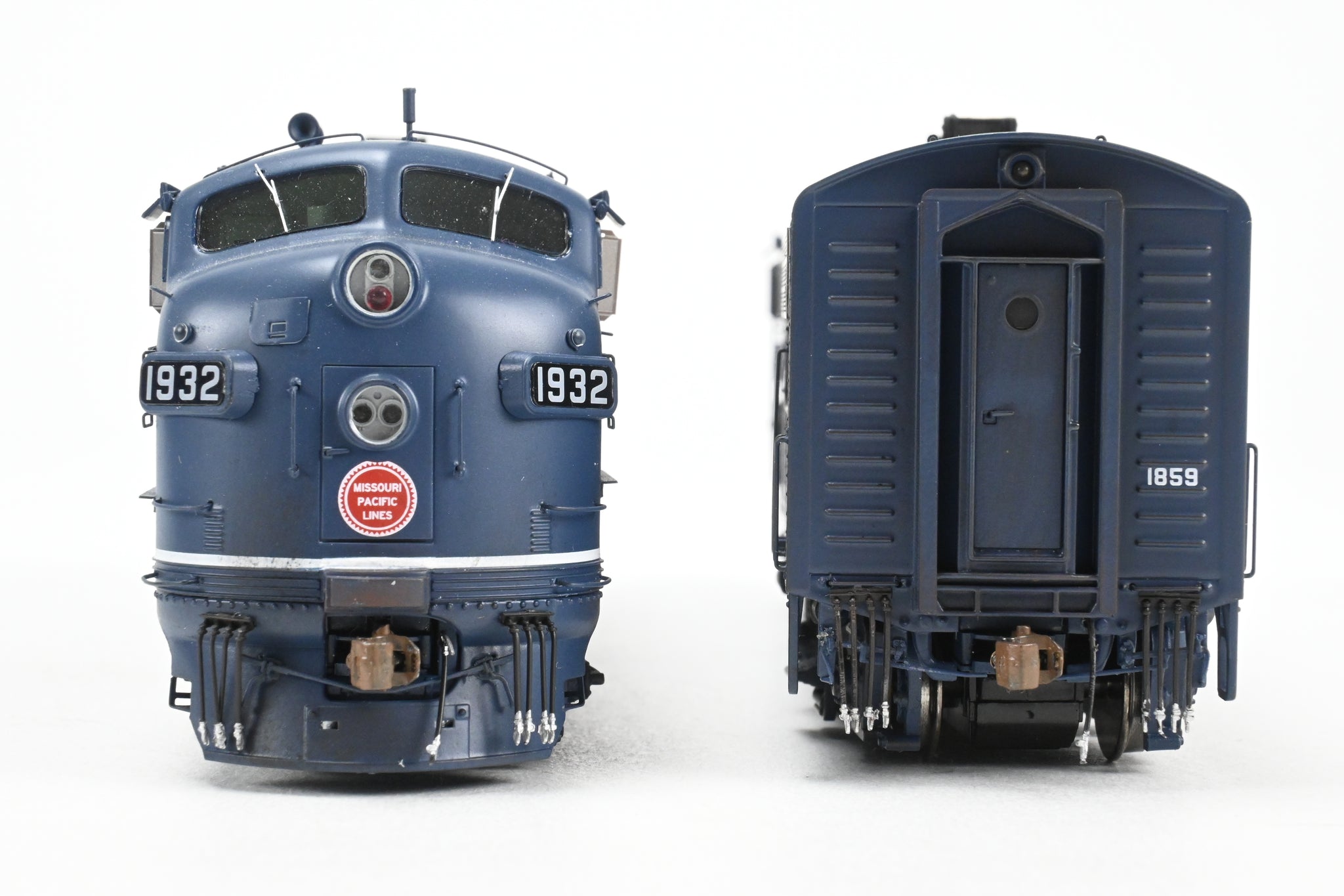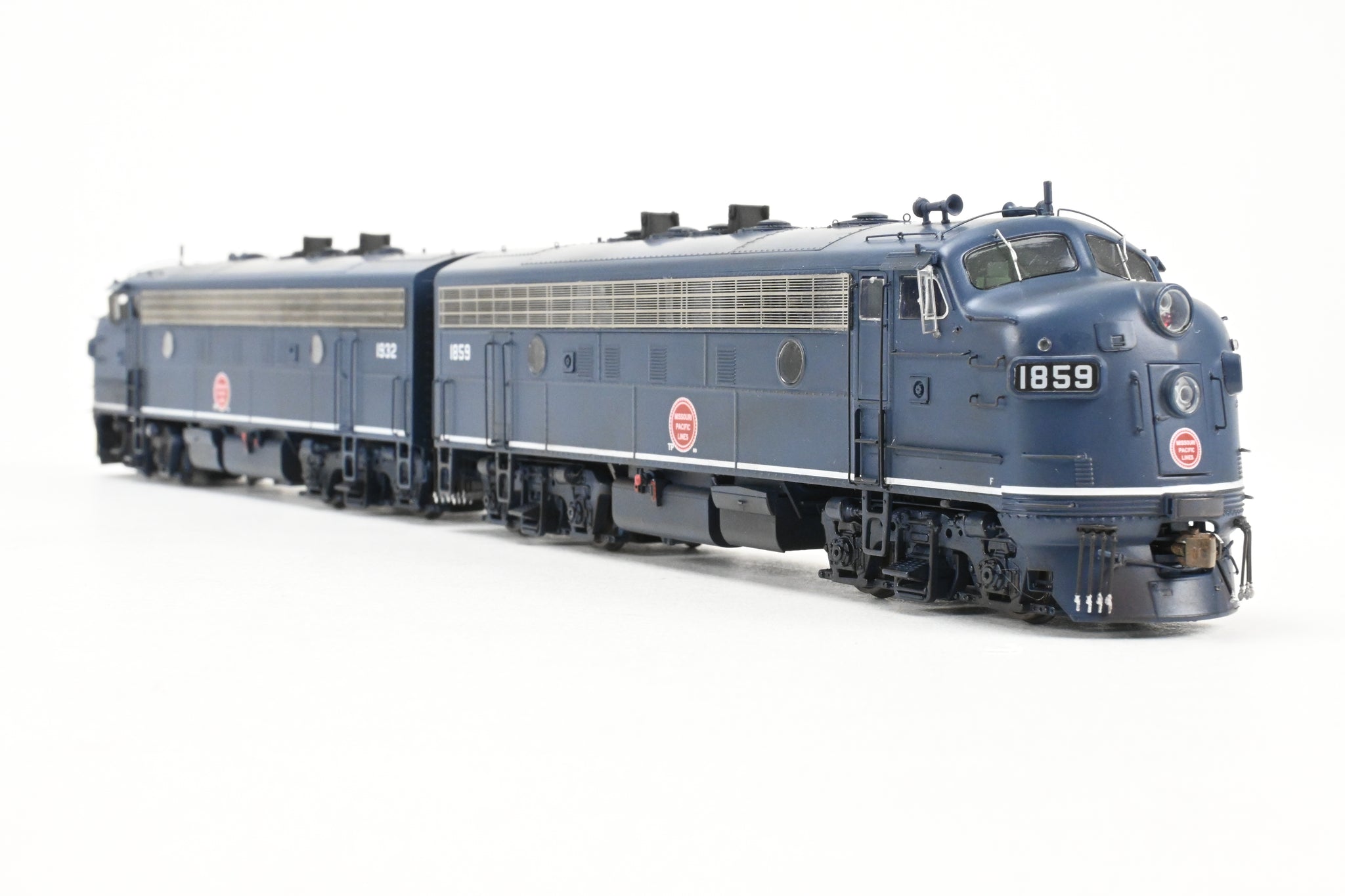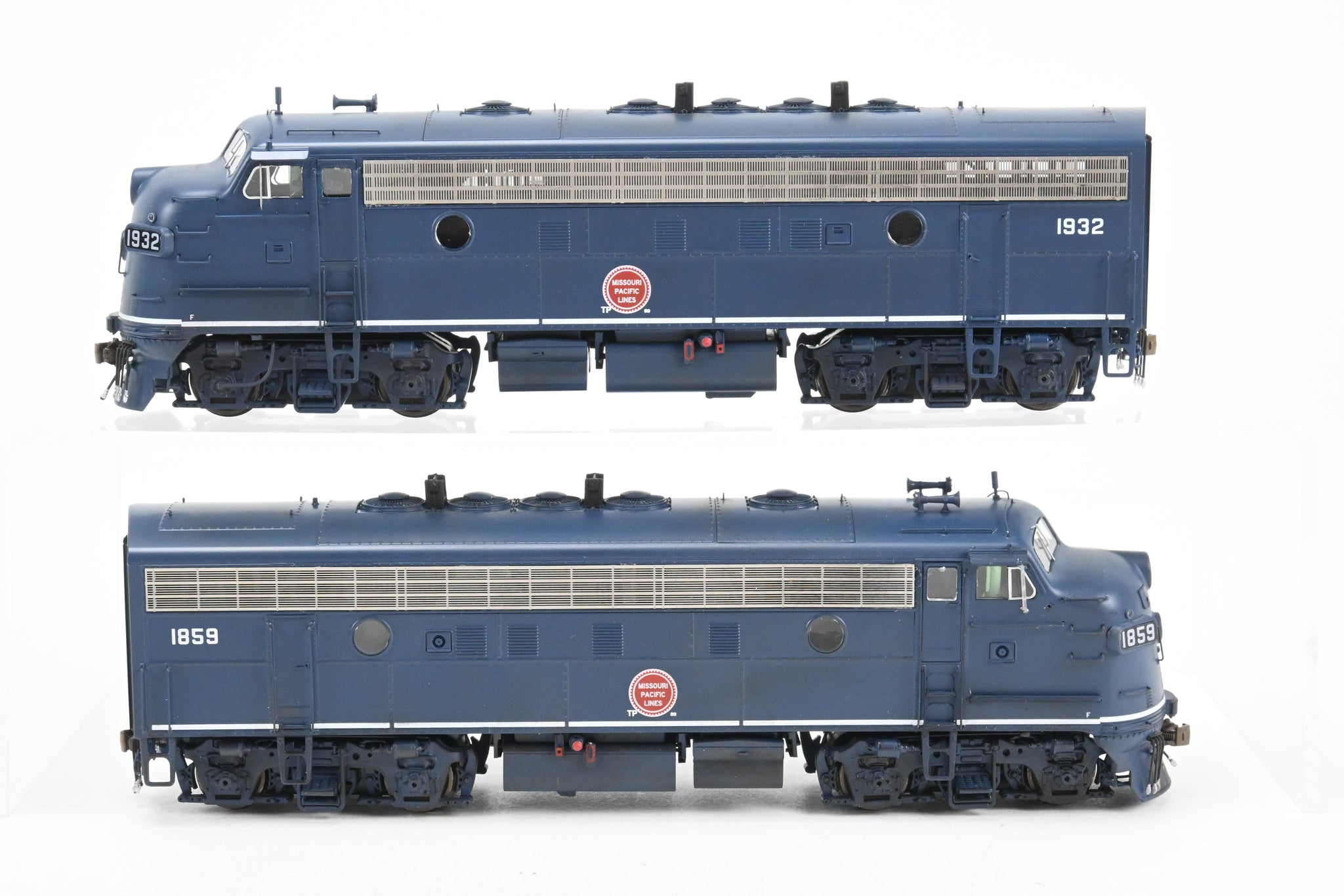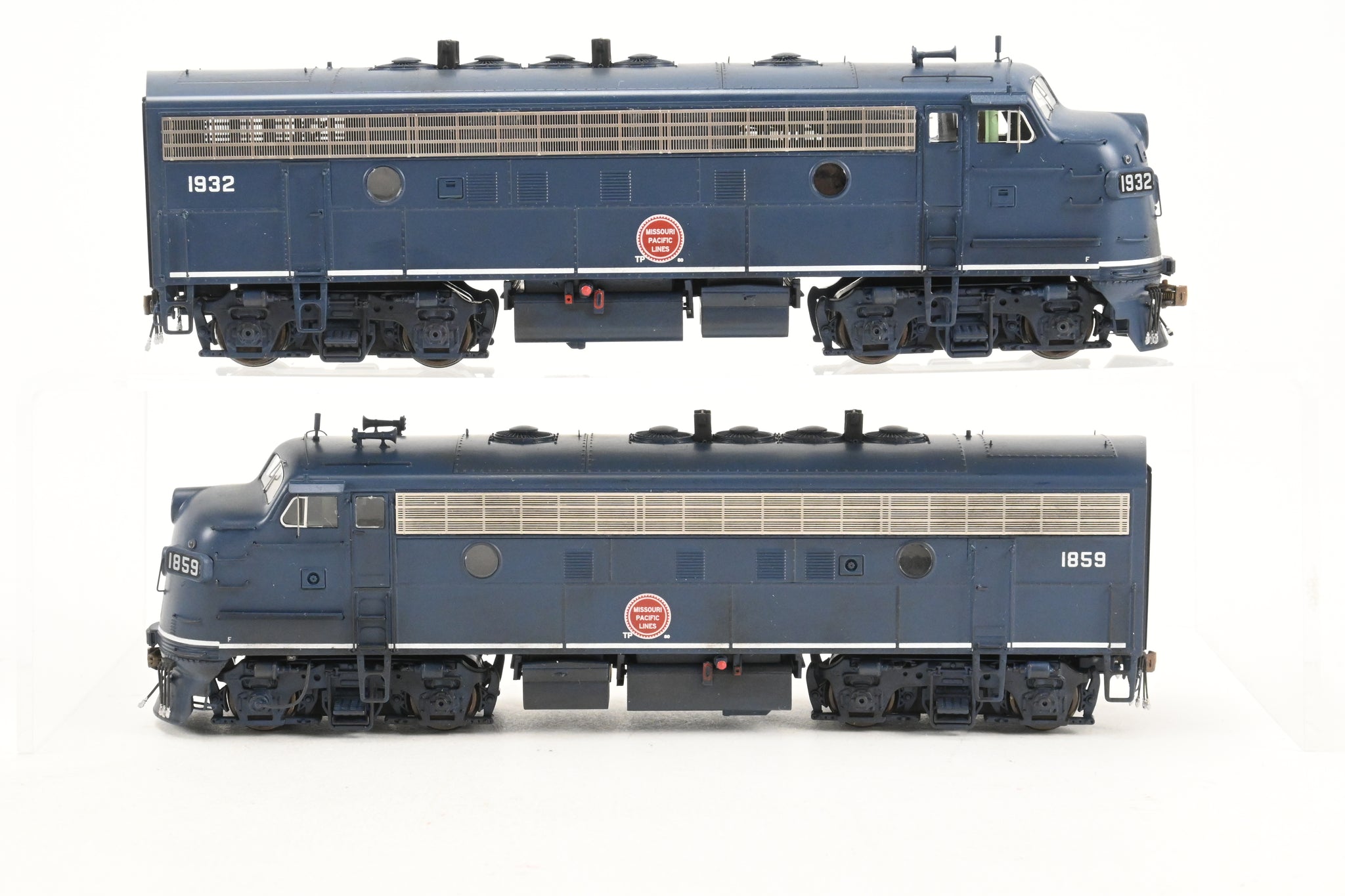 2020's run Athearn Genesis product line made in China. Boxes shows minimal shelf wear. No spare parts or paperwork included. Models have an excellent factory paint scheme in Jenks blue with Buzzsaw herald and sublettered for T&P numbers 1859 and 1932. Both models are smooth and quiet runners. A nice model. NOTE: Models are lightly weathered - see photos.