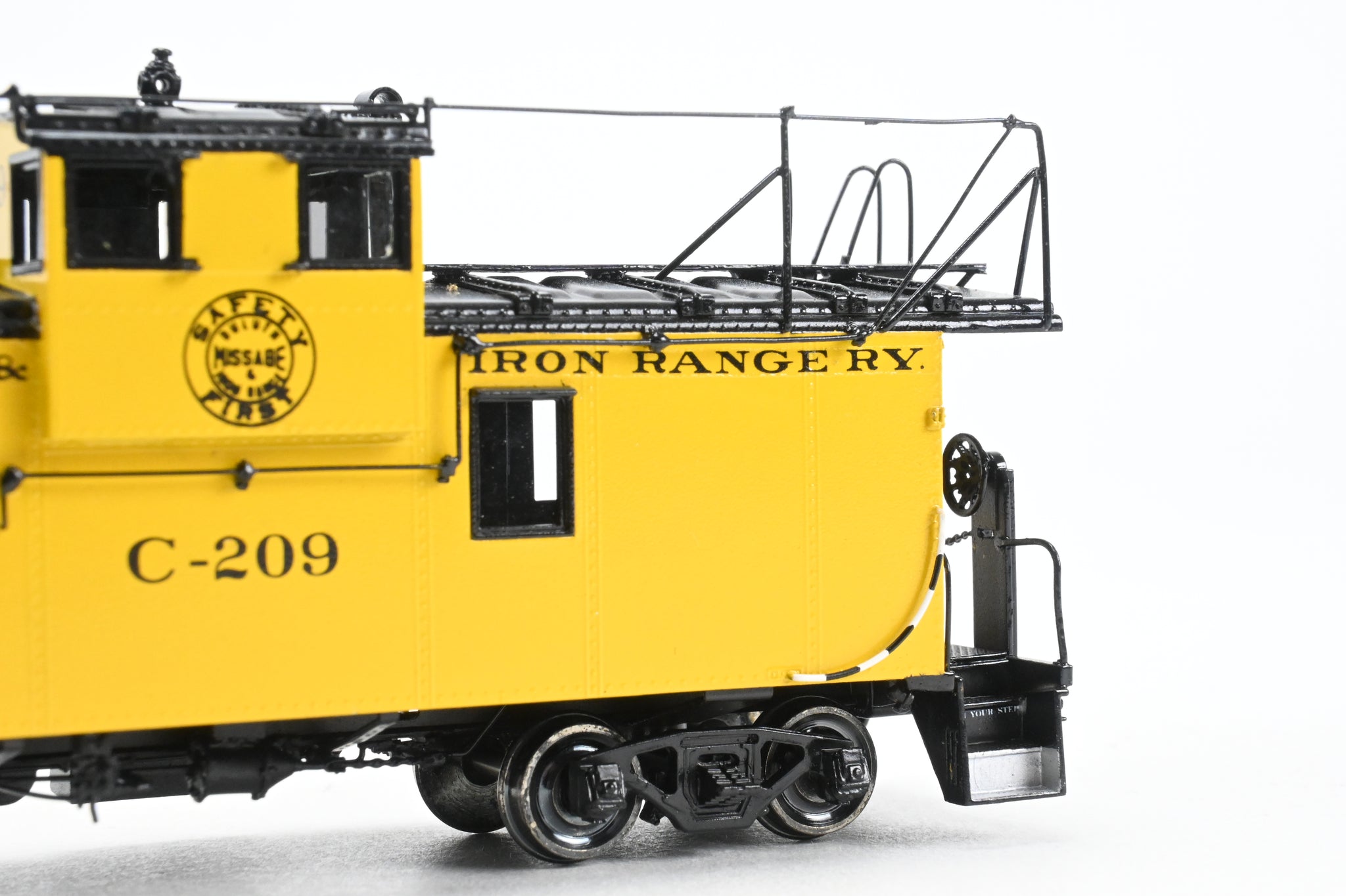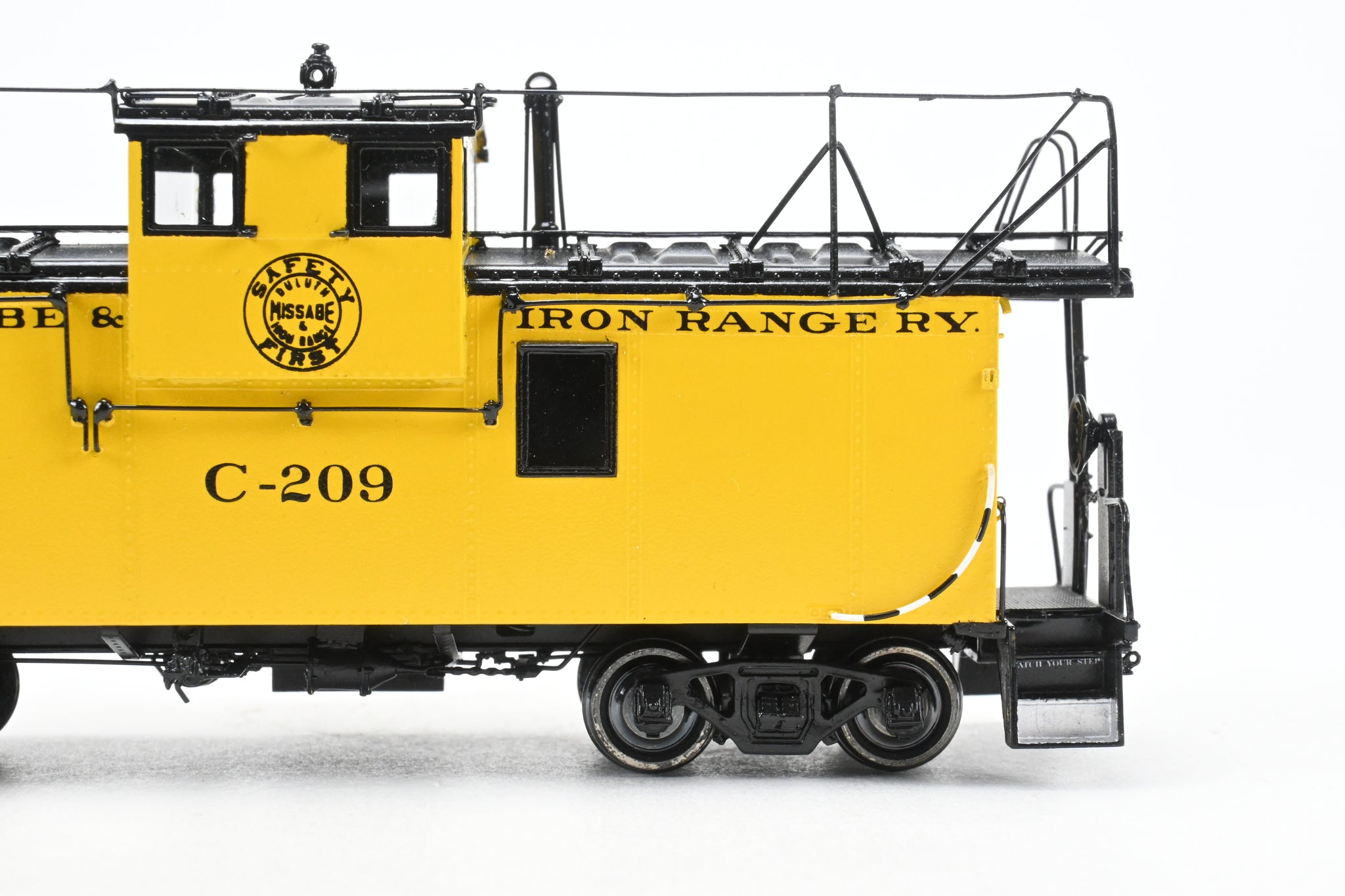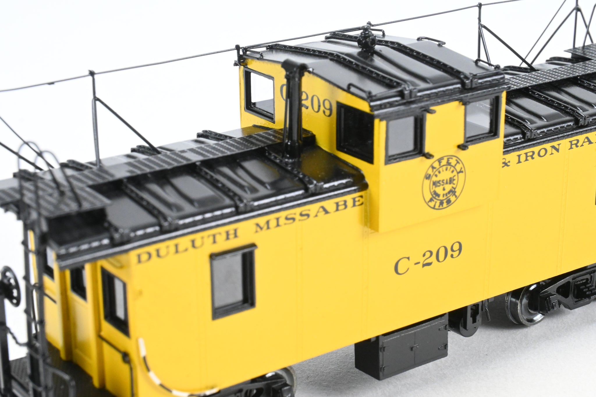Decorated: Excellent factory paint in the DM & IR Yellow and black scheme with black lettering with the "Safety First" logo on the side of the cupola.