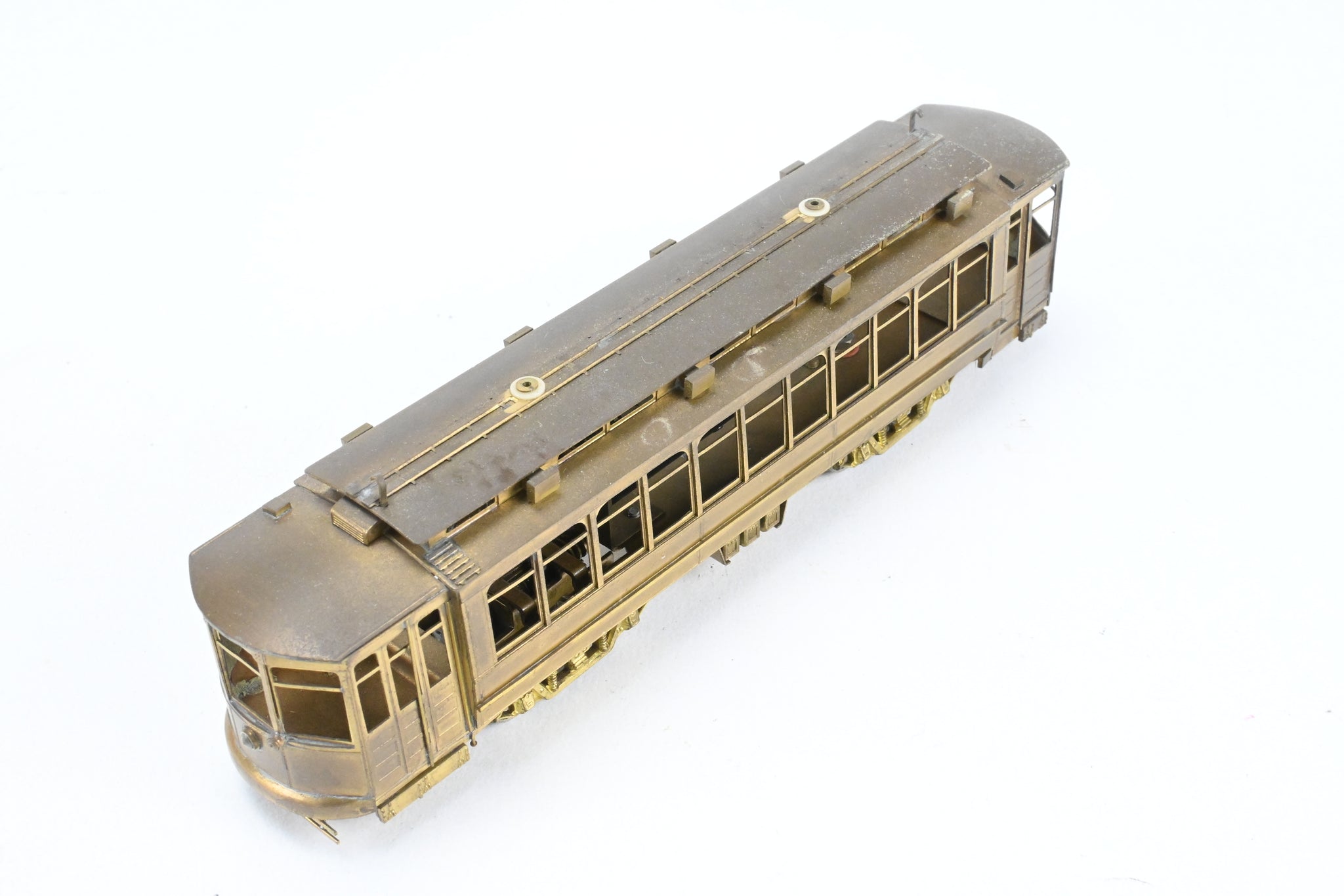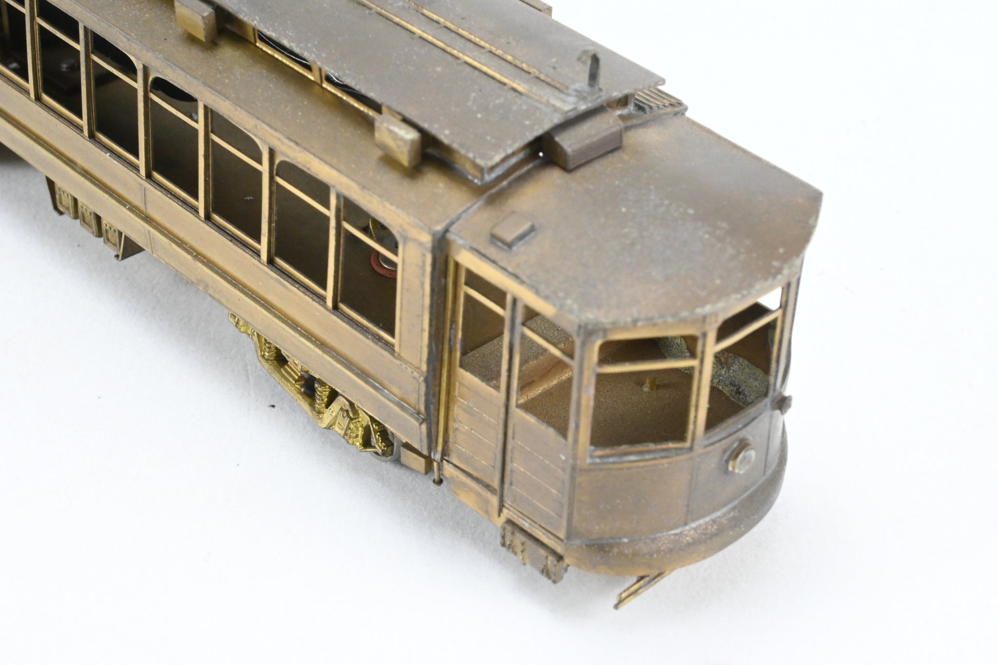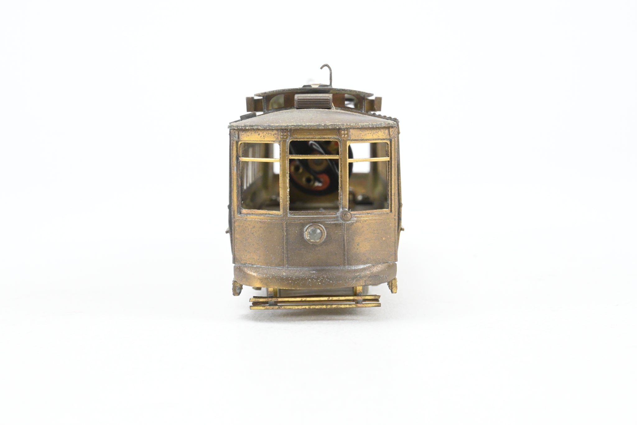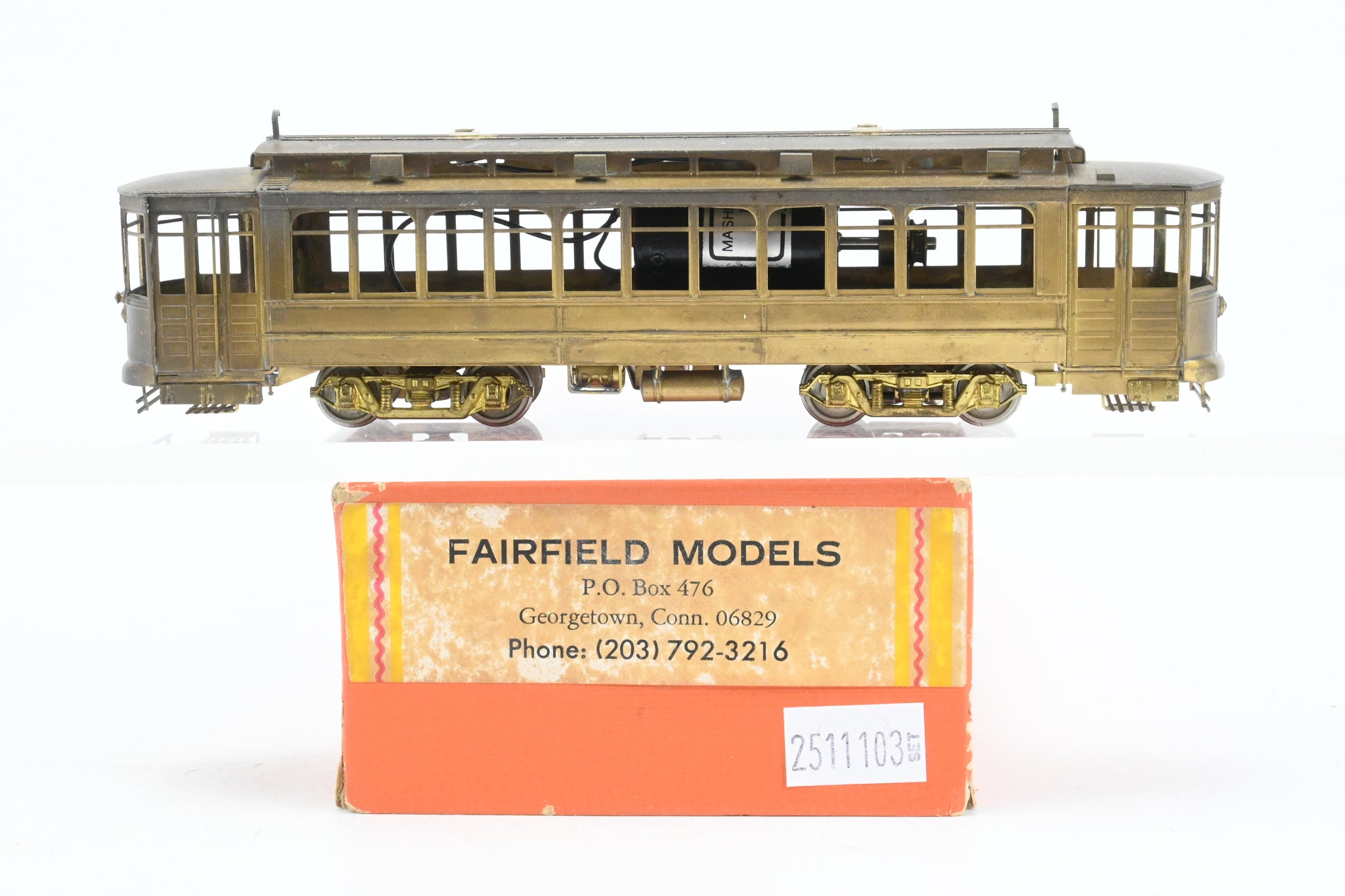1975 run built for Fairfield Traction Models by Kumata of Japan. Box shows minor wear. Recently serviced. Spare parts including trolley poles. Model has heavy tarnish. See photos. NOTE: Missing one drive band and runs poorly.