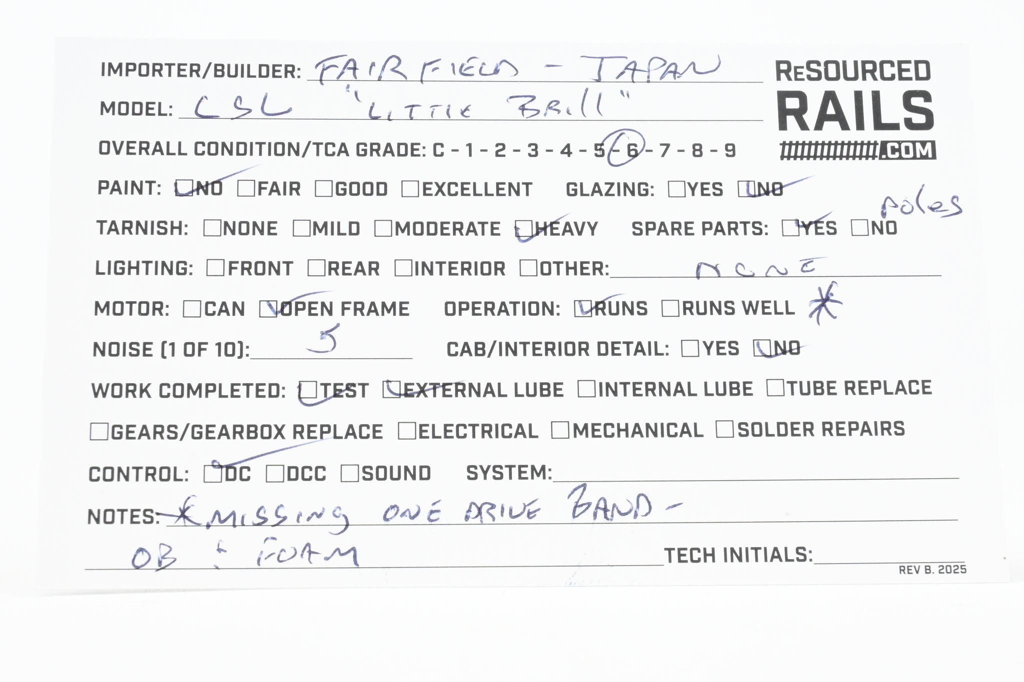 HO Brass CON Fairfield Models CSL - Chicago Surface Lines 5200-5600 Series Pullman Car MISSING ONE DRIVE BAND