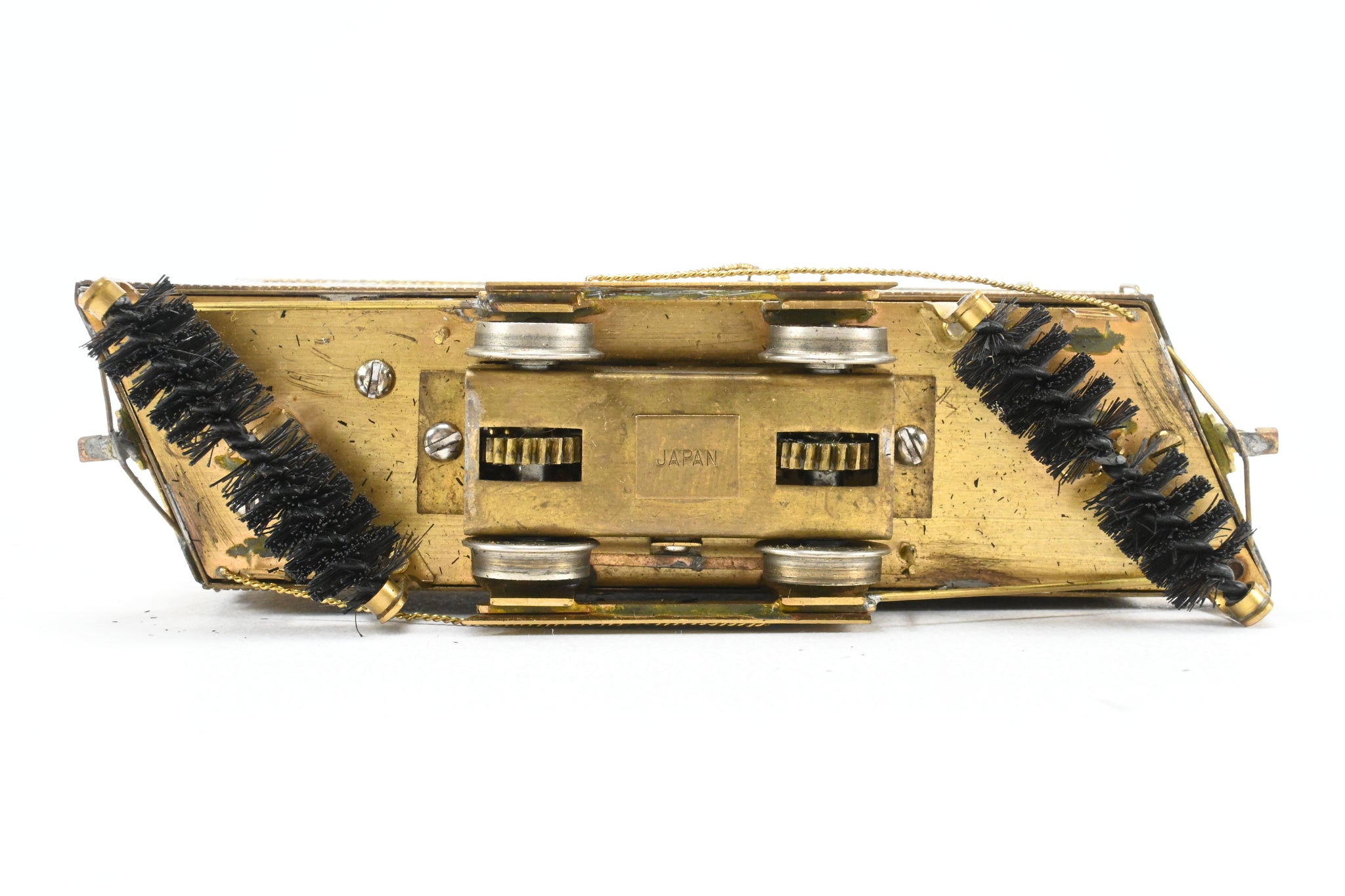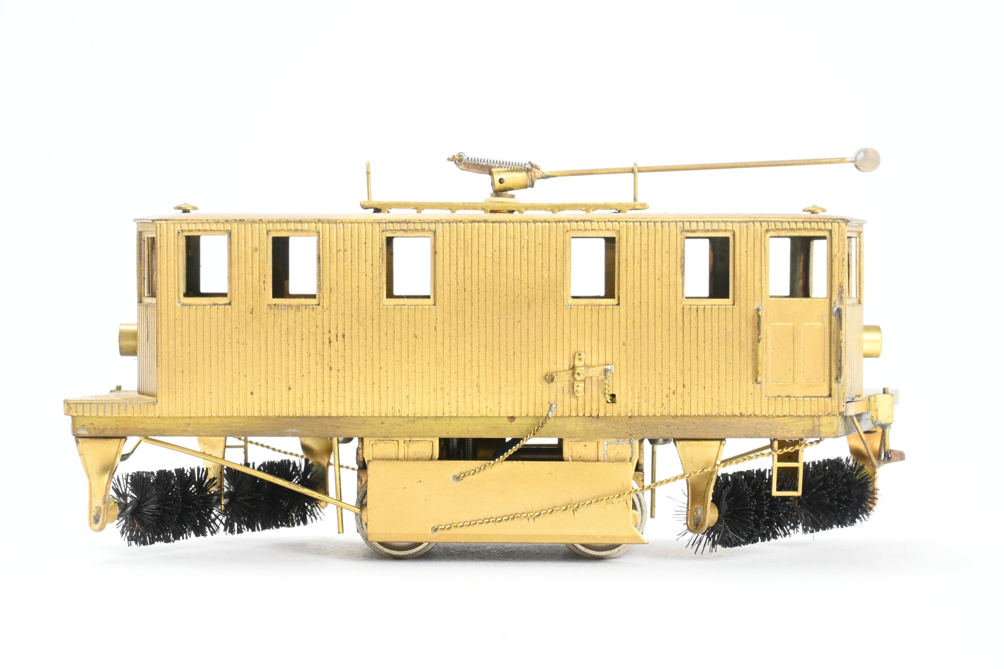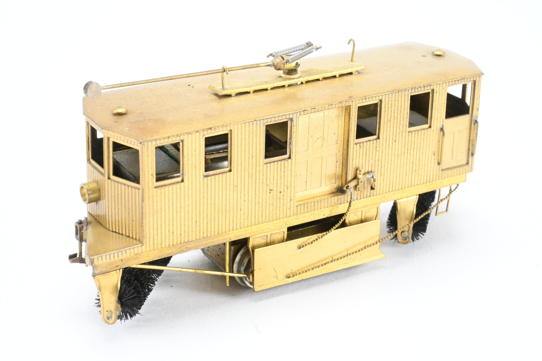 1964 run built for Fairfield Traction Models in Japan. Original box and foam, but label is long gone. Box and model are both in pretty good shape. Trolley pole installed. Represents a singled truck car used by various roads. Solidly built, Good wheel plating, overall, a nice model. Model has been lubed and tested. Note: We believe this to be a CSL - Chicago Surface Lines prototype but cannot confirm that.