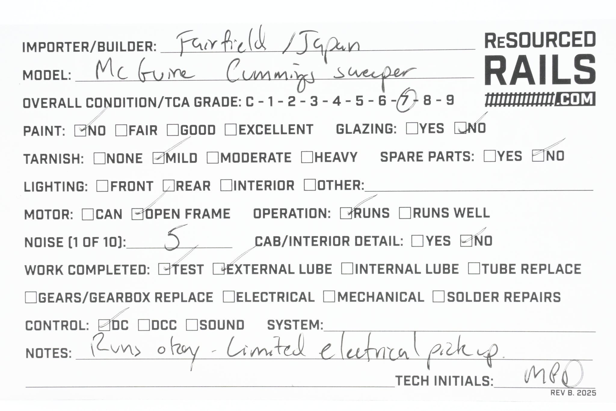 Operation: Runs - limited electrical pickup