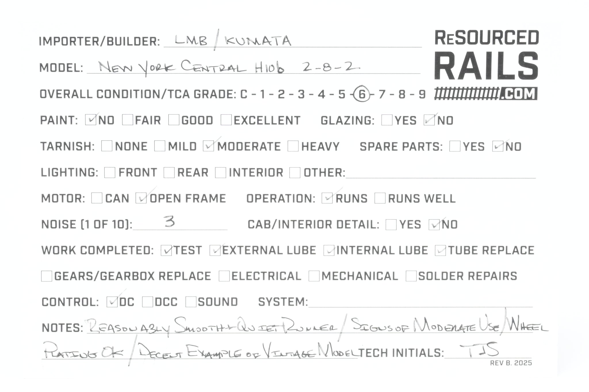 1969 run LMB Models imported model built by Kumata in Japan. Box shows some shelf wear. Model is unpainted with moderate tarnish - see photos. Recently serviced with old gearbox grease cleaned out and replaced. A new drive tube was installed. A reasonably smooth and quiet runner. A decent example of a vintage model.