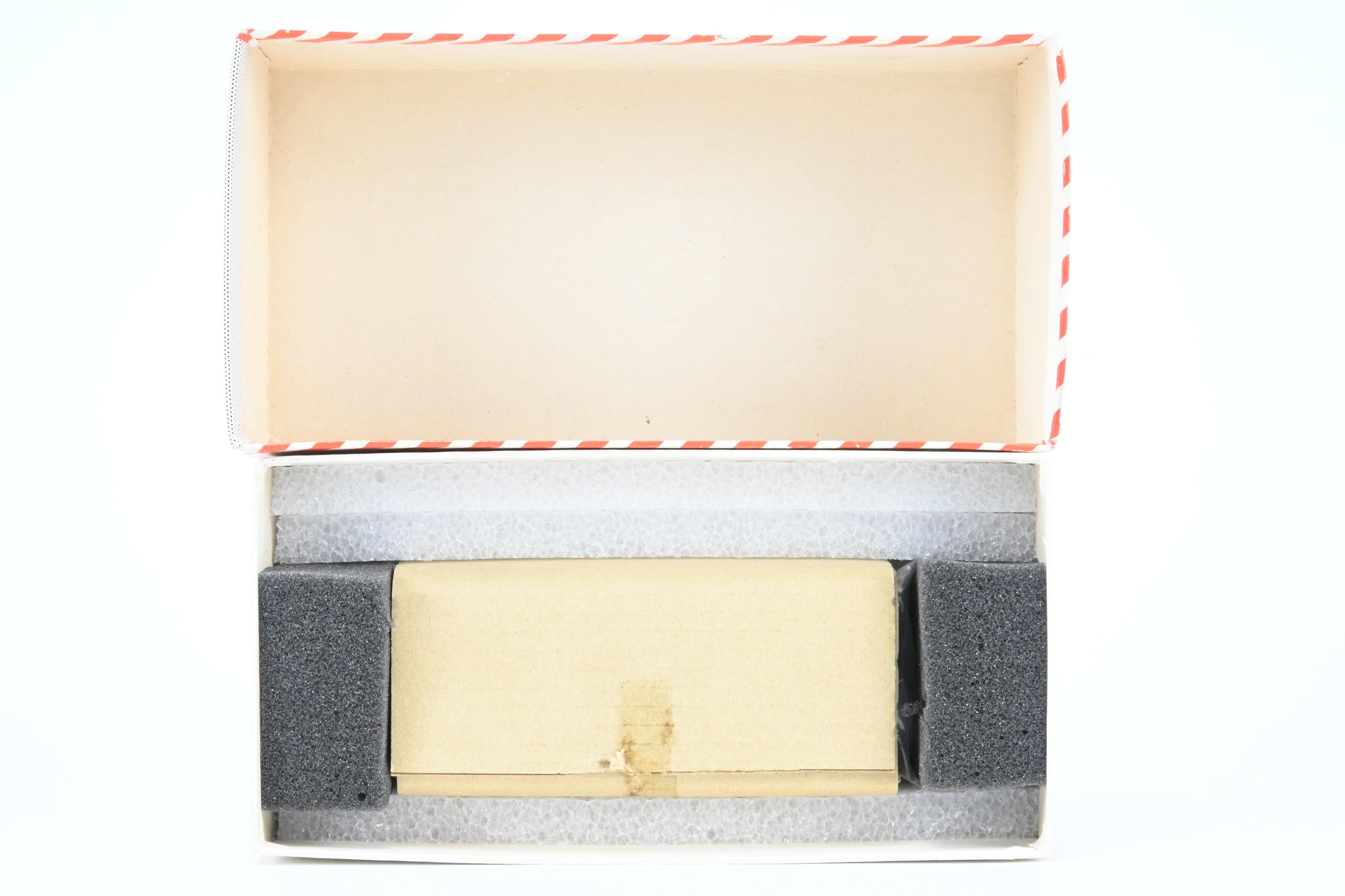 1968 run Model Engineering Works model built by Katsumi in Japan. Original box shows minimal wear. No spare parts. Metal band drive with limited electrical pickup - the model does run. A bit loud still a solid model. Model has been lubed, tested, and drive tube replaced. NOTE: Condition would be a C-7 but is missing the pantograph - see photos.