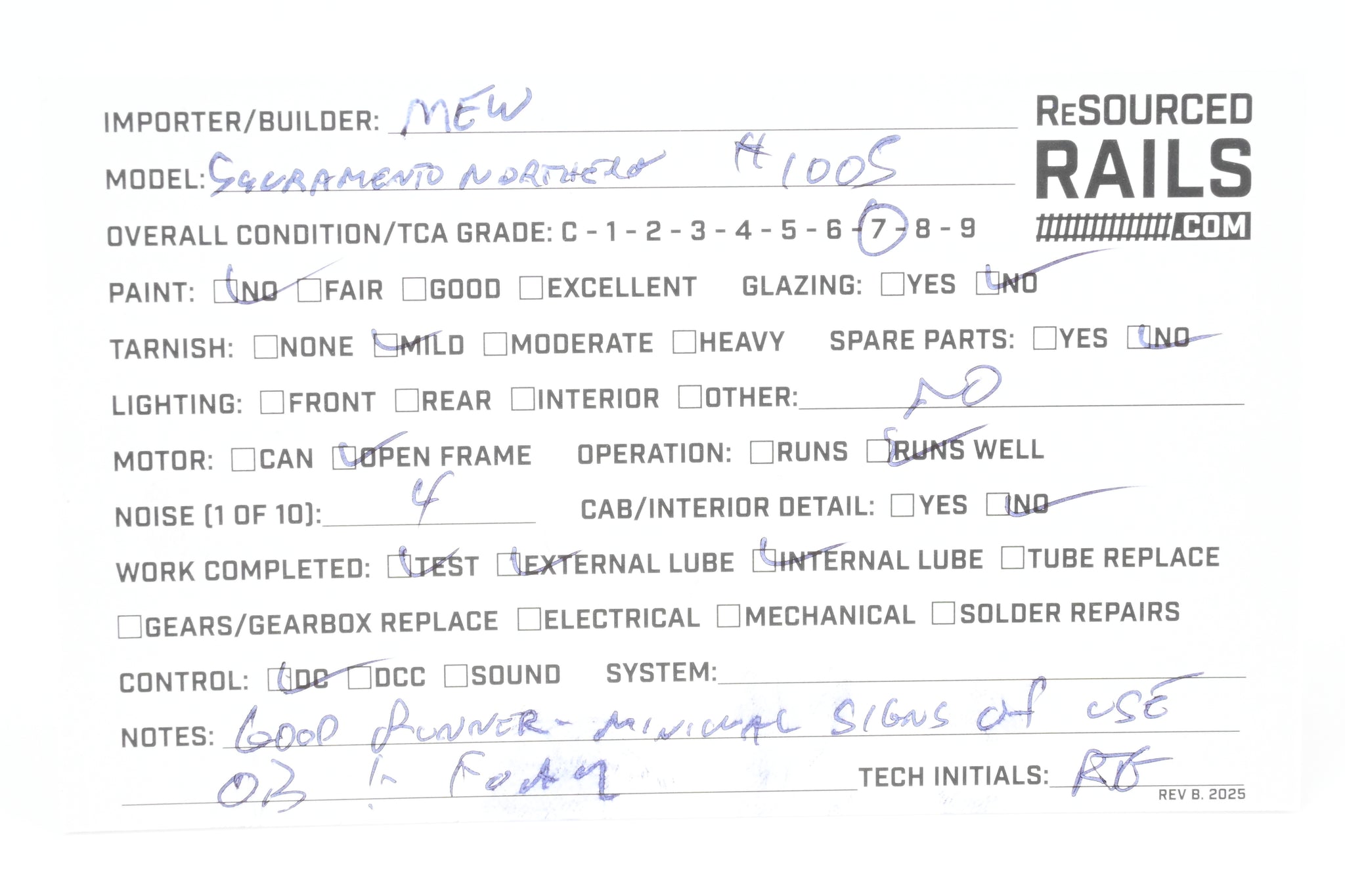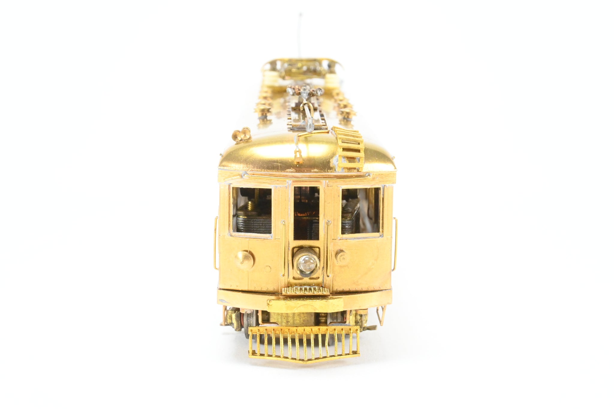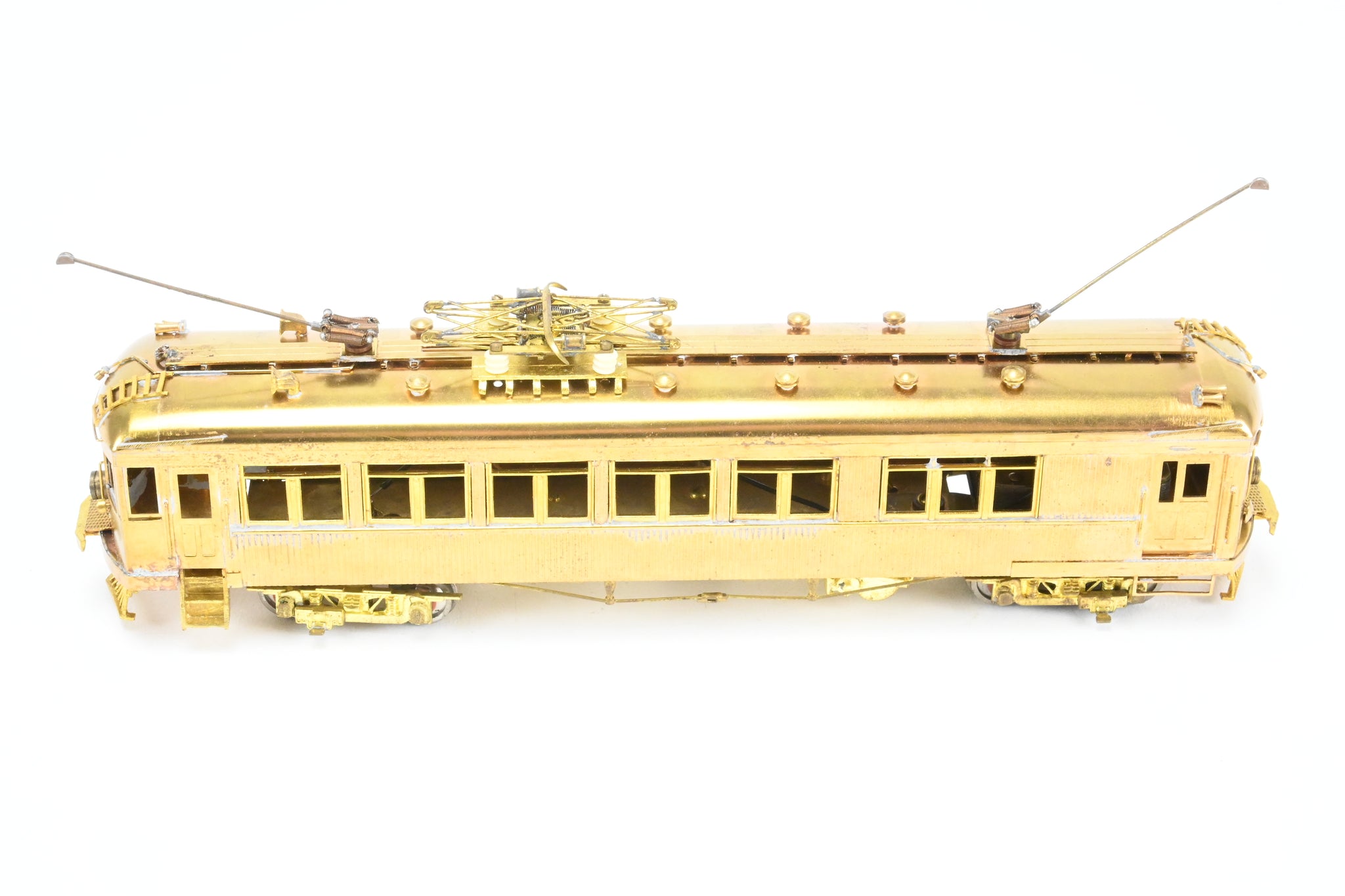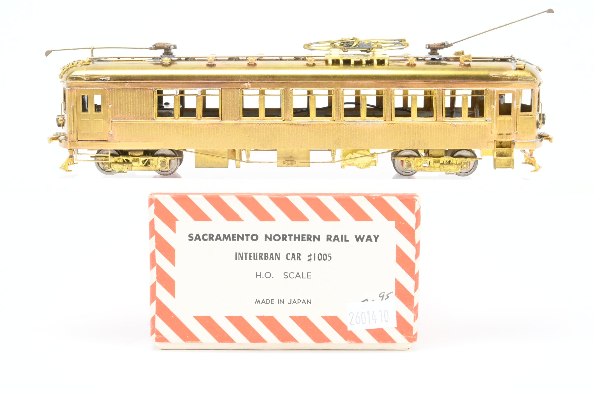 Model Engineering Works model built in Japan. Original box shows minimal wear. No spare parts. Original foam included. Metal band drive with limited electrical pickup - runs well given this design. Includes paperwork. Note: One trolley Pole hook is loose but included - see photos