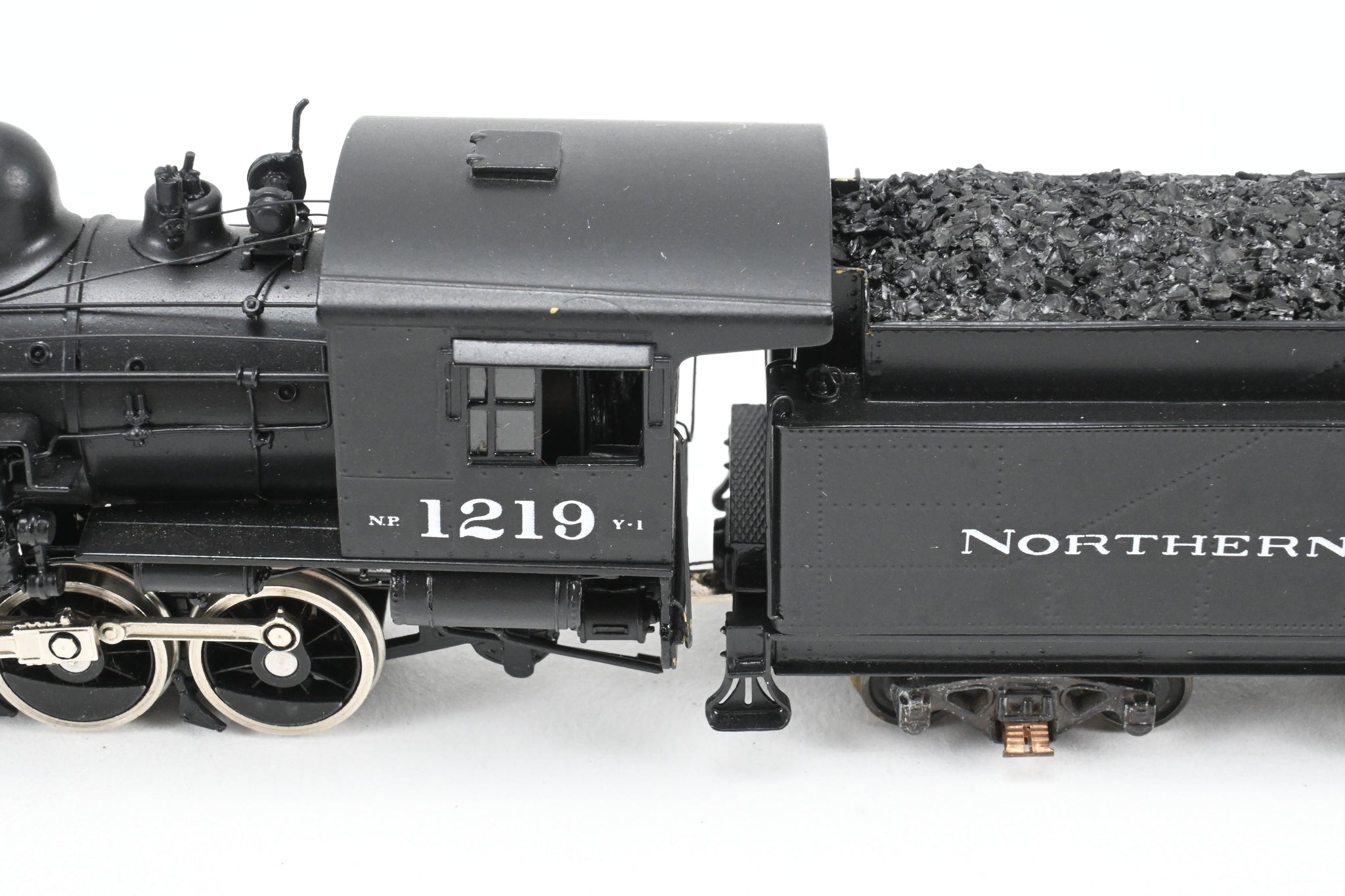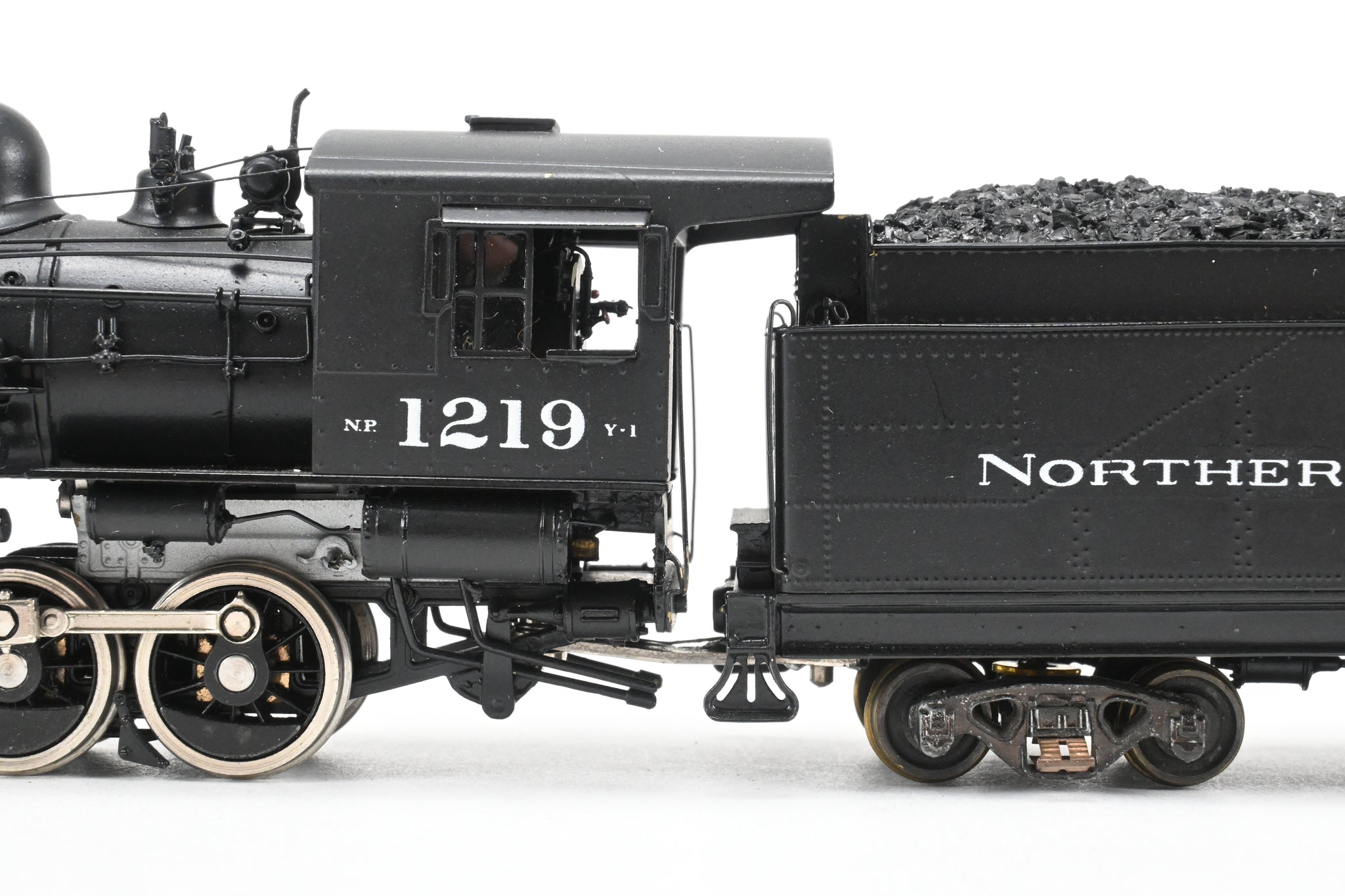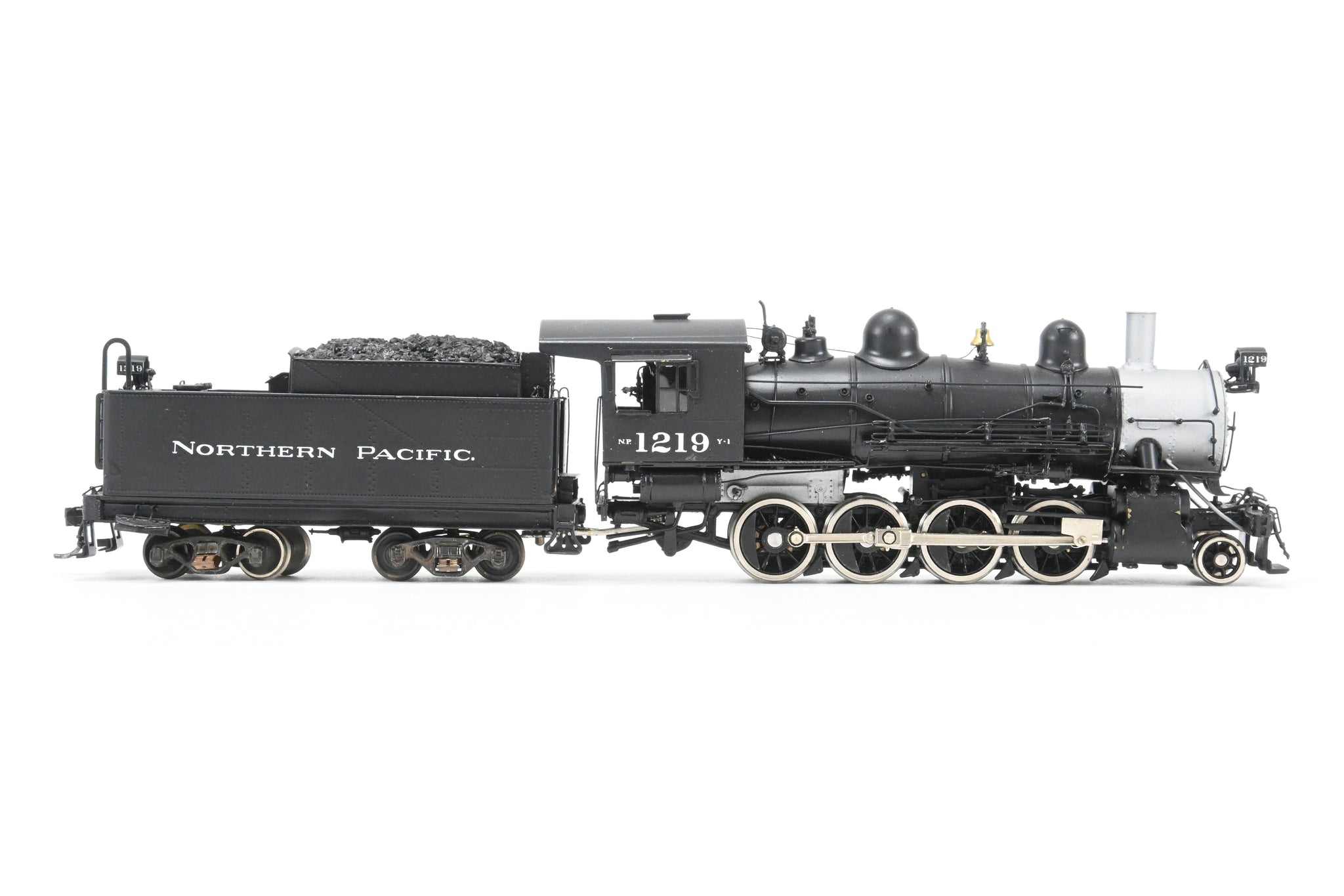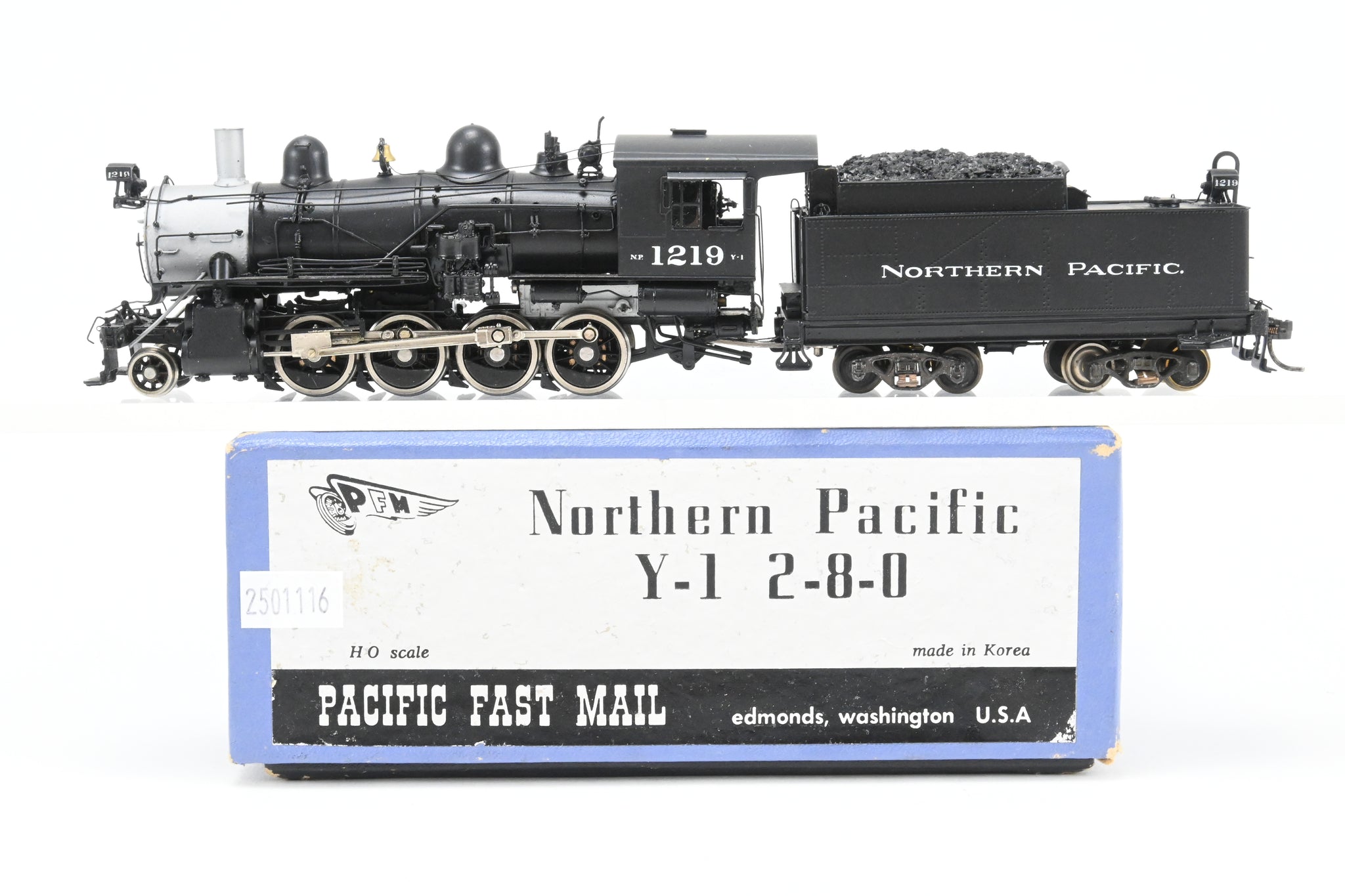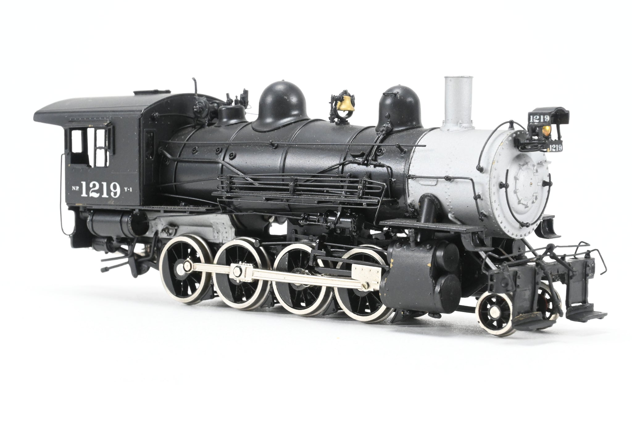 1977 run Pacific Fast Mail model built by Samhongsa in Korea. Box shows minimal wear. Model has a switcher headlight, clear vision tender, and step-board pilot. Sound ready - tender factory drilled speaker. No spare parts included. A smooth and reasonably quiet runner. Custom paint work is good with some wear - see photos. Finished with a coal load in the tender and lenses in the lights. A nice model of a NP Y-1 2-8-0. NOTE: model is rated a condition C-5 due to pilot has been ground to fit coupler box and is not original - see photos.