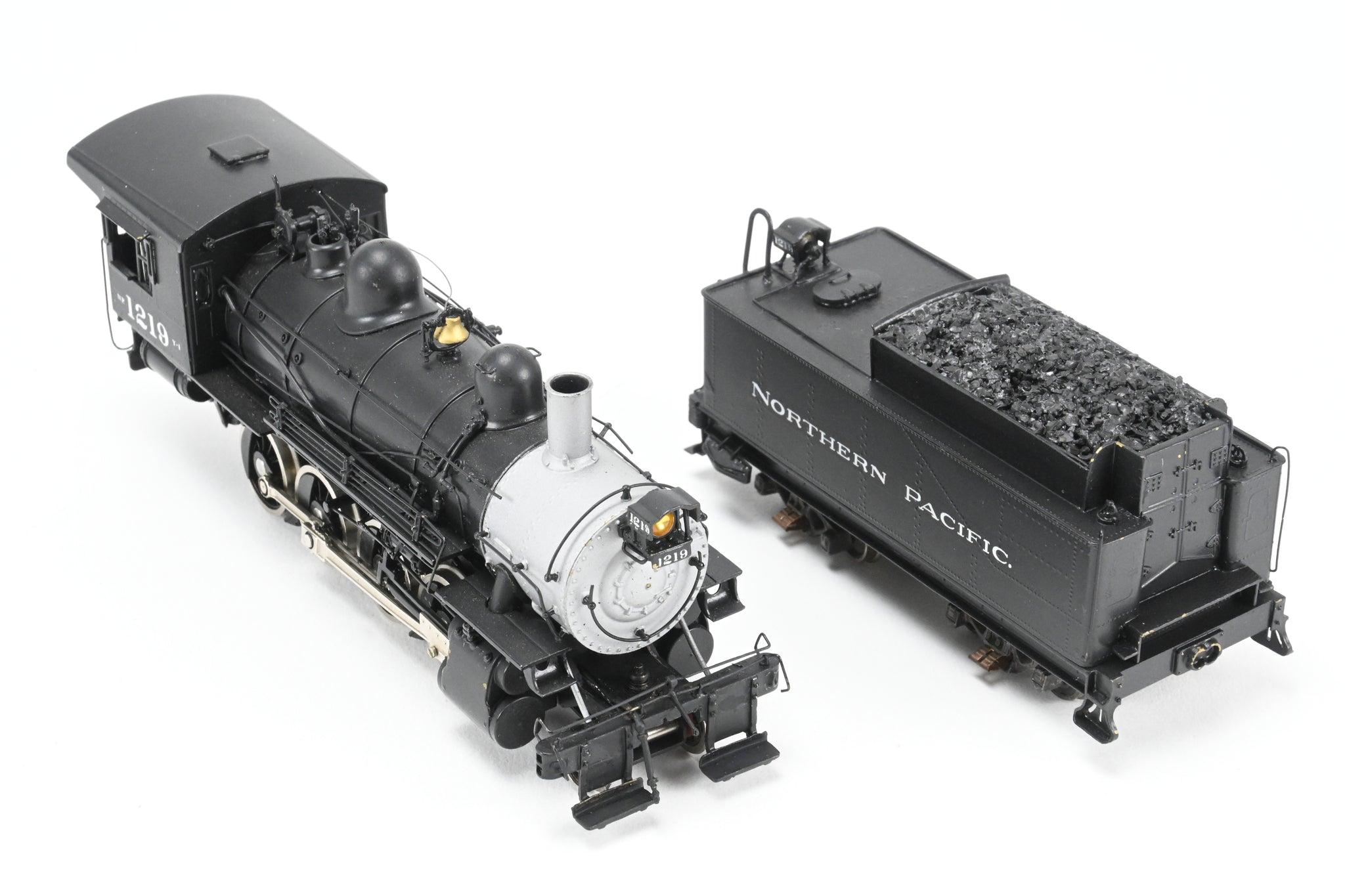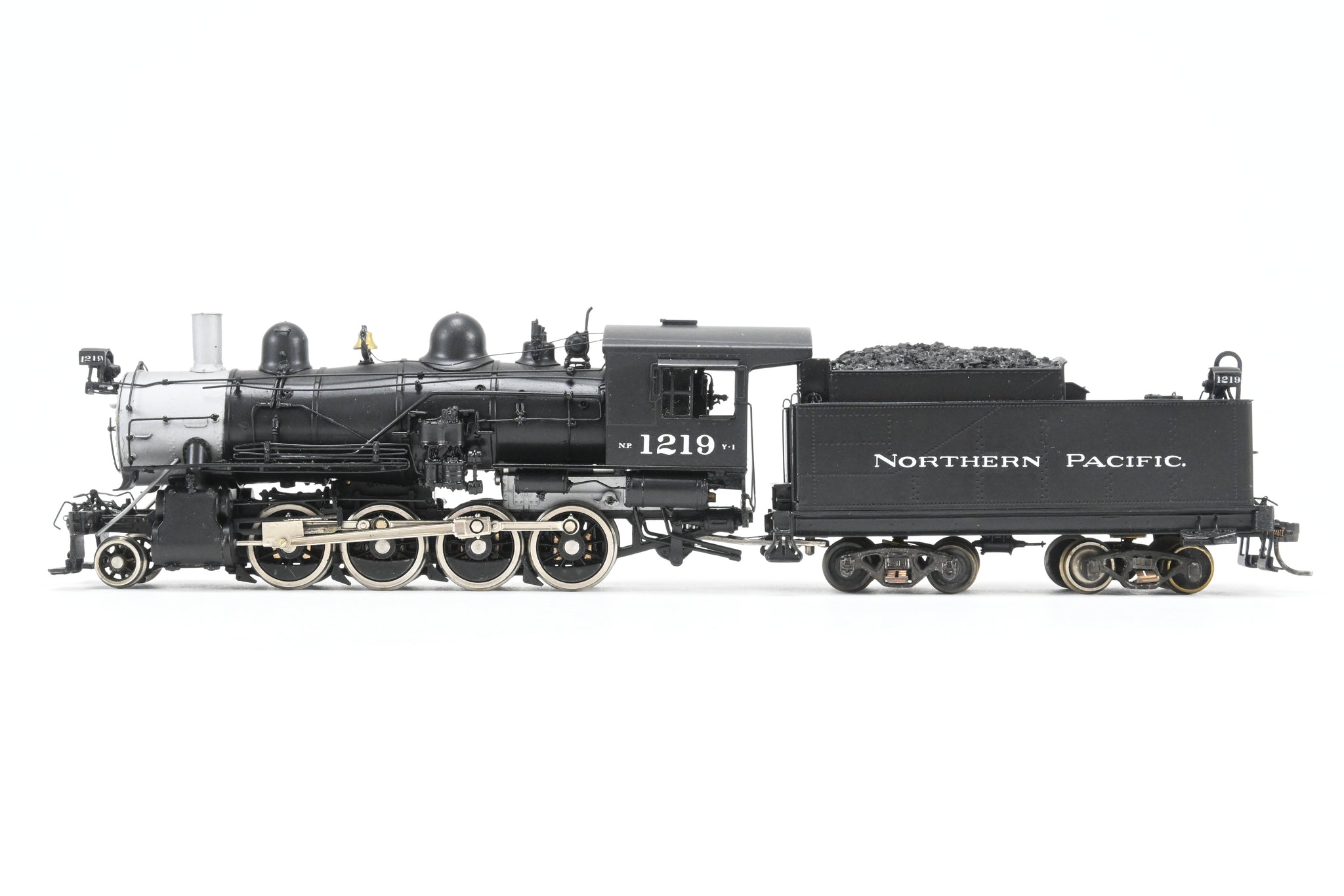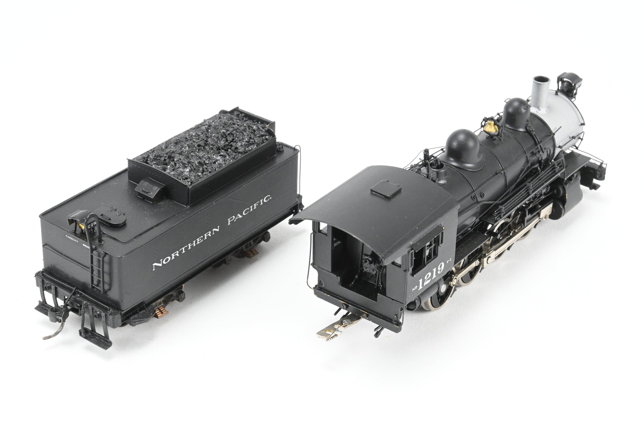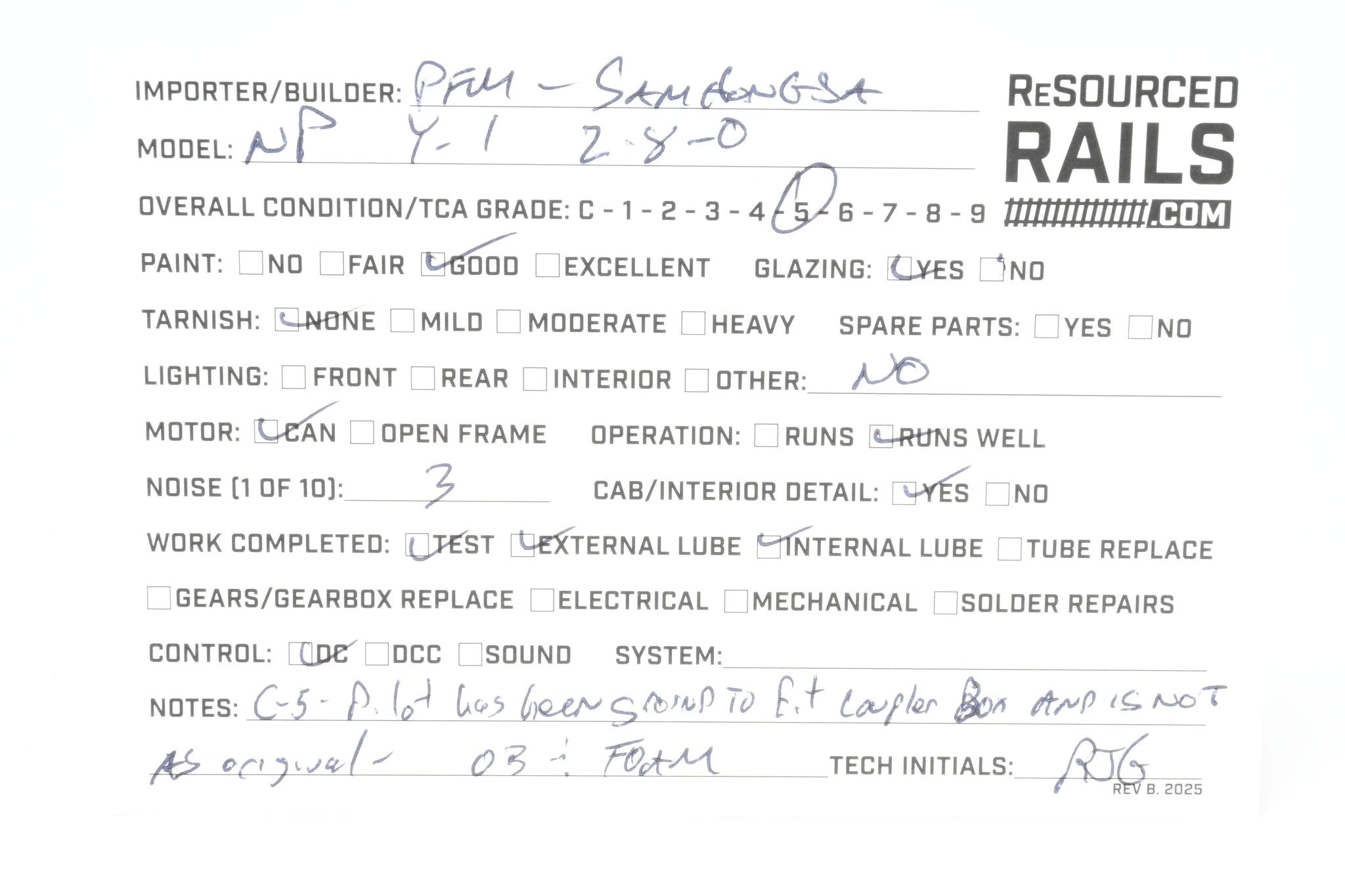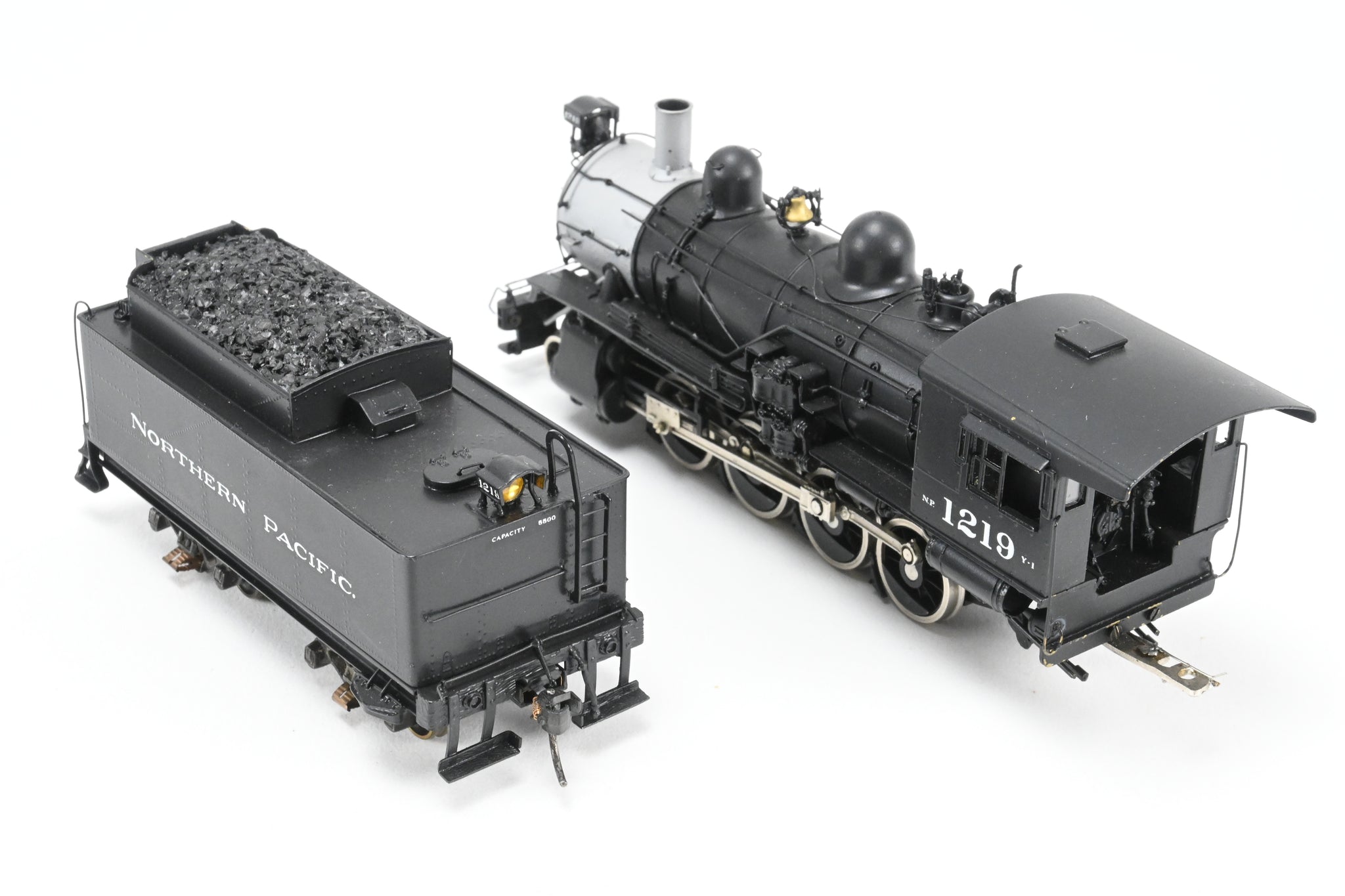 1977 run Pacific Fast Mail model built by Samhongsa in Korea. Box shows minimal wear. Model has a switcher headlight, clear vision tender, and step-board pilot. Sound ready - tender factory drilled speaker. No spare parts included. A smooth and reasonably quiet runner. Custom paint work is good with some wear - see photos. Finished with a coal load in the tender and lenses in the lights. A nice model of a NP Y-1 2-8-0. NOTE: model is rated a condition C-5 due to pilot has been ground to fit coupler box and is not original - see photos.