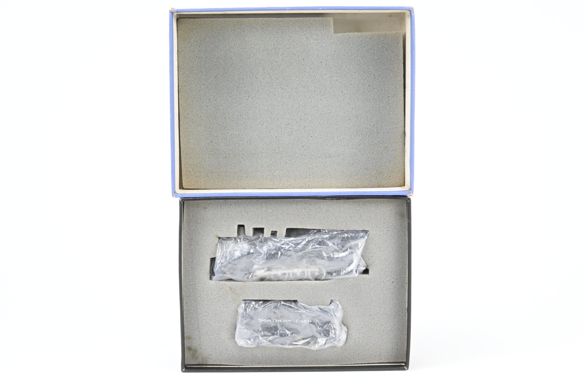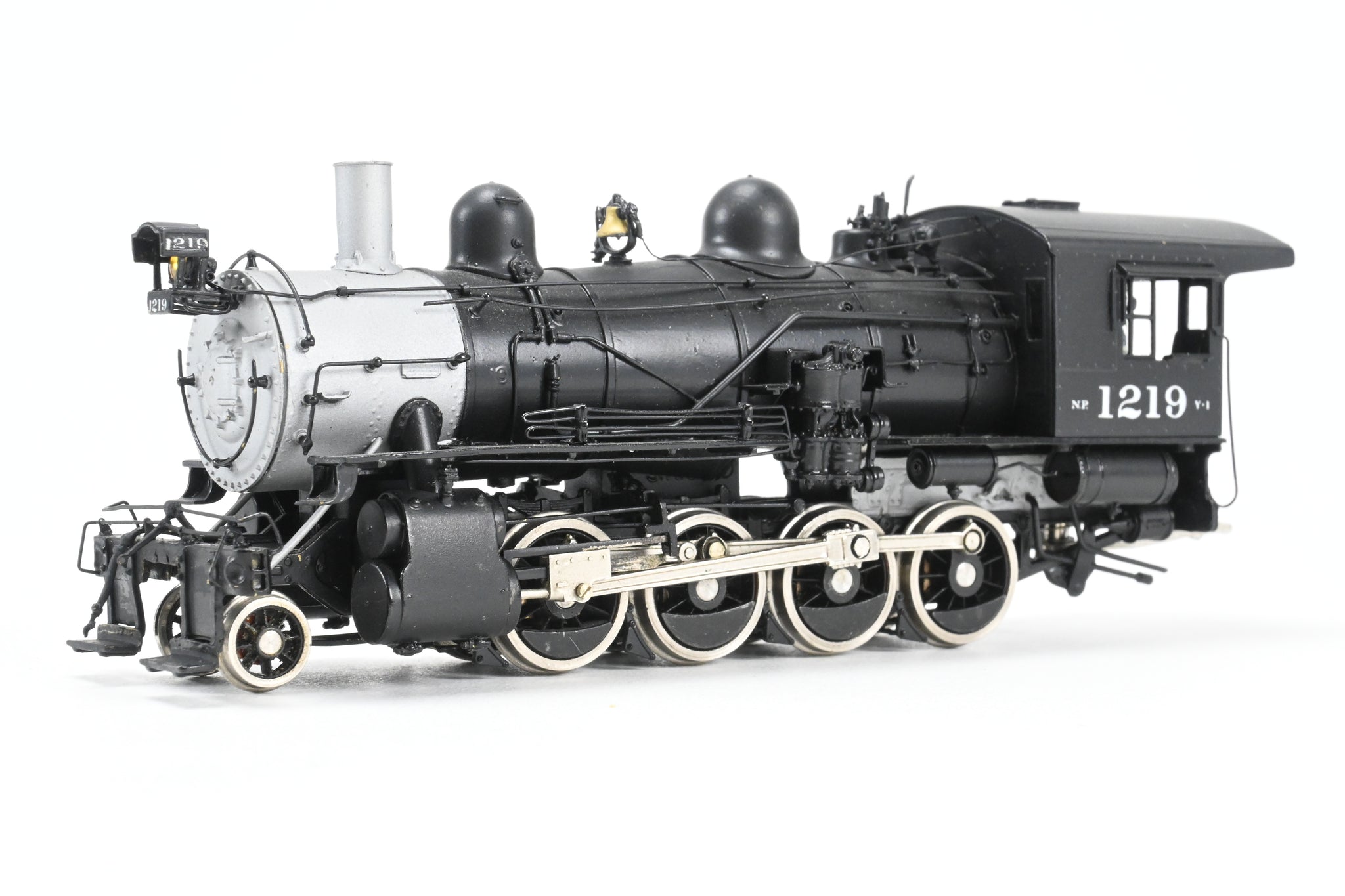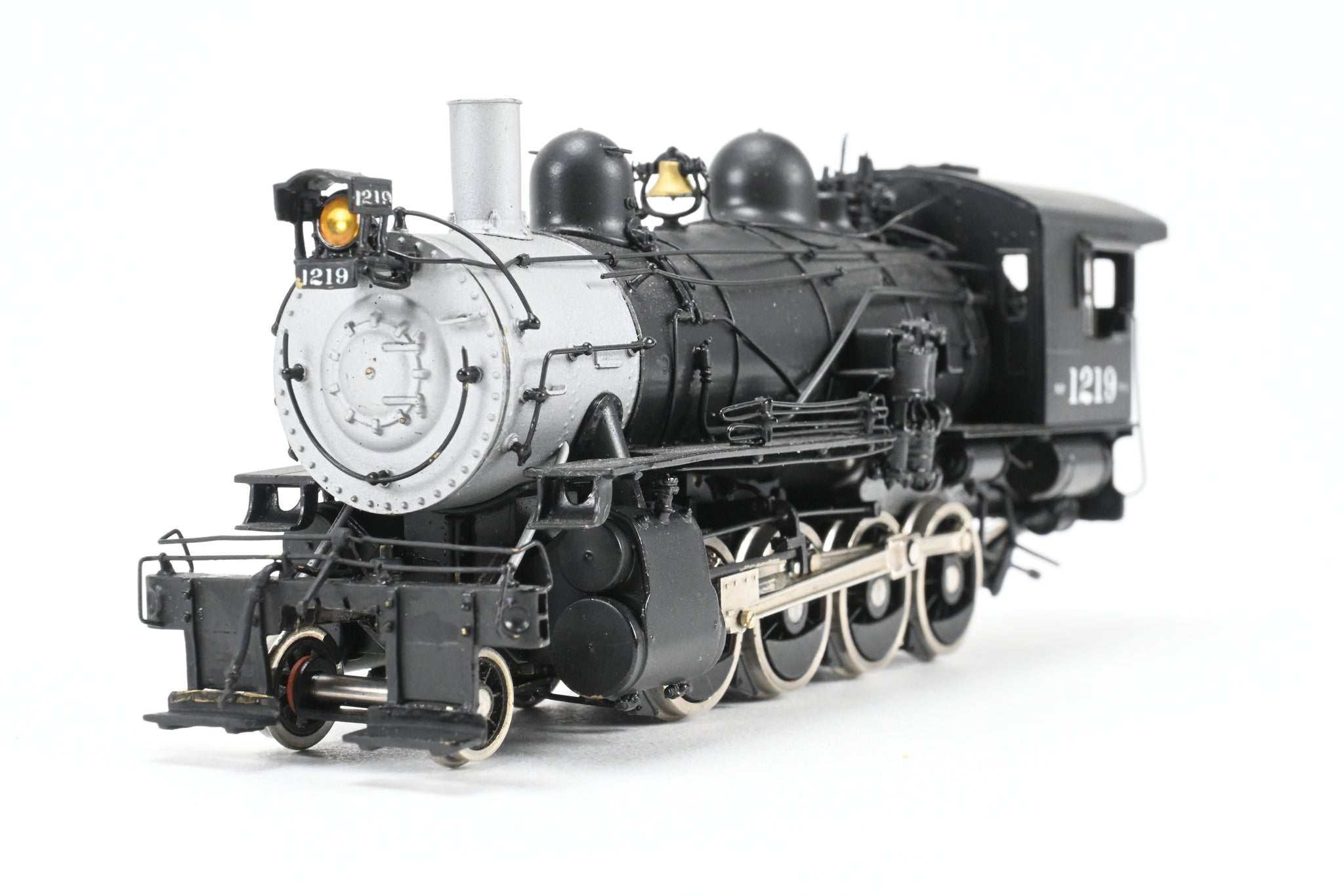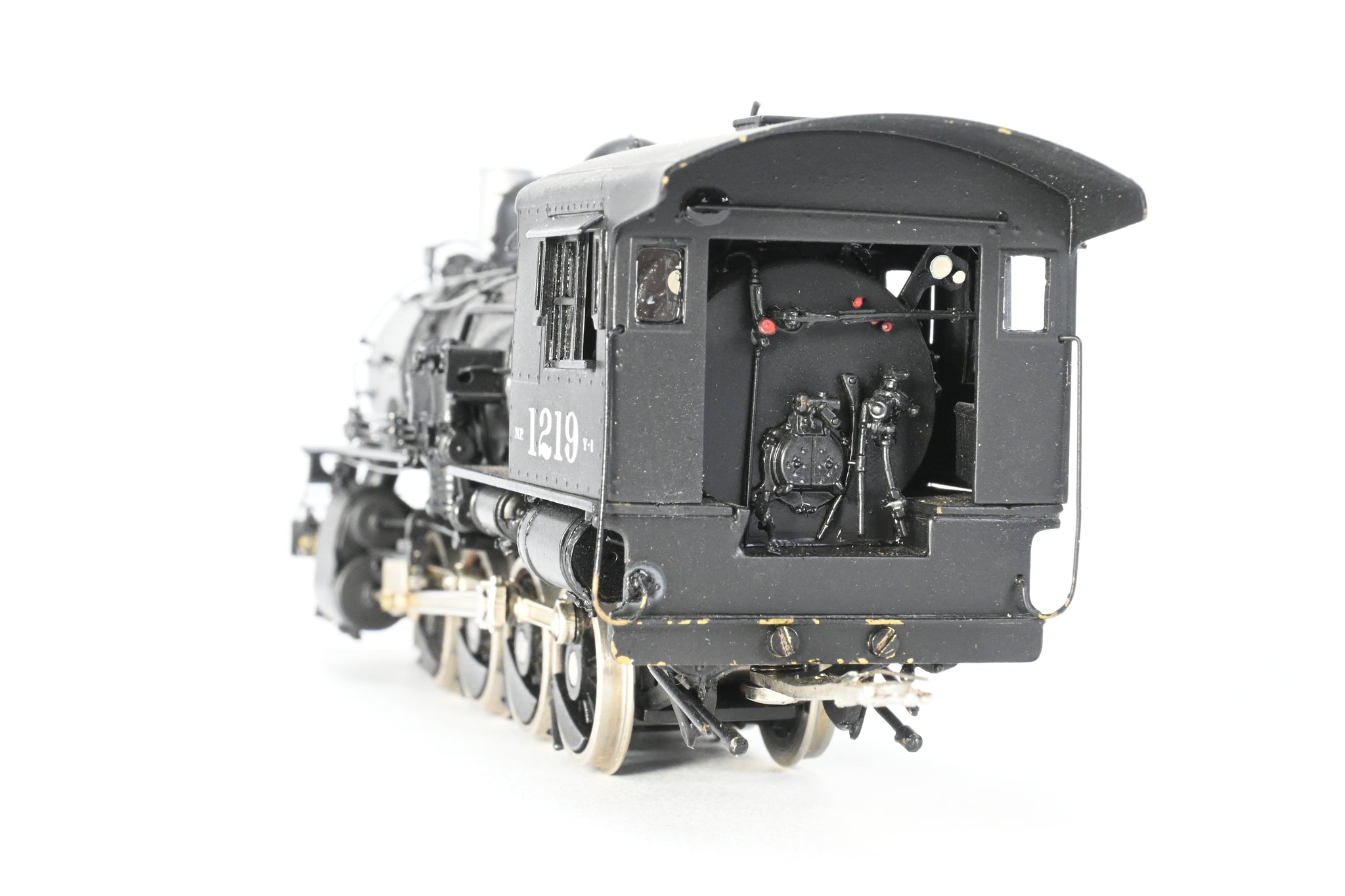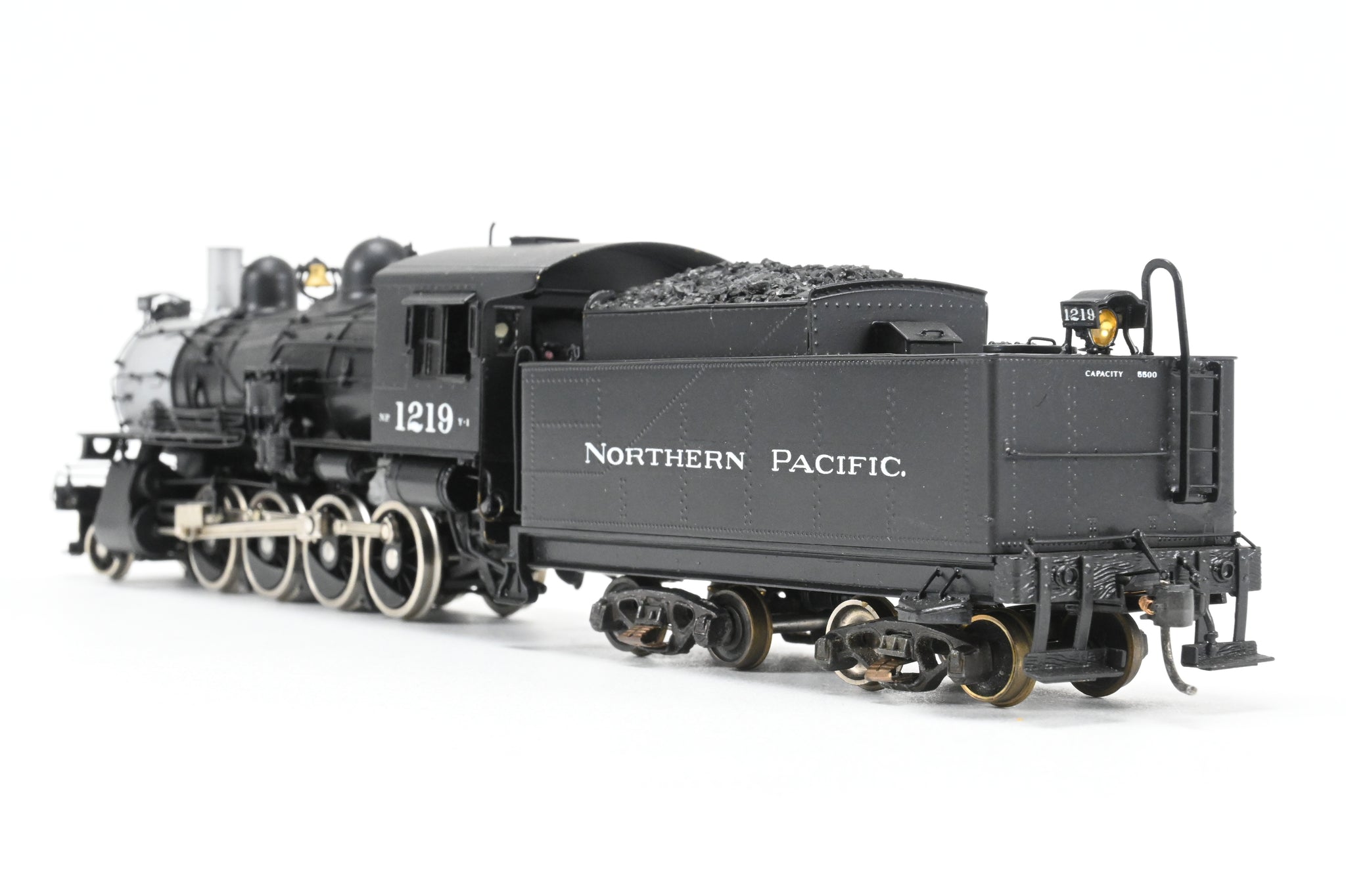 1977 run Pacific Fast Mail model built by Samhongsa in Korea. Box shows minimal wear. Model has a switcher headlight, clear vision tender, and step-board pilot. Sound ready - tender factory drilled speaker. No spare parts included. A smooth and reasonably quiet runner. Custom paint work is good with some wear - see photos. Finished with a coal load in the tender and lenses in the lights. A nice model of a NP Y-1 2-8-0. NOTE: model is rated a condition C-5 due to pilot has been ground to fit coupler box and is not original - see photos.