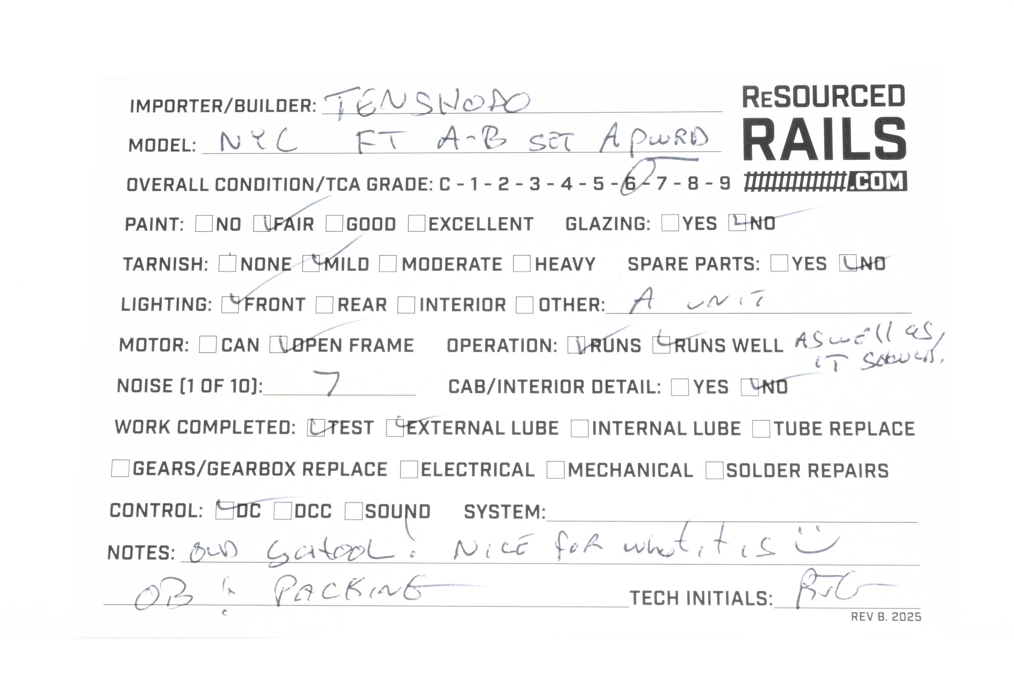 Couplers/Trucks: Kadee coupler on A unit, Drawbar between A and B units, and a Kadee couplers on rear of B unit