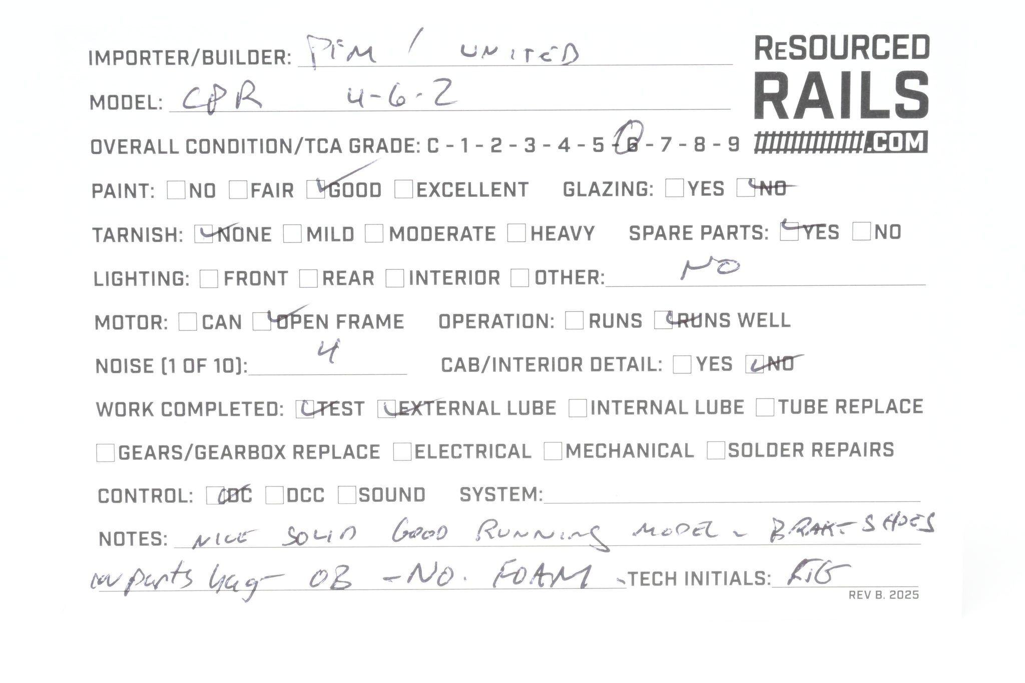 1962 Run Pacific Fast Mail imported model built by United in Japan. Box shows some wear. Spare parts included. Foam replaced with bubblewrap. Model has been tested and lubed. Custom paint work is very flat with some decal film - see photos. A nicely detailed, solid good running model. NOTE: Brake shoe details are in parts bag.
