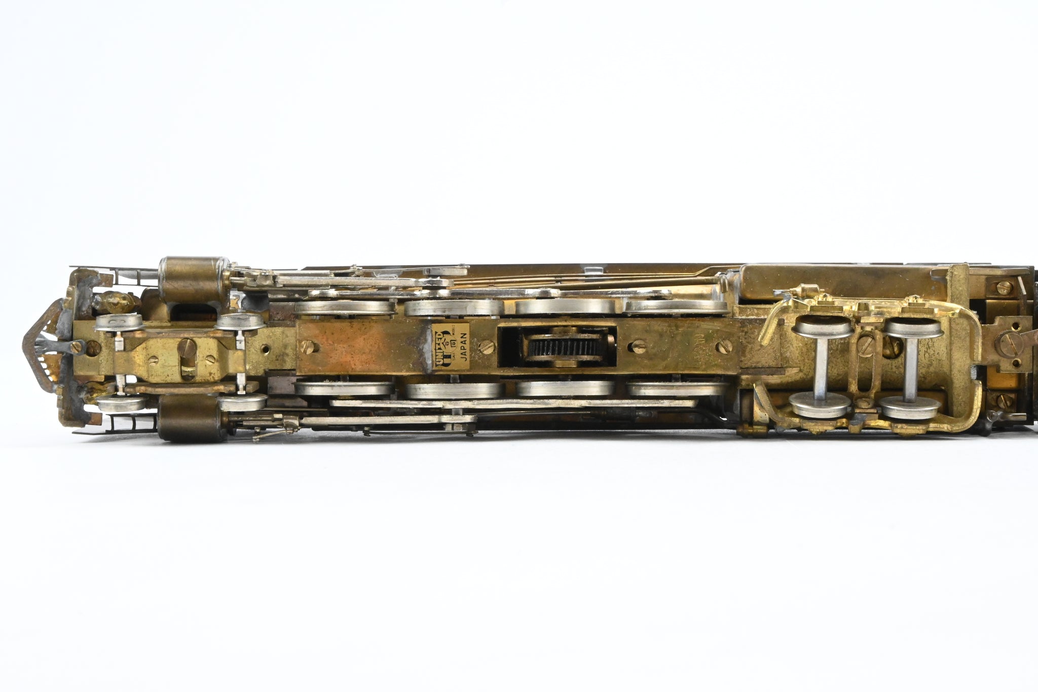 1958 run Pacific Fast Mail model built by United in Japan. Original box shows minimal shelf wear. Model has a fair paint job with wear and is numbered #6024 - see photos. This model is a reasonably smooth and quiet runner. A decent example of a vintage Japanese brass model.