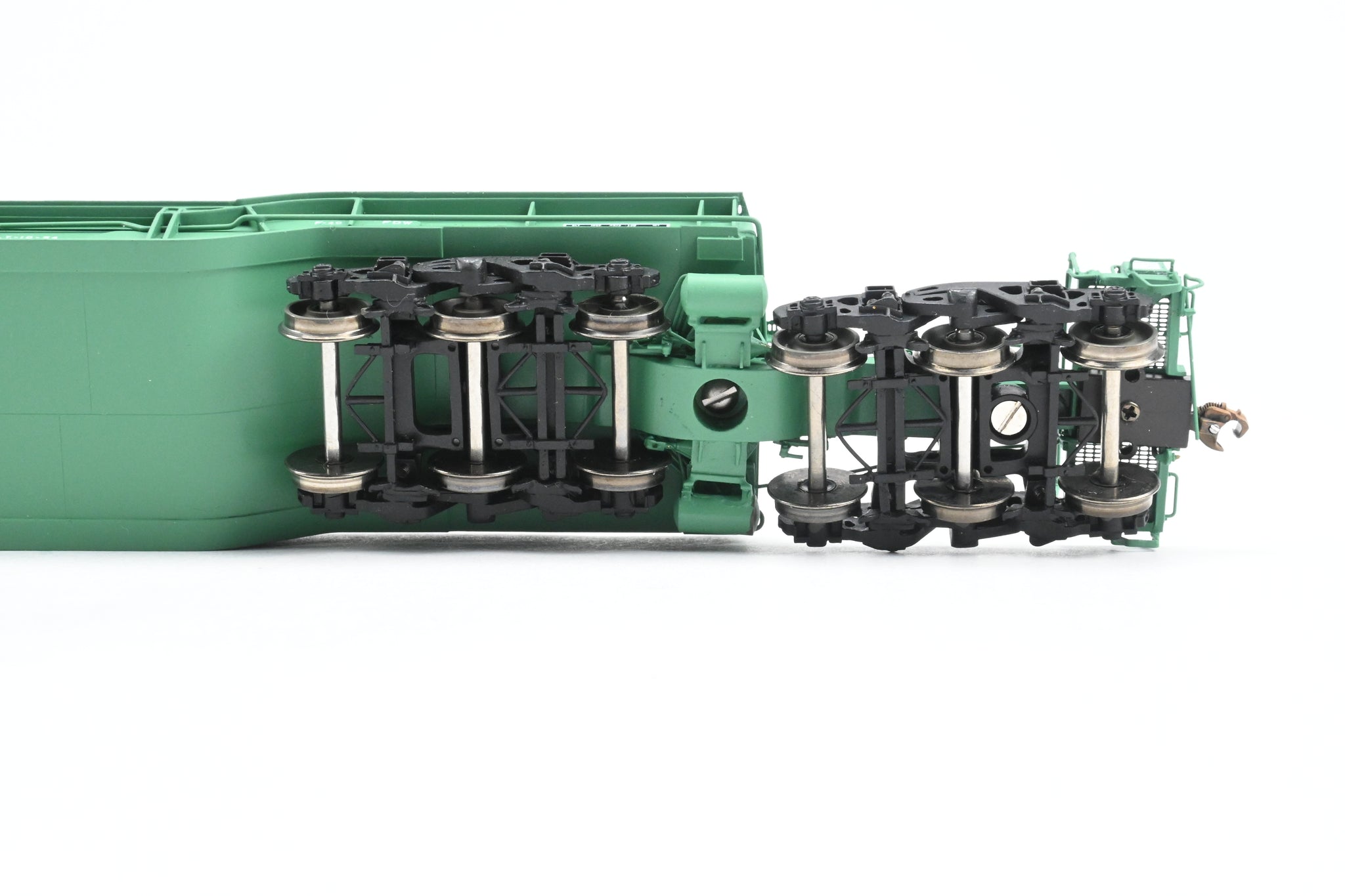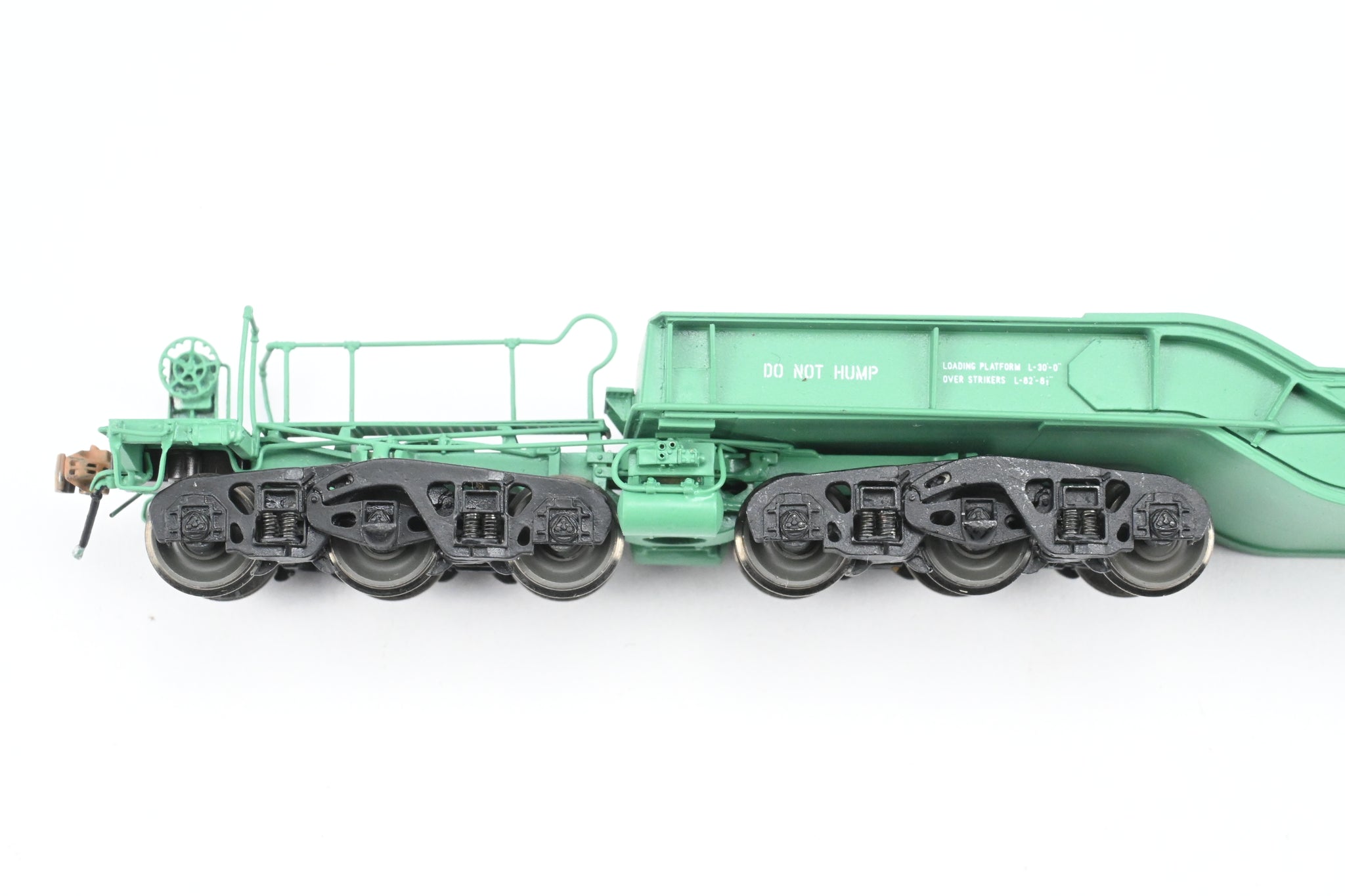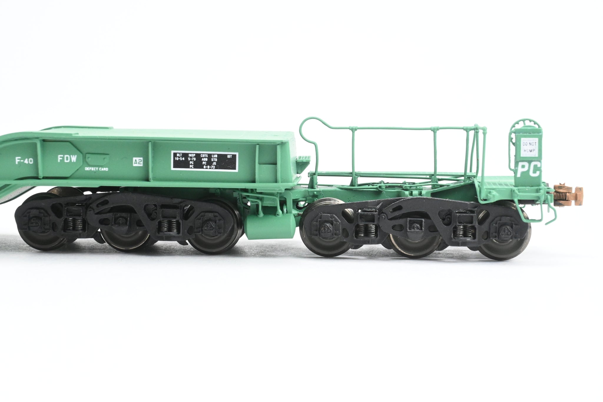 Couplers/Trucks: Knuckle-style couplers installed /Dual brass trucks w/metal wheels at each end.