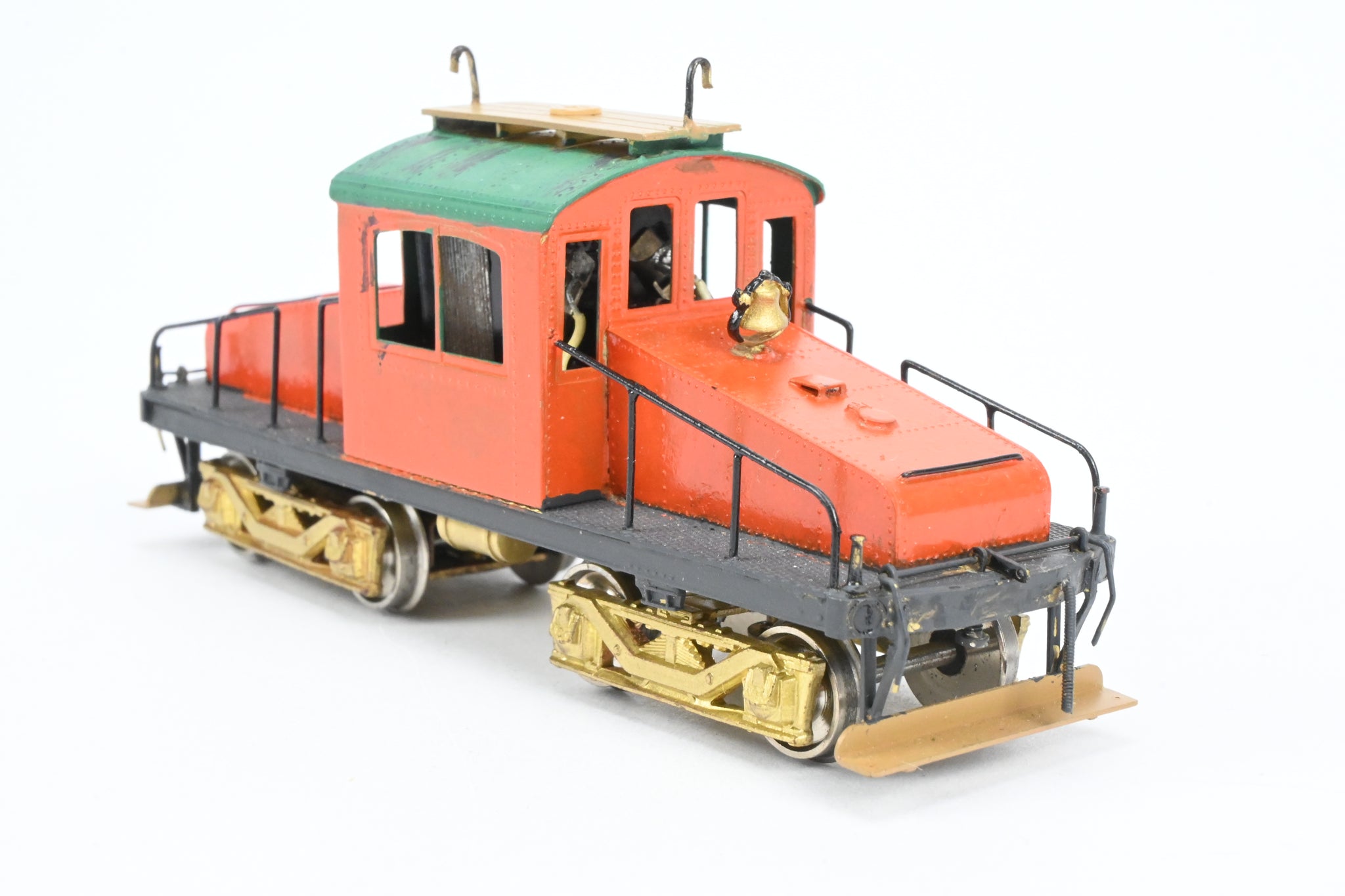 S. Soho & Co. imported model made in Japan. Original box shows very minimal wear. Includes spare parts and trolley poles, but not installed. Paint work is poor to fair - see photos. Runs like a band drive. A solid old school model. A nice freight steeple cab.