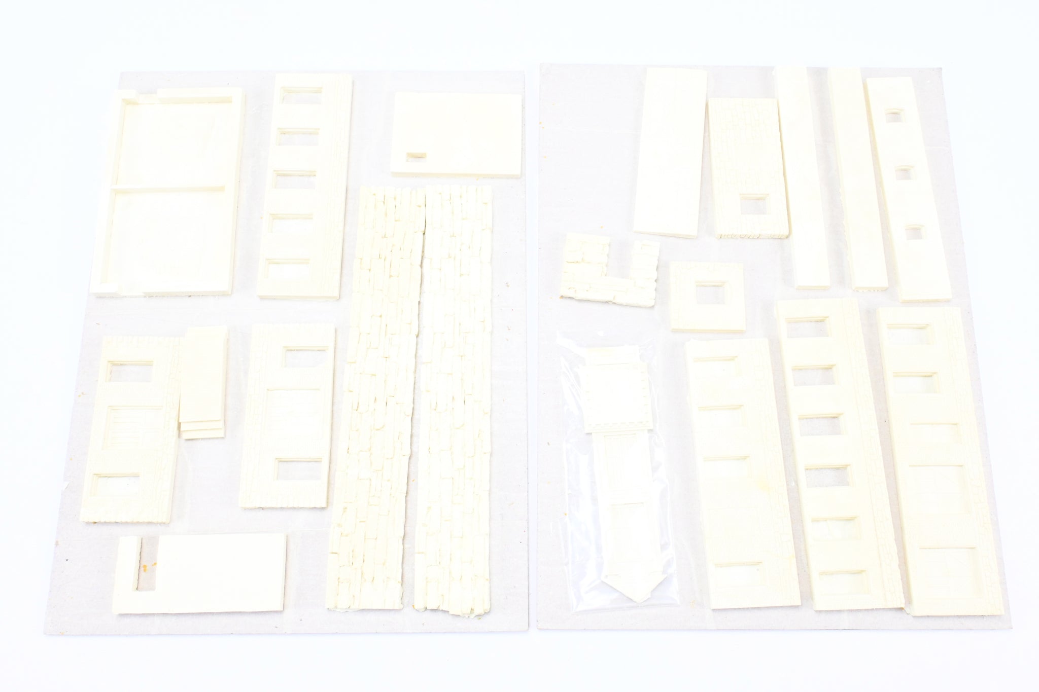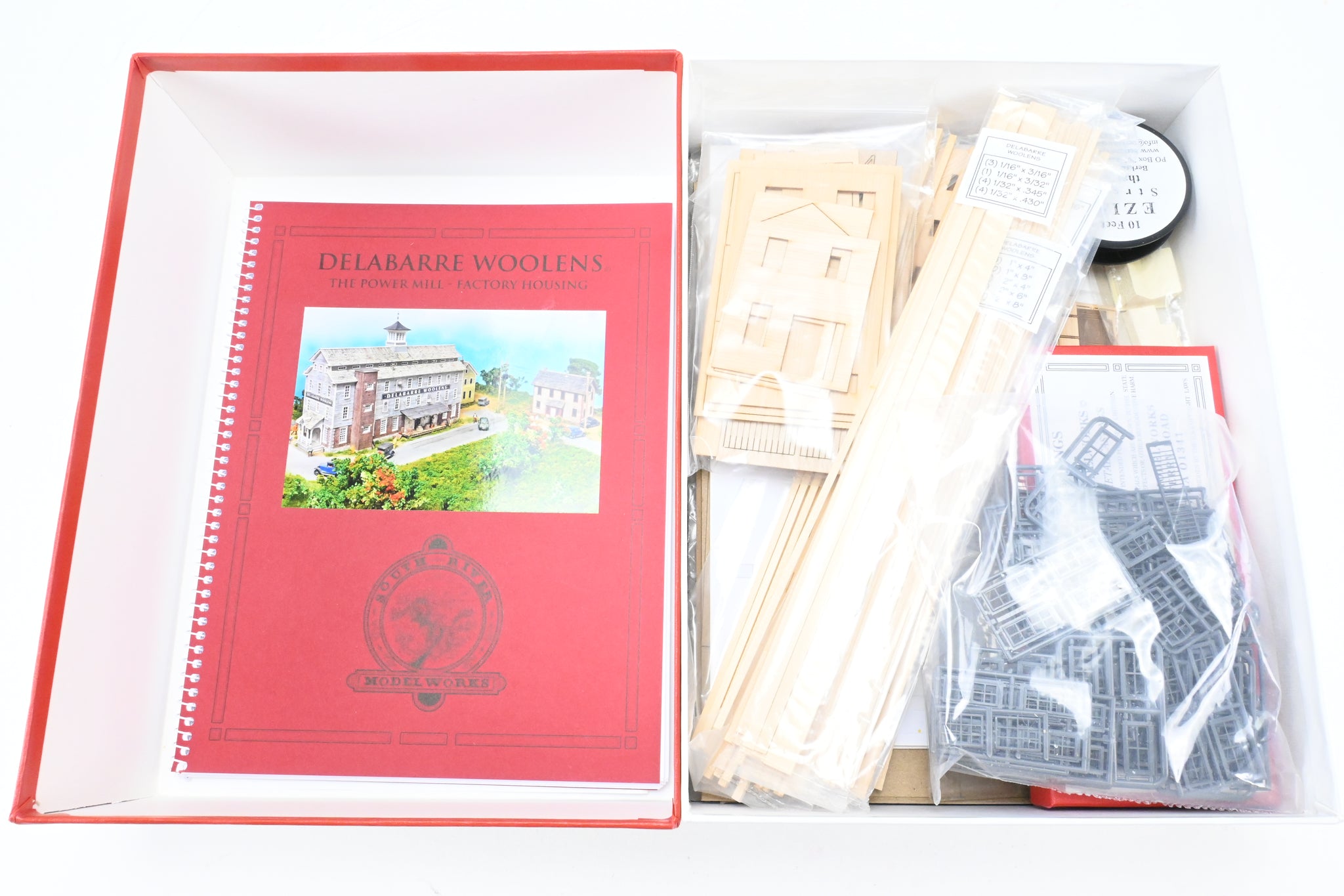 South River Modelworks kit of Delabarre Woolens. Box has minimal wear to it. This is a limited production, high end multi media kit comprising of laser cut wood strips, cast metal parts, plaster details, and printed signs for the structure. Kit comes with a very detailed spiral bound detailed instruction book. Very hard to find and long out of production!
