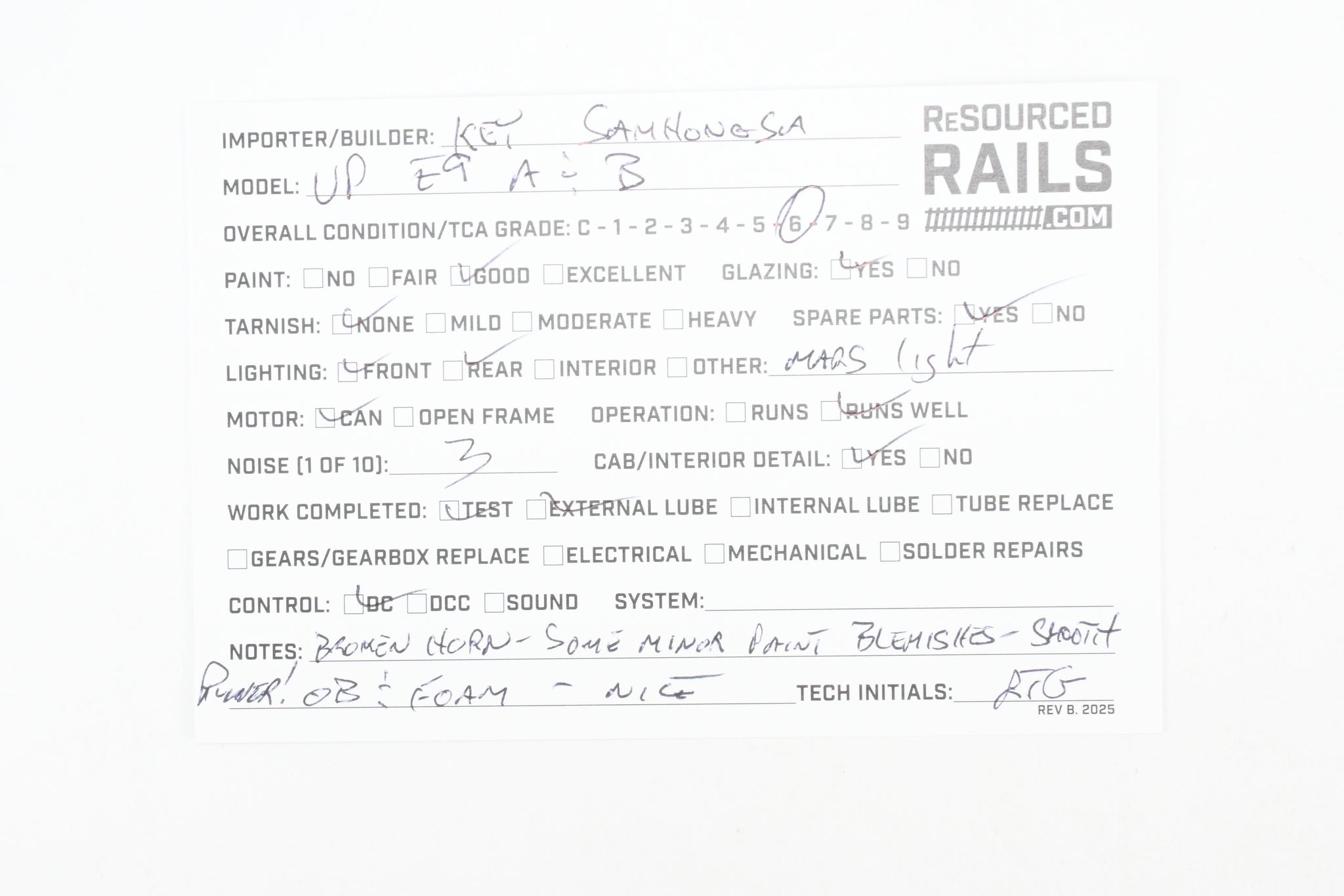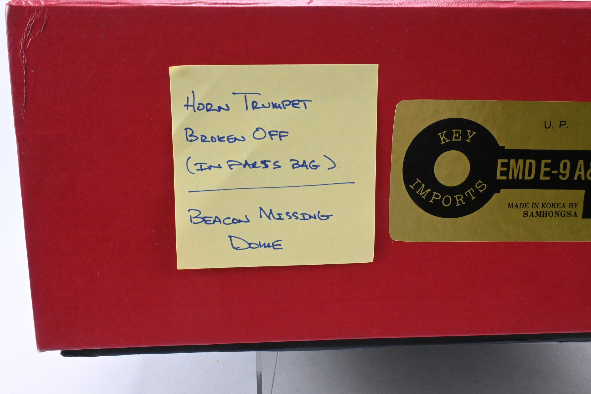 1990 run Key Imports models built by Samhongsa in Korea. Box shows minimal shelf wear. Original foam and spare parts included. Opening cab doors (A Unit). Beautifully finished with factory installed glazing and diaphragms. Smooth and quiet running models, they show some signs of use. These would be great addition to any O Scale Union Pacific collection. Note: One trumpet broken off the horn (in the parts bag) and the beacon is missing the orange dome - See Photos.