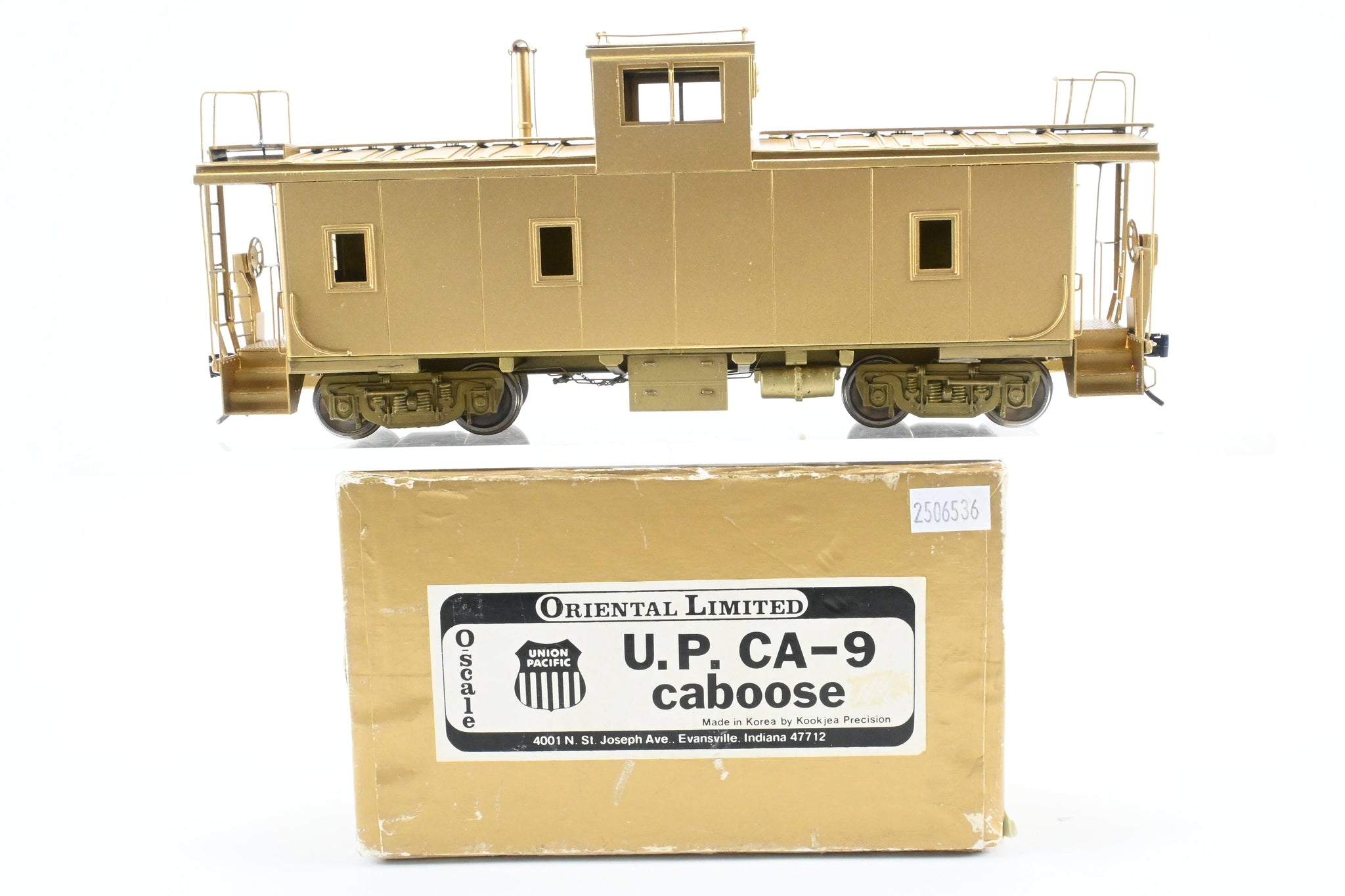 Oriental Limited Model built by Kookjea Precision in Korea. Box shows some wear with scuffing on all edges and corners. No spare parts included. Model has mild tarnish and some solder repairs - see photos. An excellent model of a UP CA-9 Caboose.