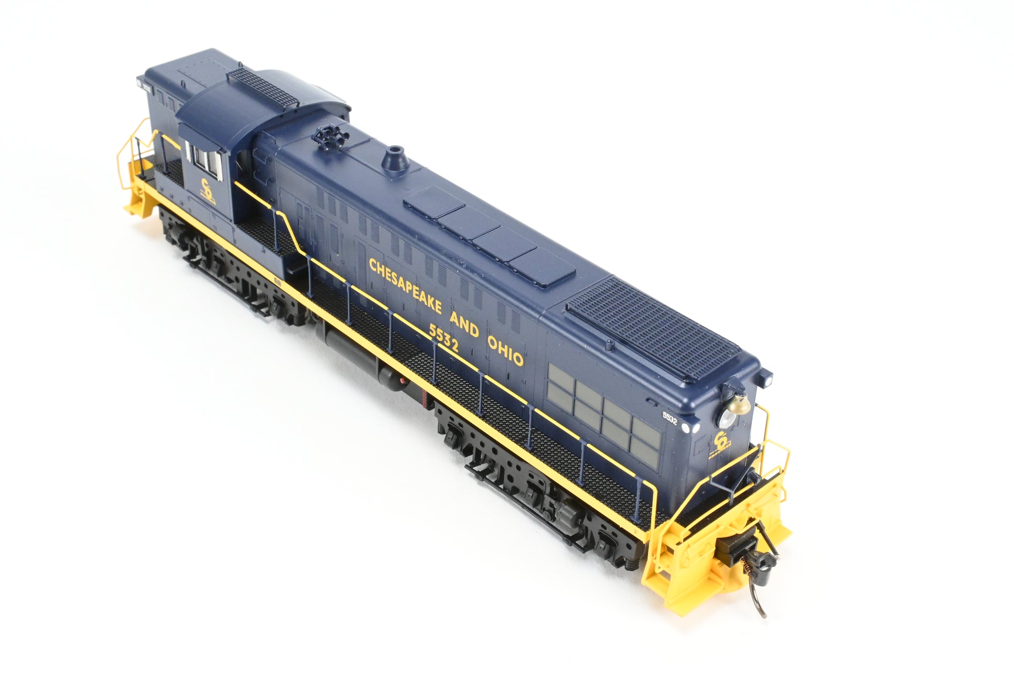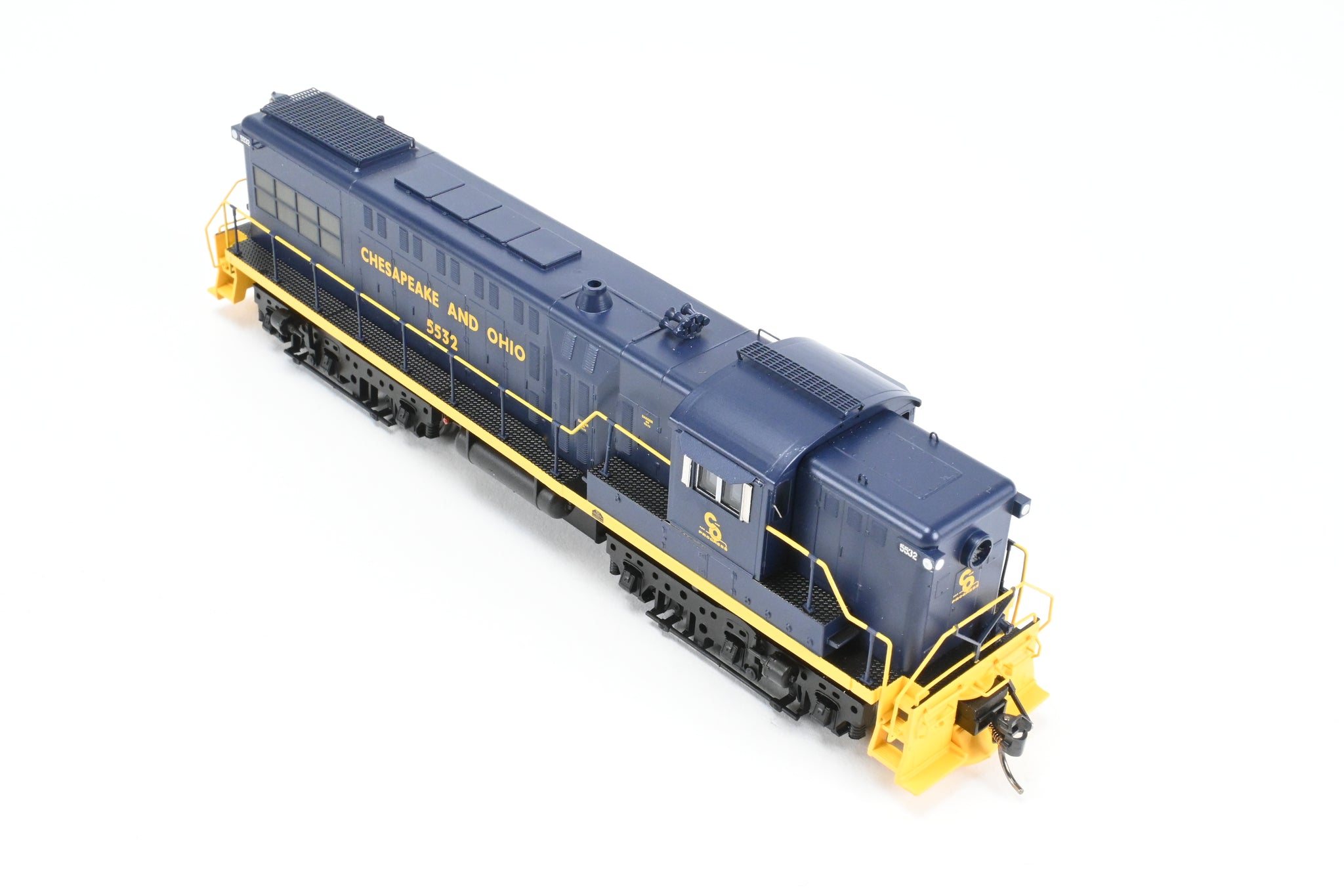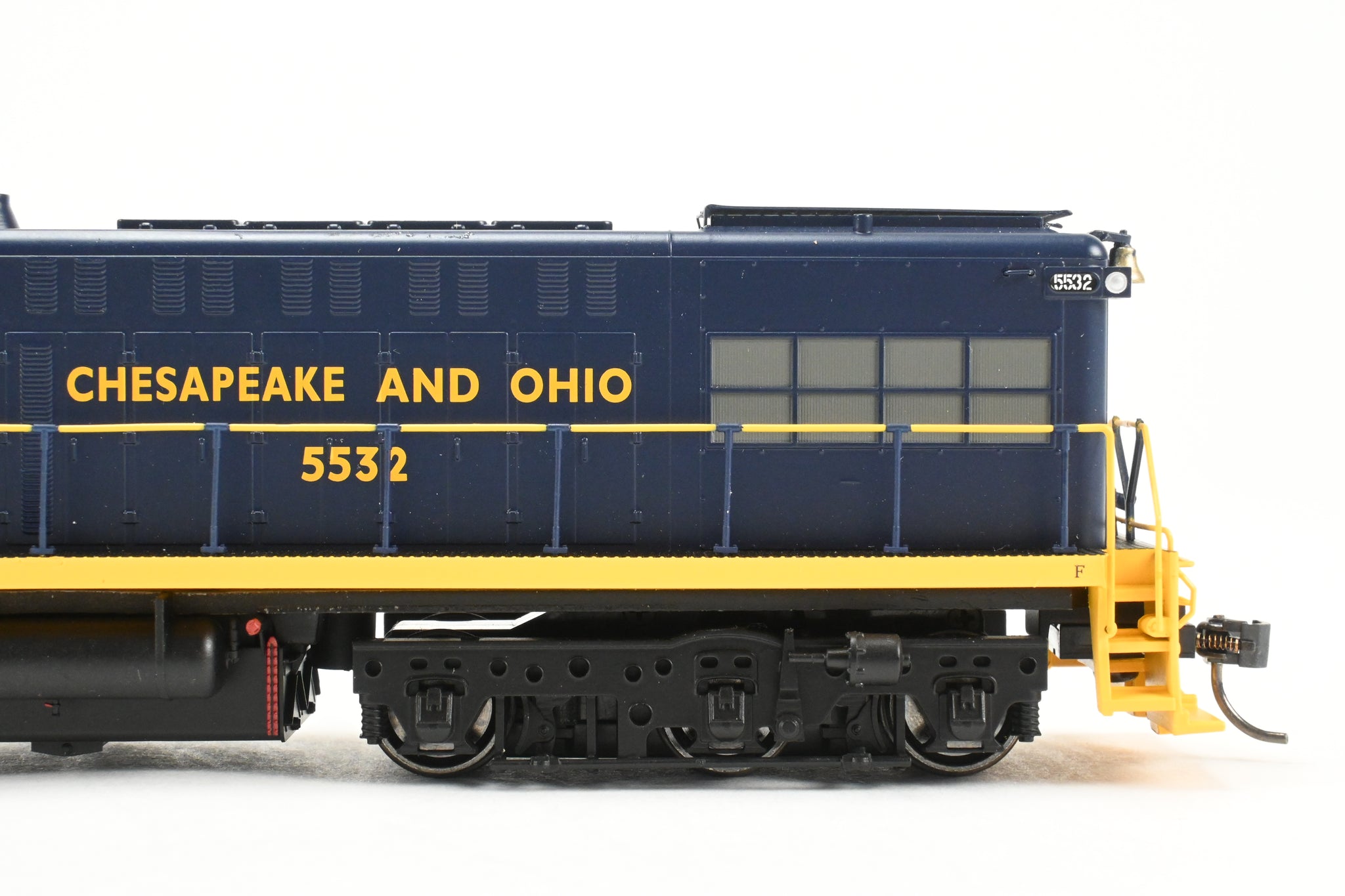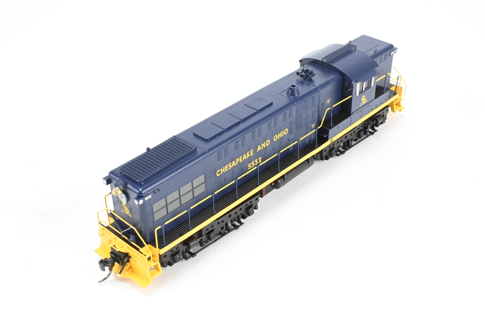 Bowser imported model made in China. Original box shows minimal shelf wear. No spare parts. NOTE: This is a DCC Ready model that runs on conventional DC power. Fully detailed, with an excellent factory paint job in Chesapeake and Ohio No 5532. Minimal signs of use.
