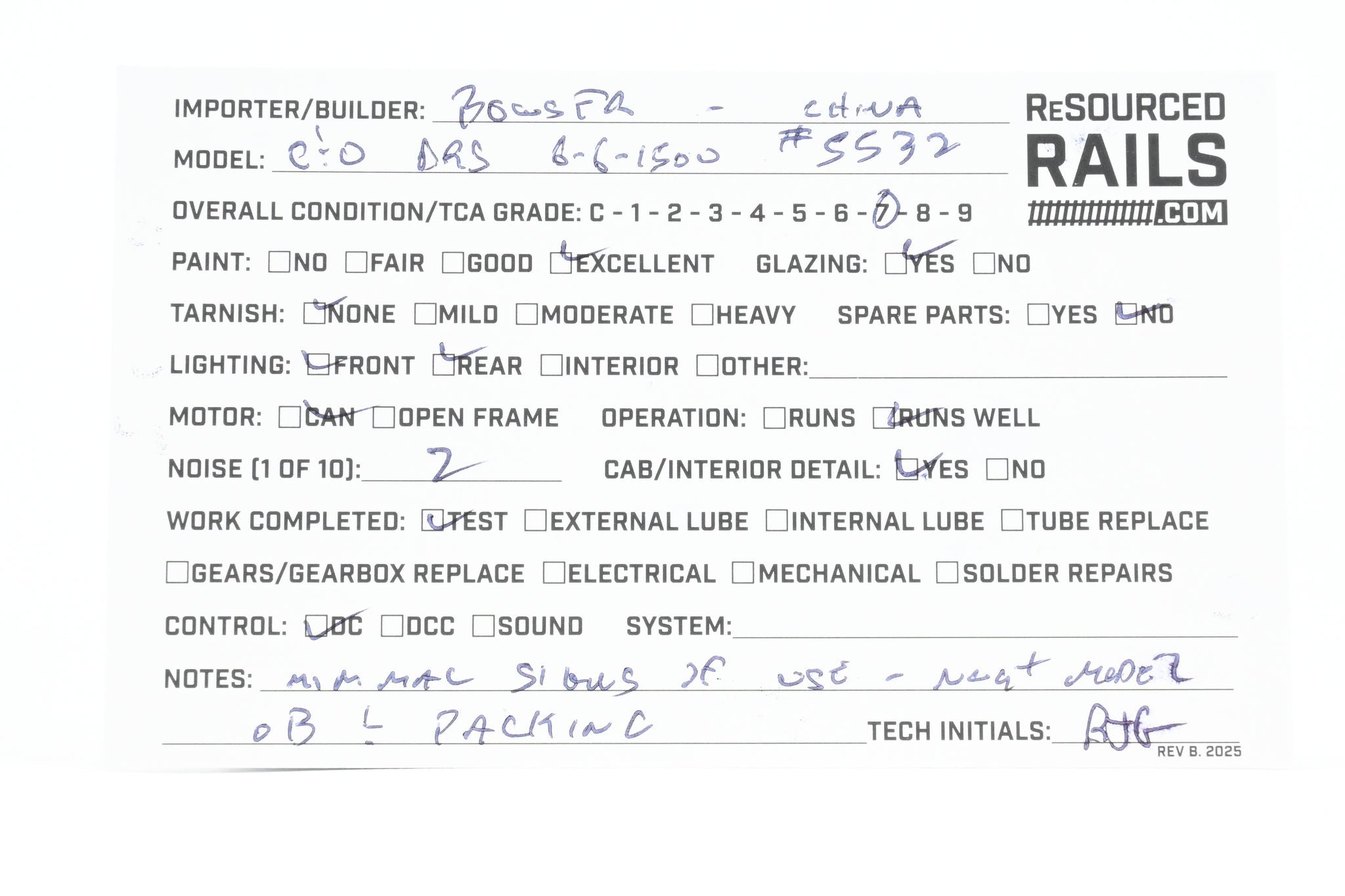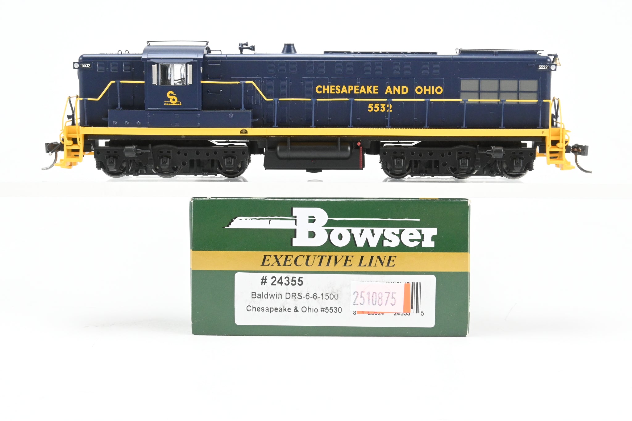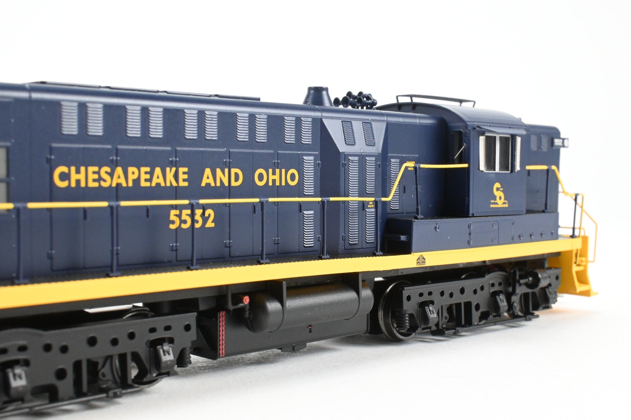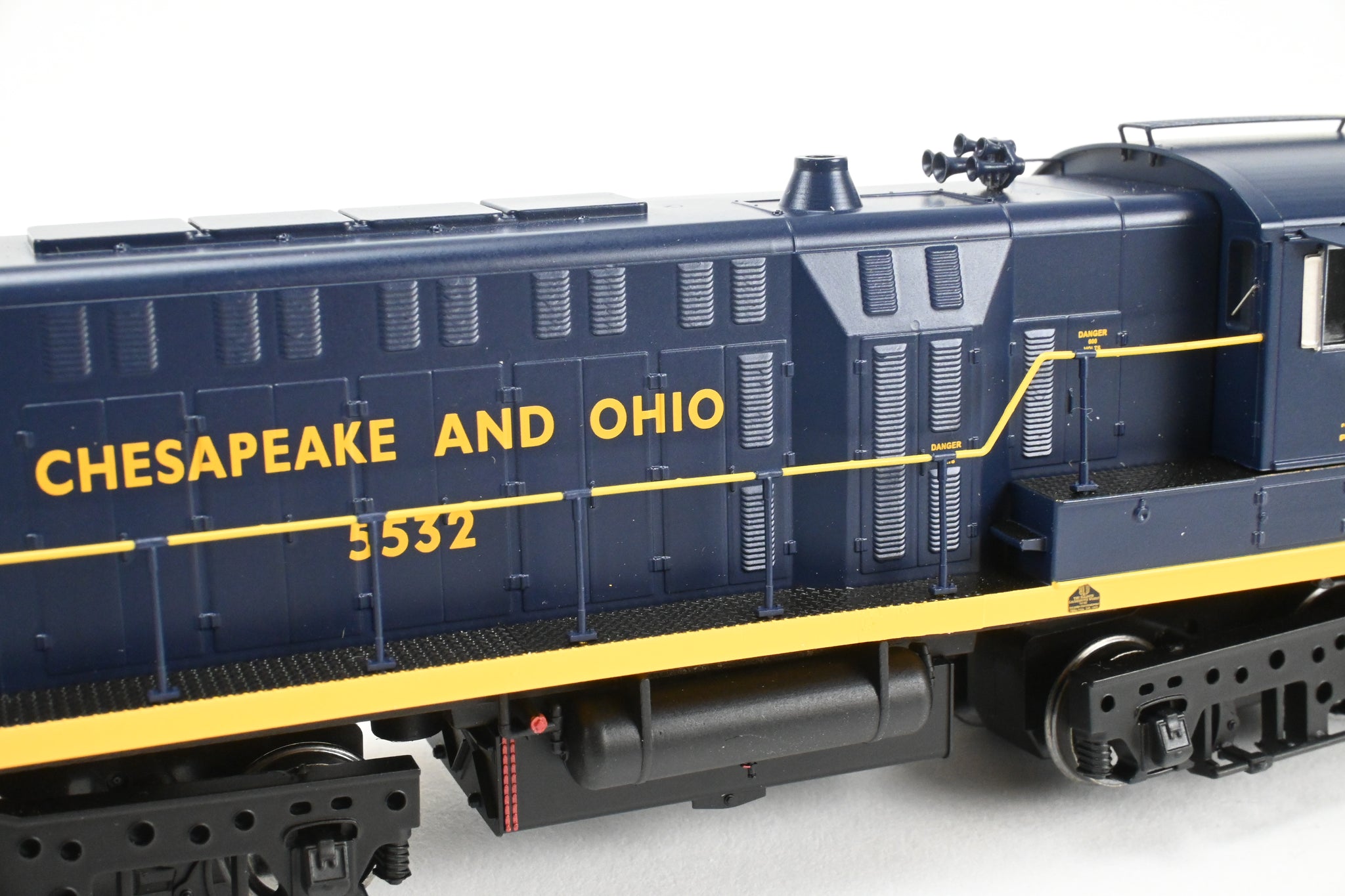 Bowser imported model made in China. Original box shows minimal shelf wear. No spare parts. NOTE: This is a DCC Ready model that runs on conventional DC power. Fully detailed, with an excellent factory paint job in Chesapeake and Ohio No 5532. Minimal signs of use.