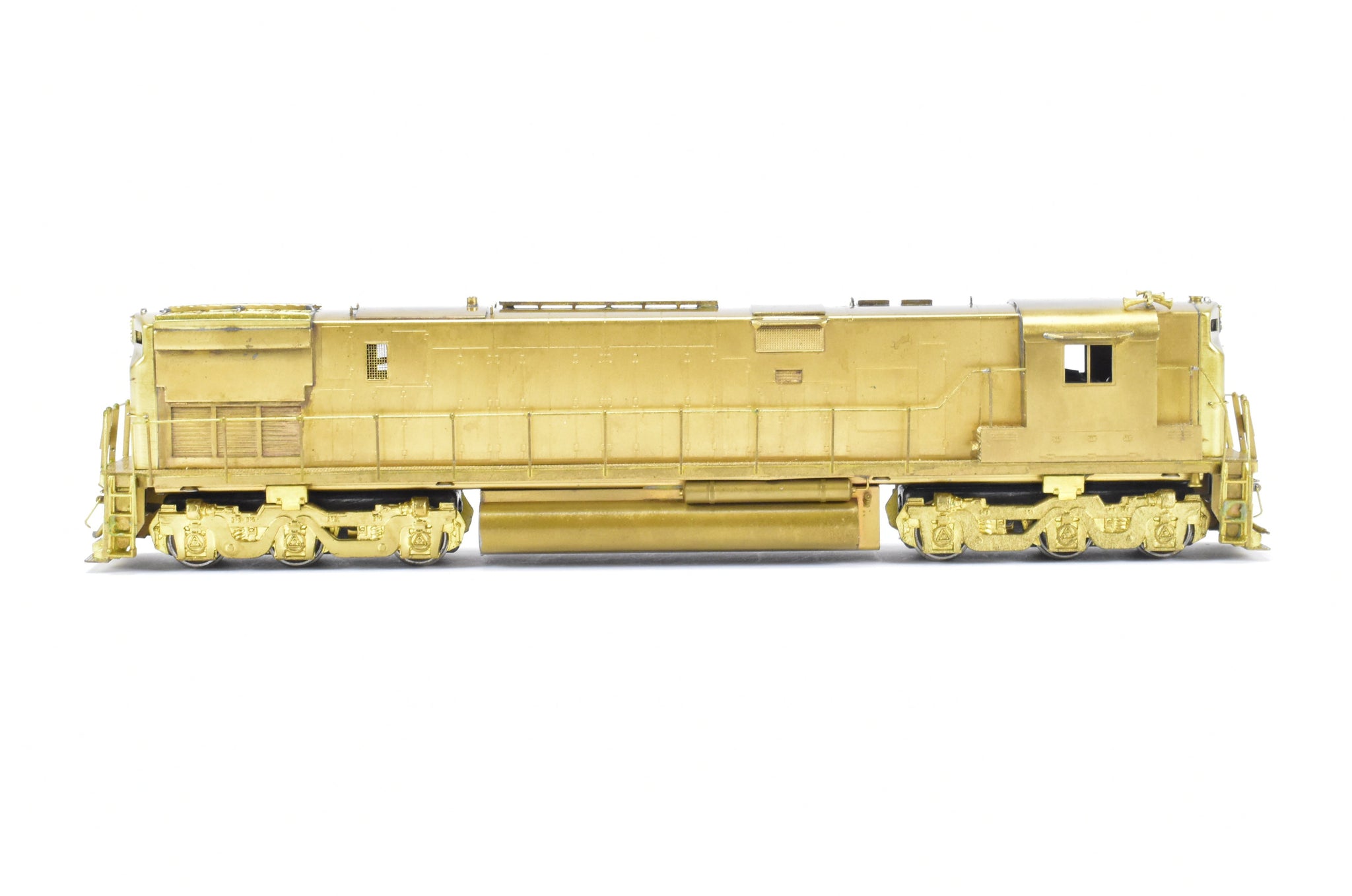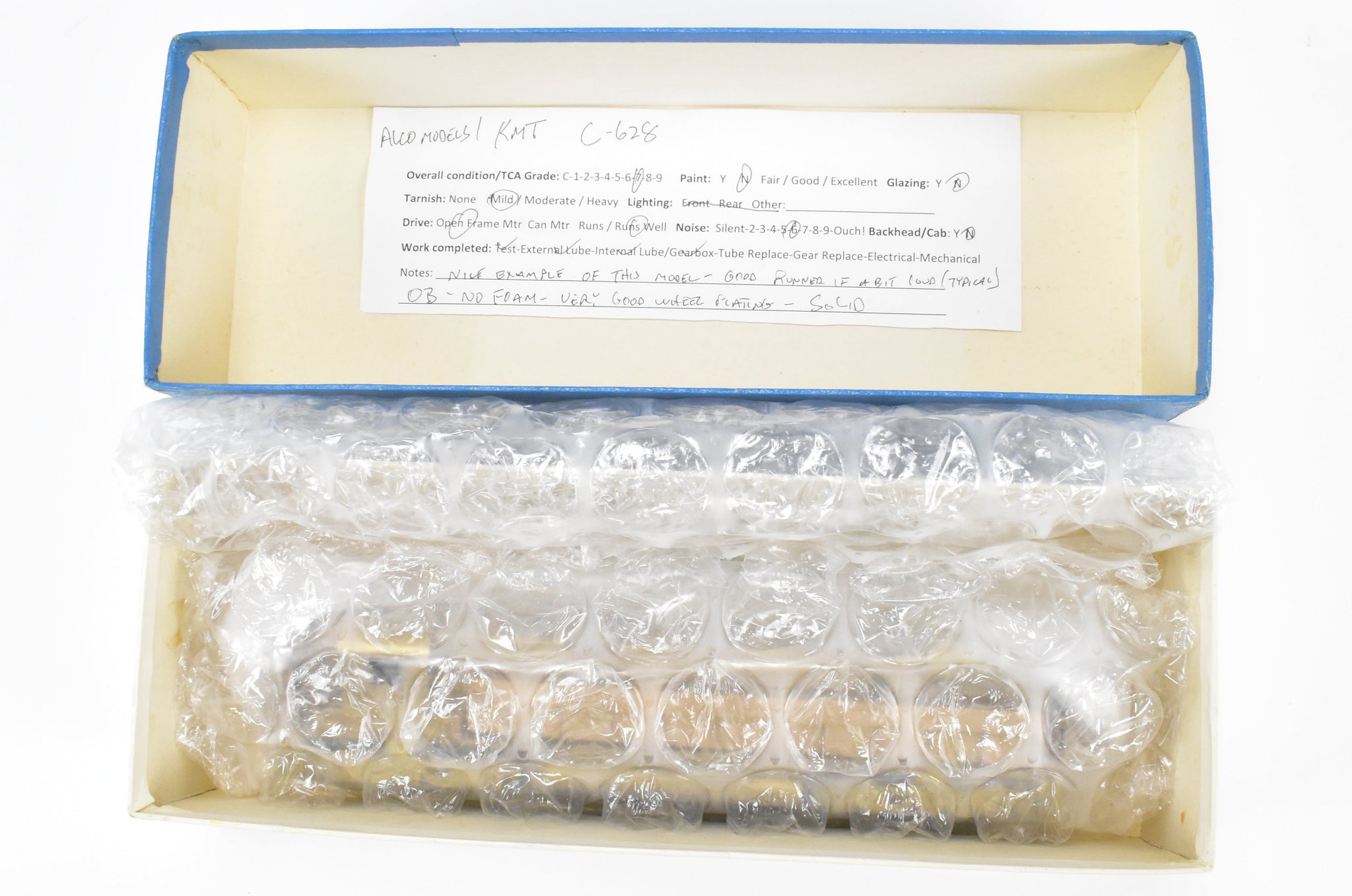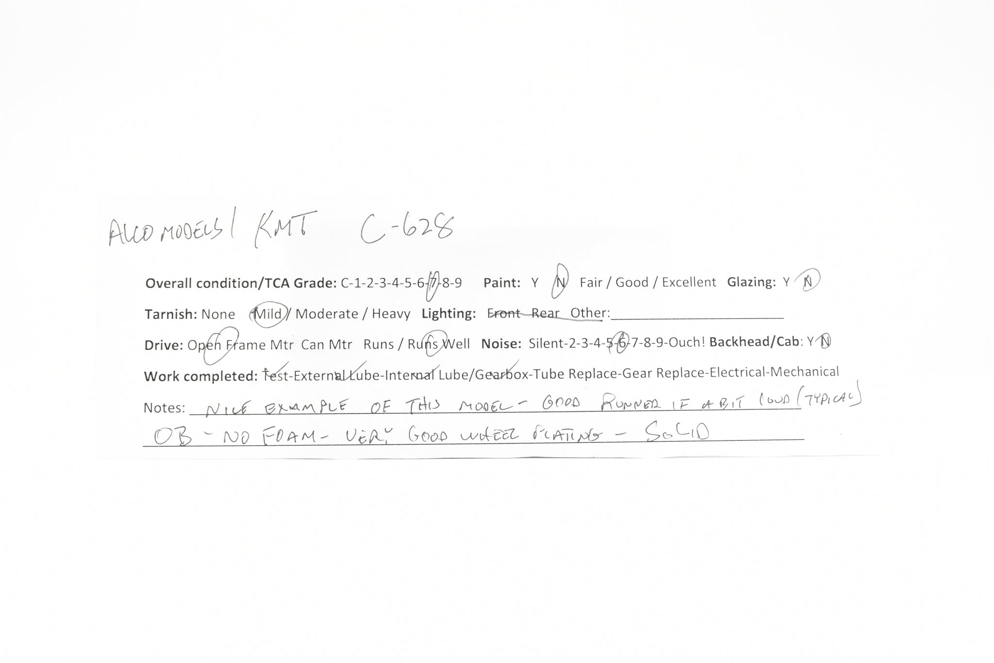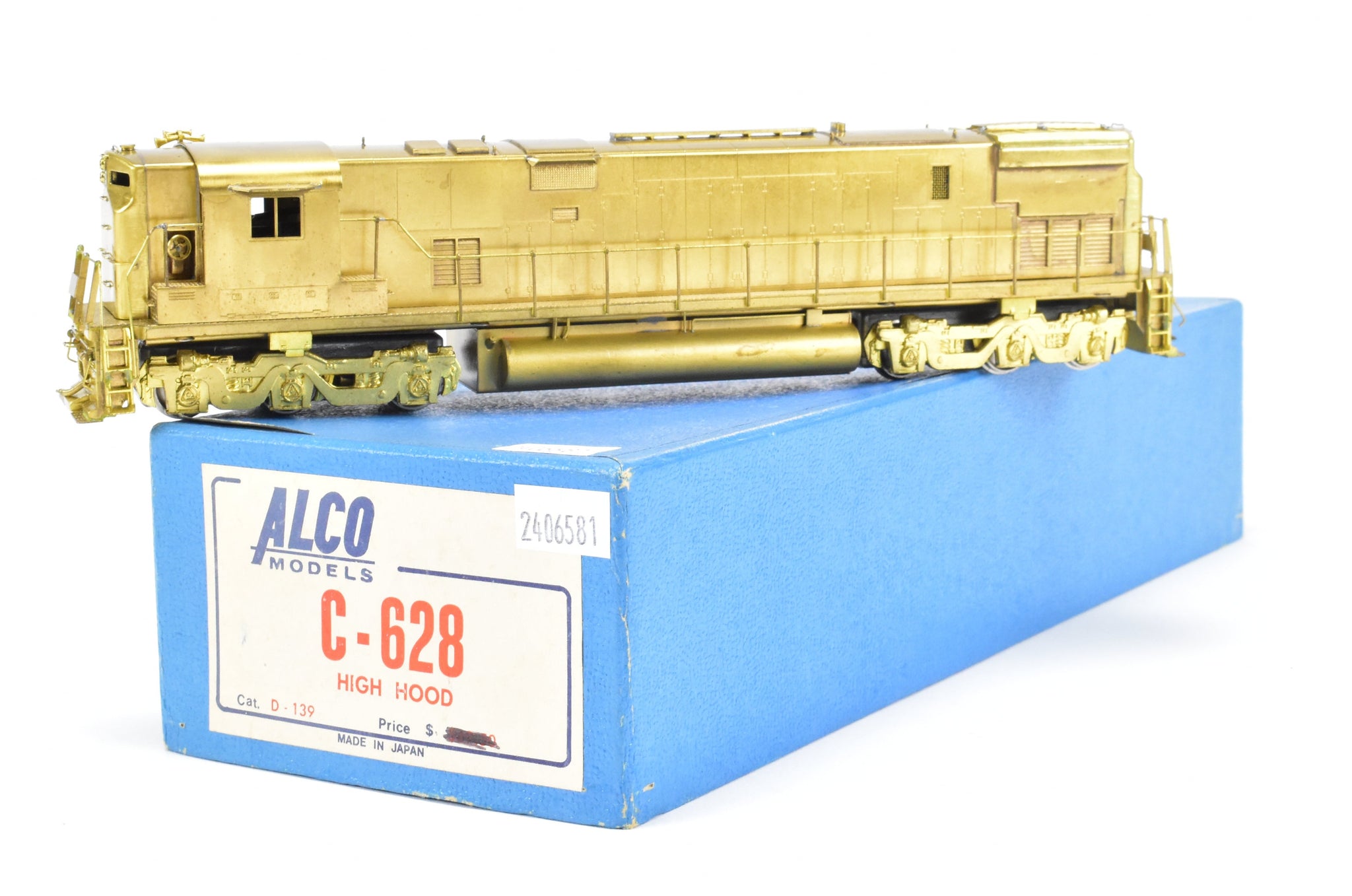 1968 run ALCO Models imported model built by Kumata in Japan. Box shows minimal shelf wear. Original foam replaced by bubblewrap. A good runner if a bit loud (typical for early Alco models). These high hood 628's were bought by N&W who used them as heavy switchers at Lamberts Point switching coal hoppers. Later the C&NW bought them second hand to be used in ore service in the 1970's. A nice example of a High Hood C628.