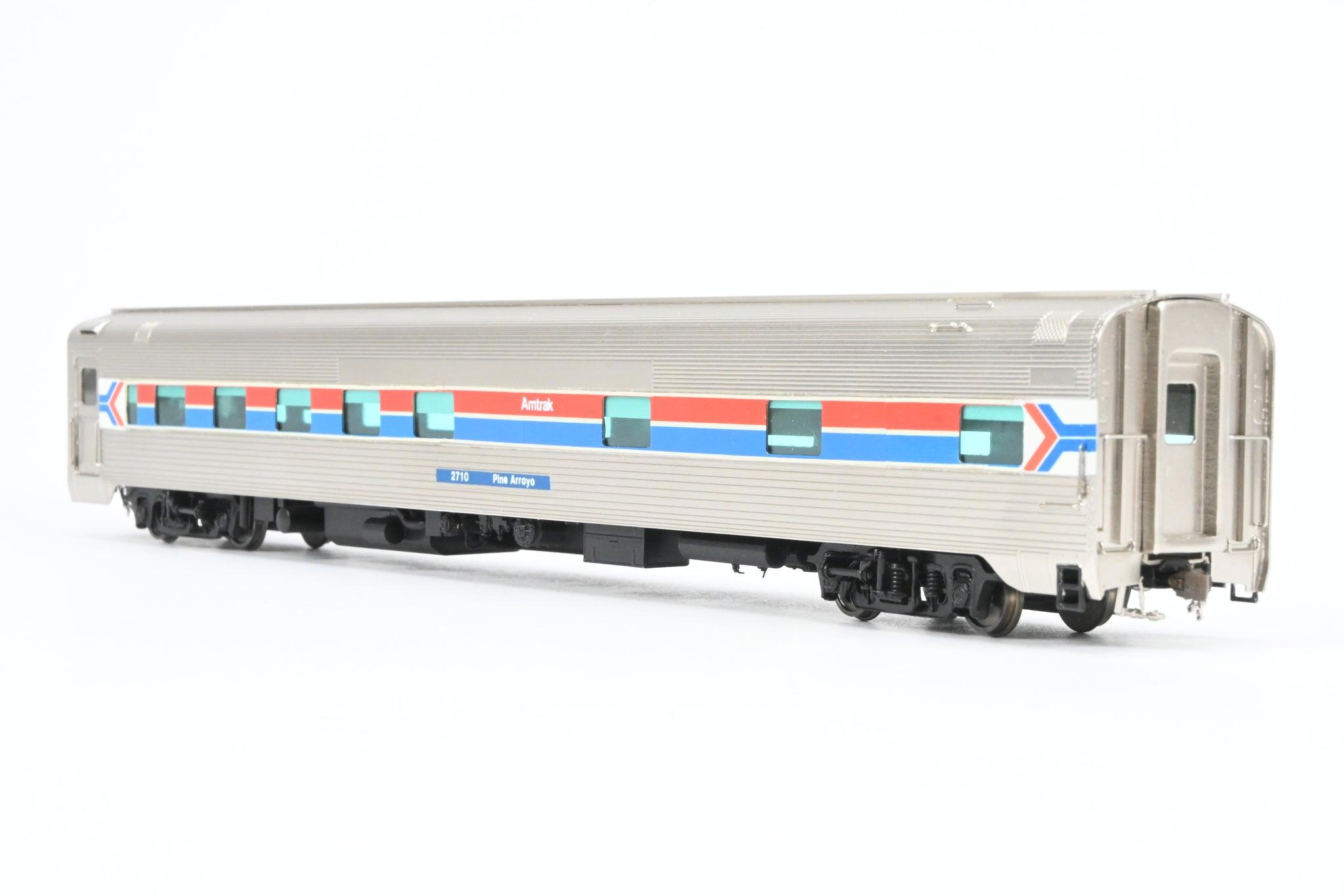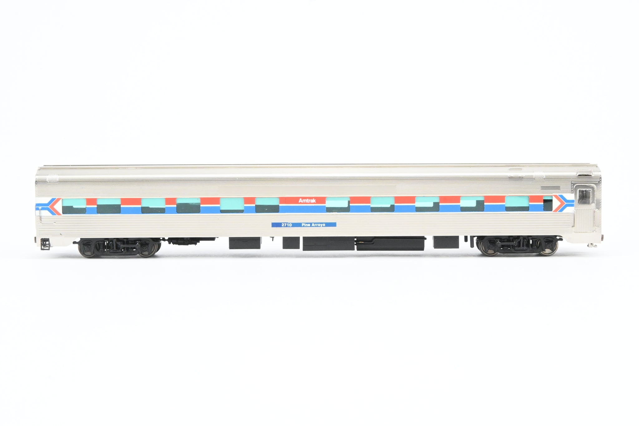 Decorated: Nice plating with minimal wear and custom painted underframe. Amtrak Decals with no film showing, lettered "Pine Arroyo" numbered 2710. Glazing installed.