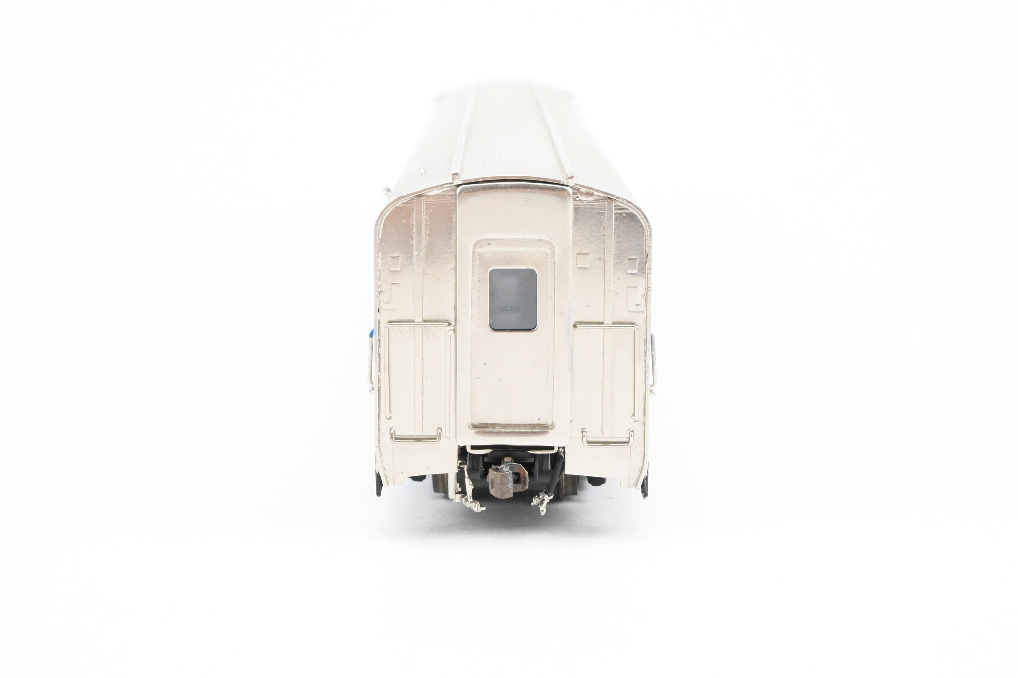 Cascade Models model built by Kumata in Japan. Box shows virtually no shelf wear. No spare parts. Model is pro-painted and lettered for Amtrak "Pine Arroyo". Plating is in excellent condition. Underframe is custom painted black. Glazing installed along with window shades. Model has been upgraded with Walthers Trucks.