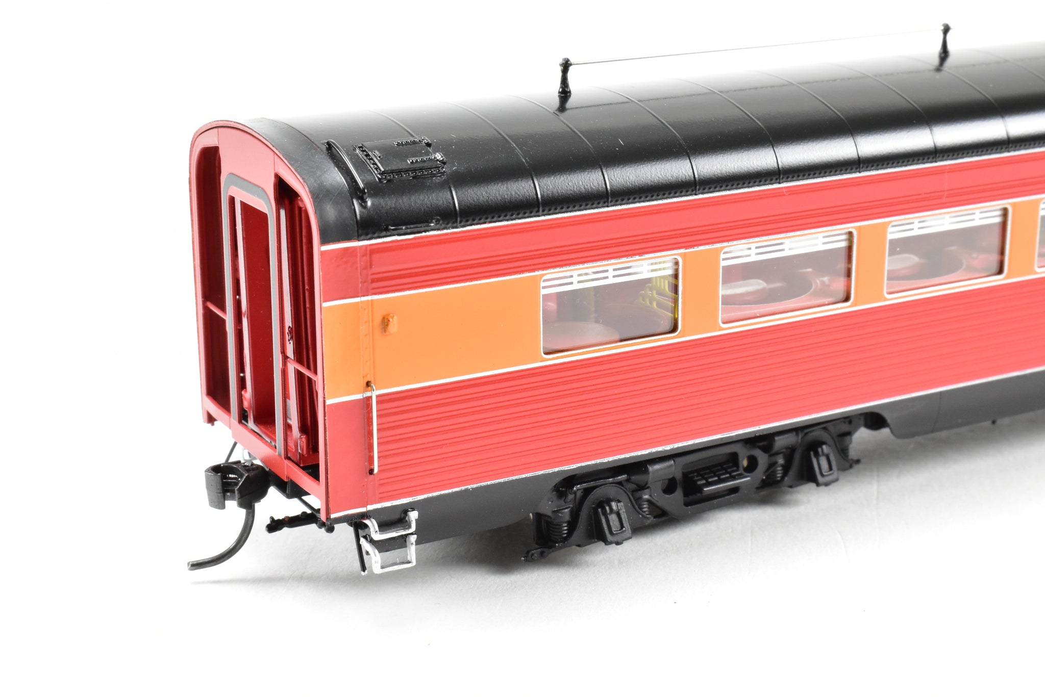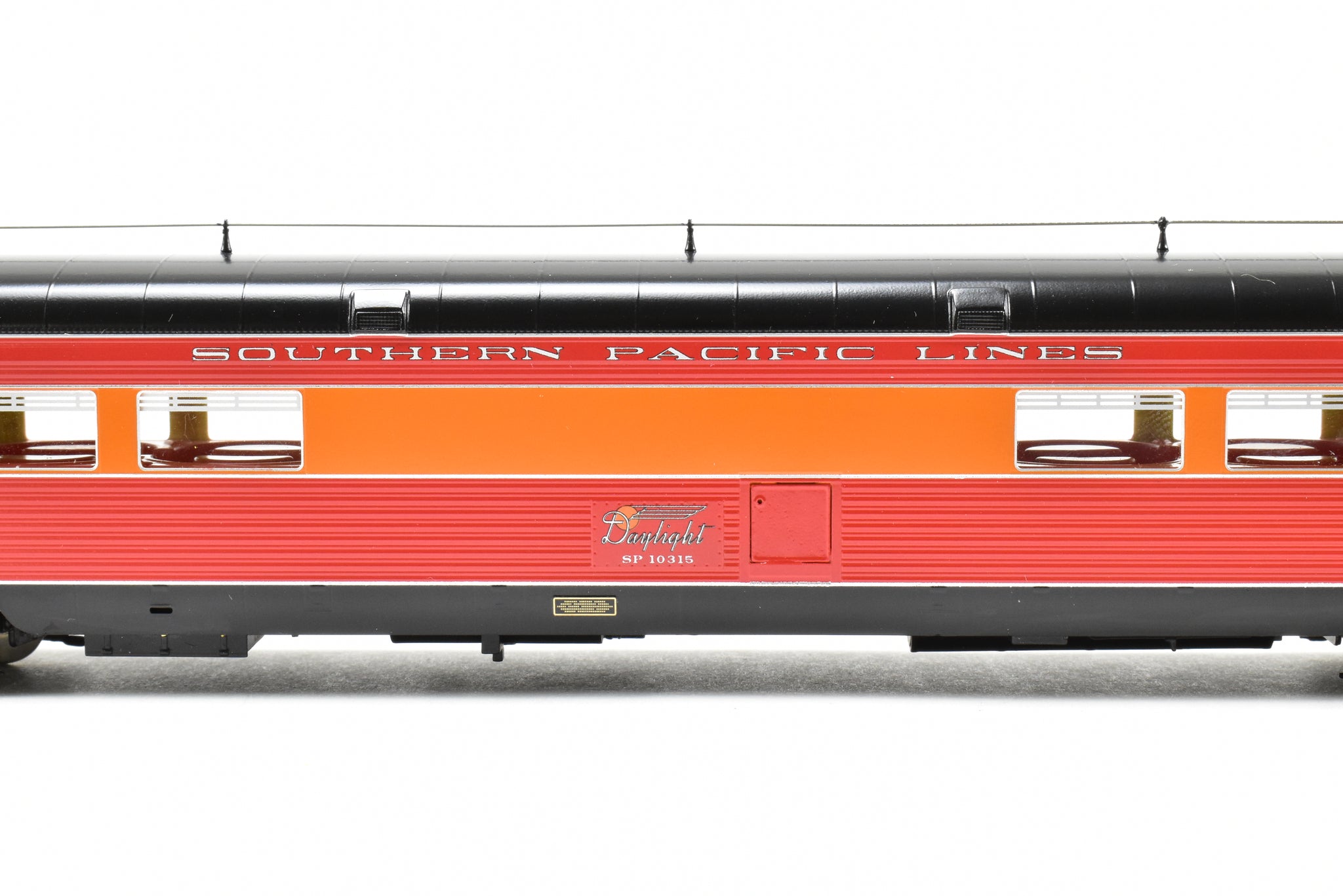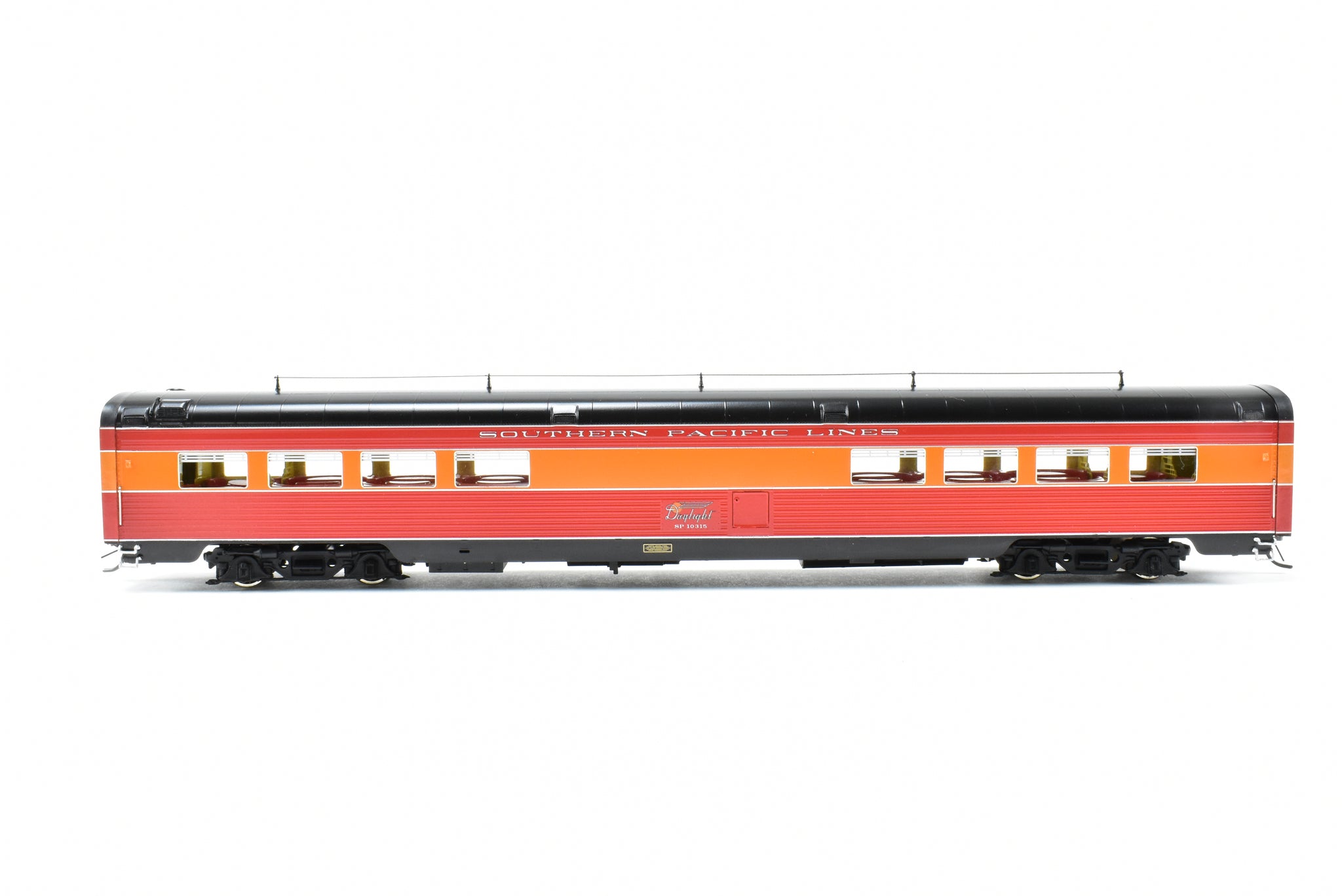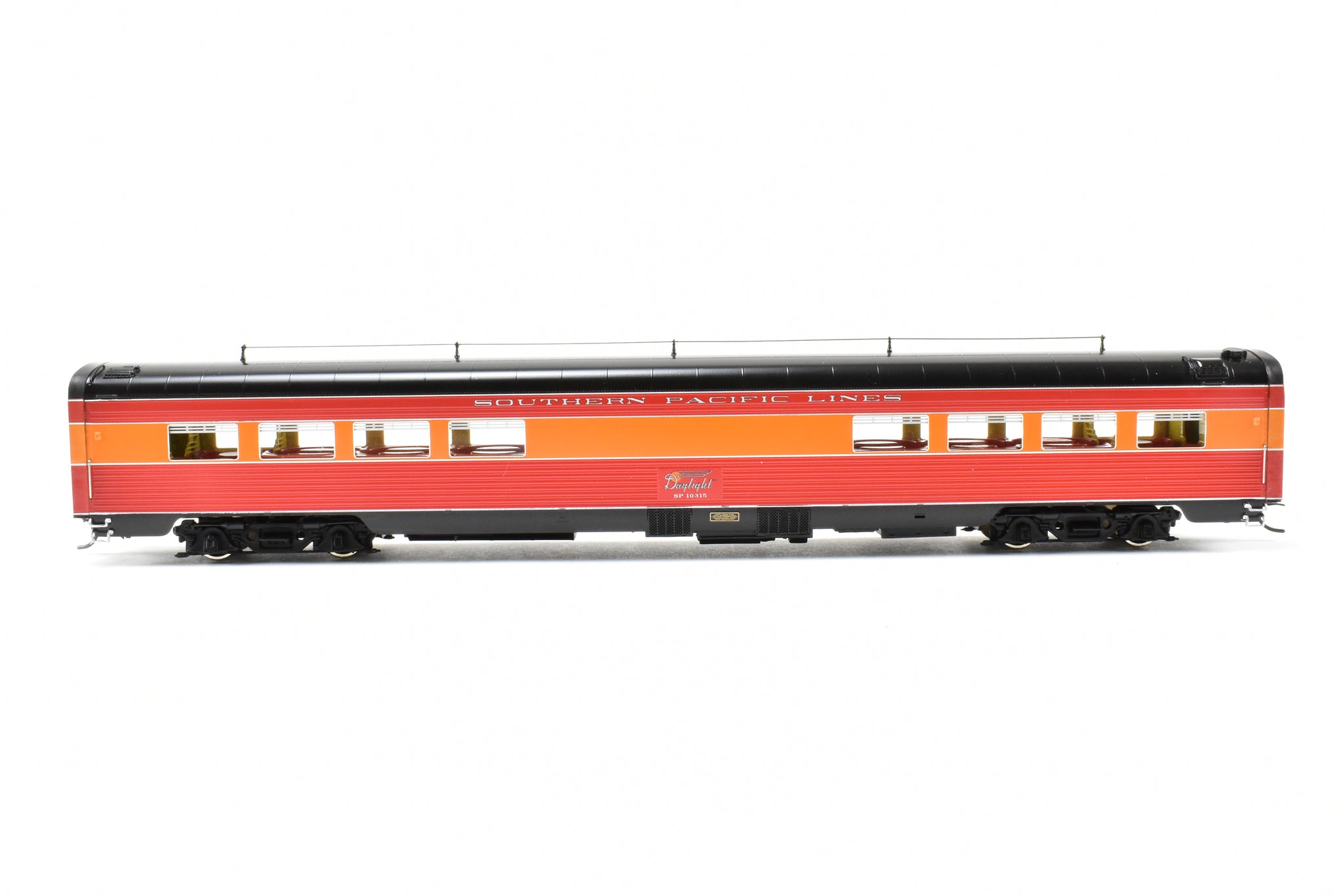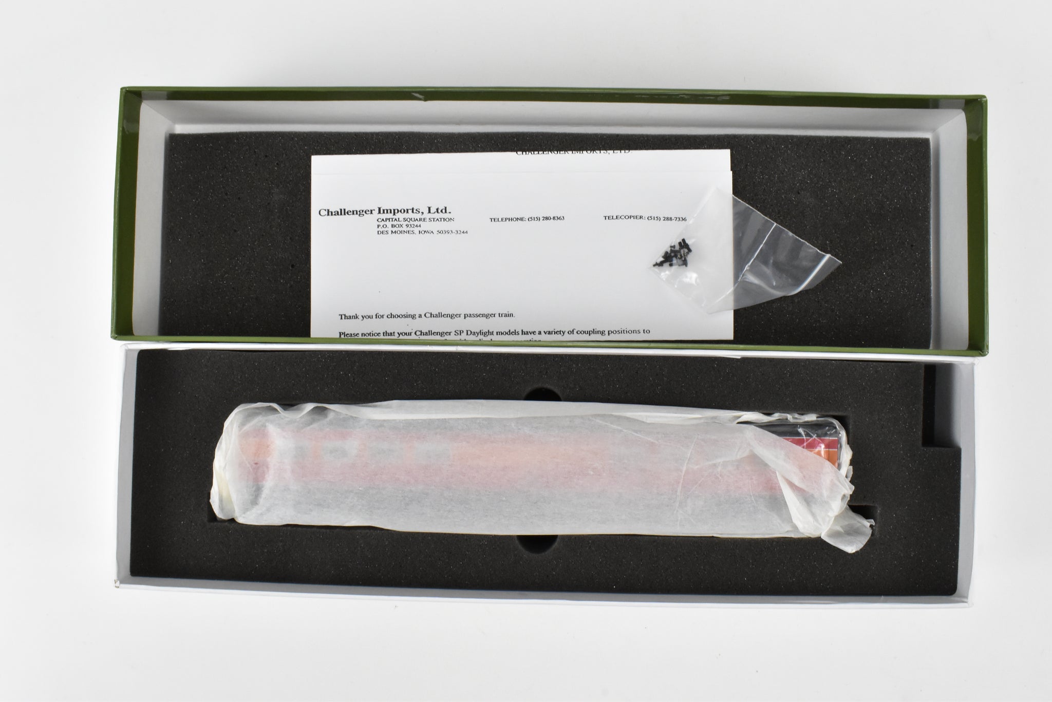 1999 run Challenger Imports models built by Samhongsa in Korea. Box shows minimal shelf wear. Spare parts and paperwork included. Factory finished with window glazing, interiors, and full-width diaphragms installed. Painted in SP's beautiful "Daylight" scheme for the 1941 Morning Daylight train.