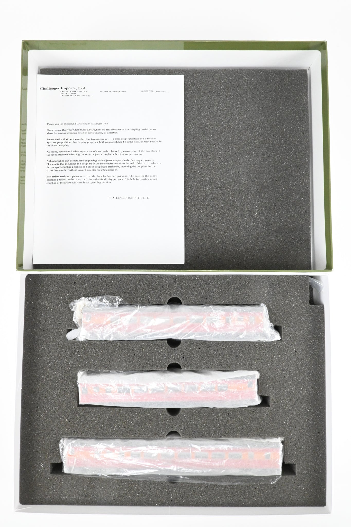 1999 run Challenger Imports models built by Samhongsa in Korea. Box shows minimal shelf wear. Spare parts and paperwork included. Factory finished with window glazing, interiors, and diaphragms installed. This is a 3 car set. Only 35 of these sets were produced. This set features the following cars: