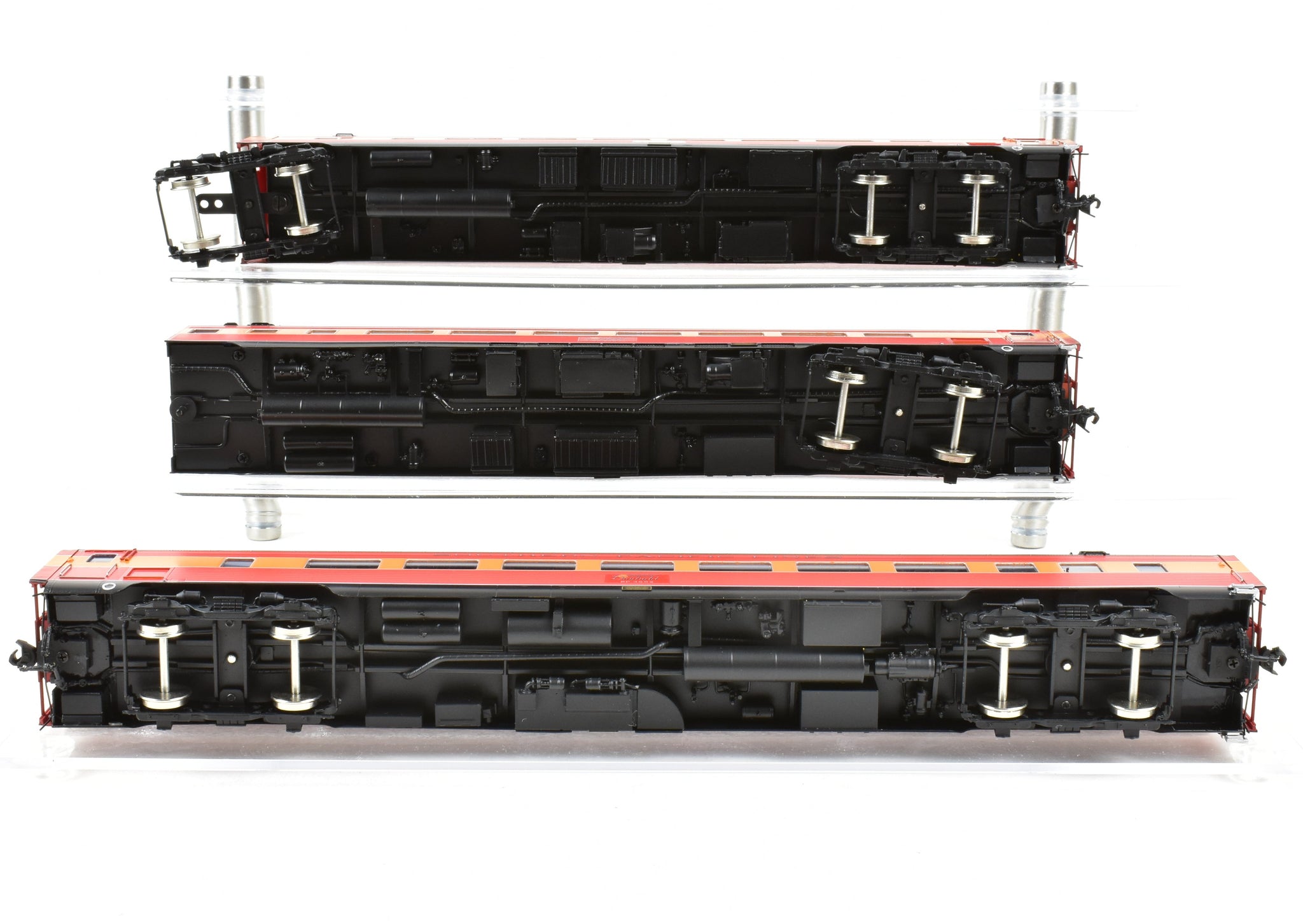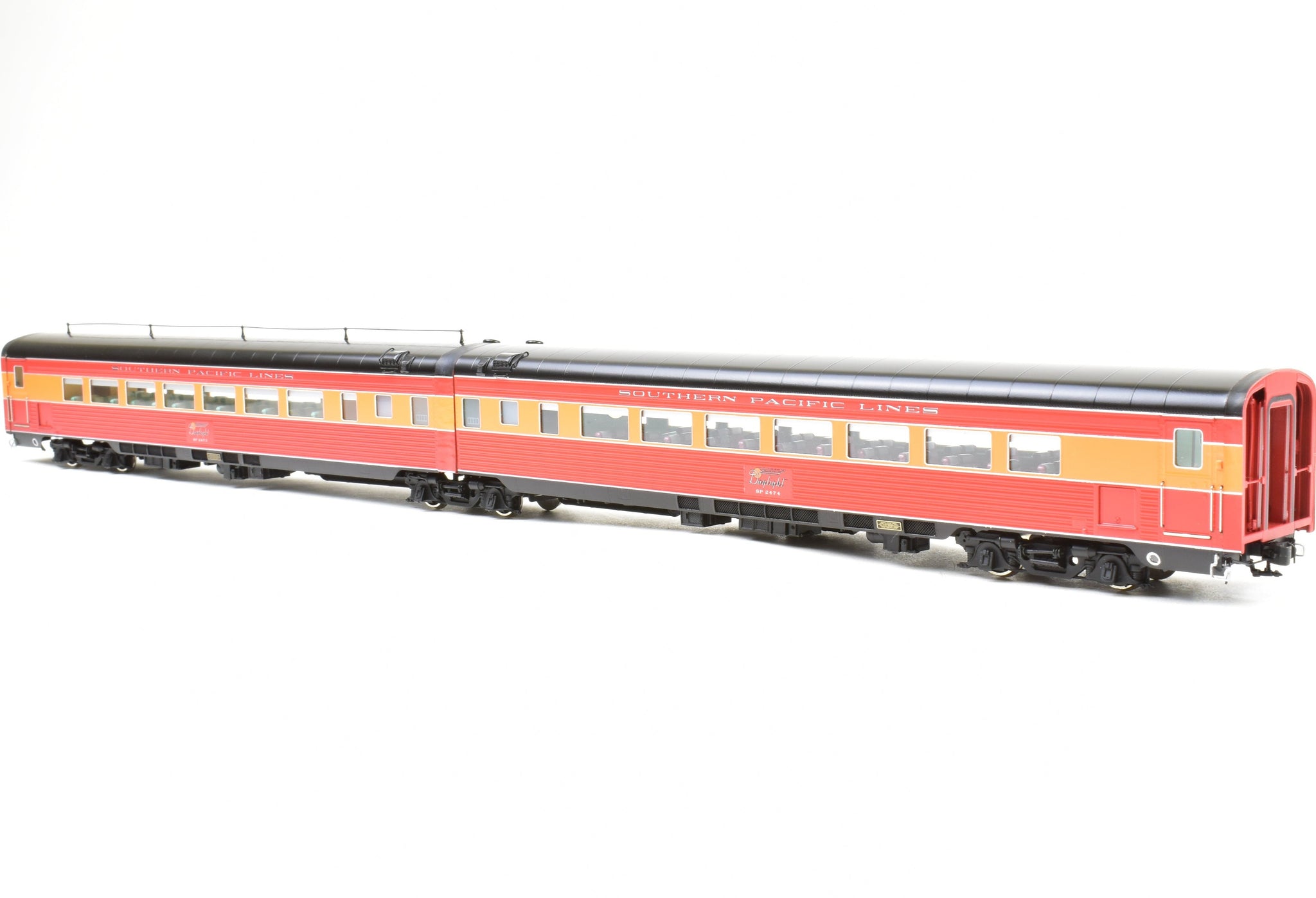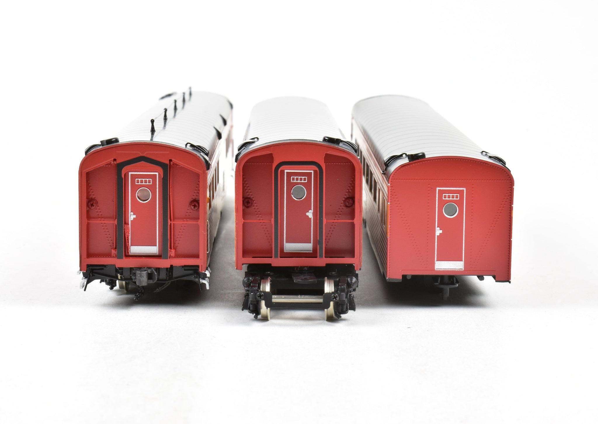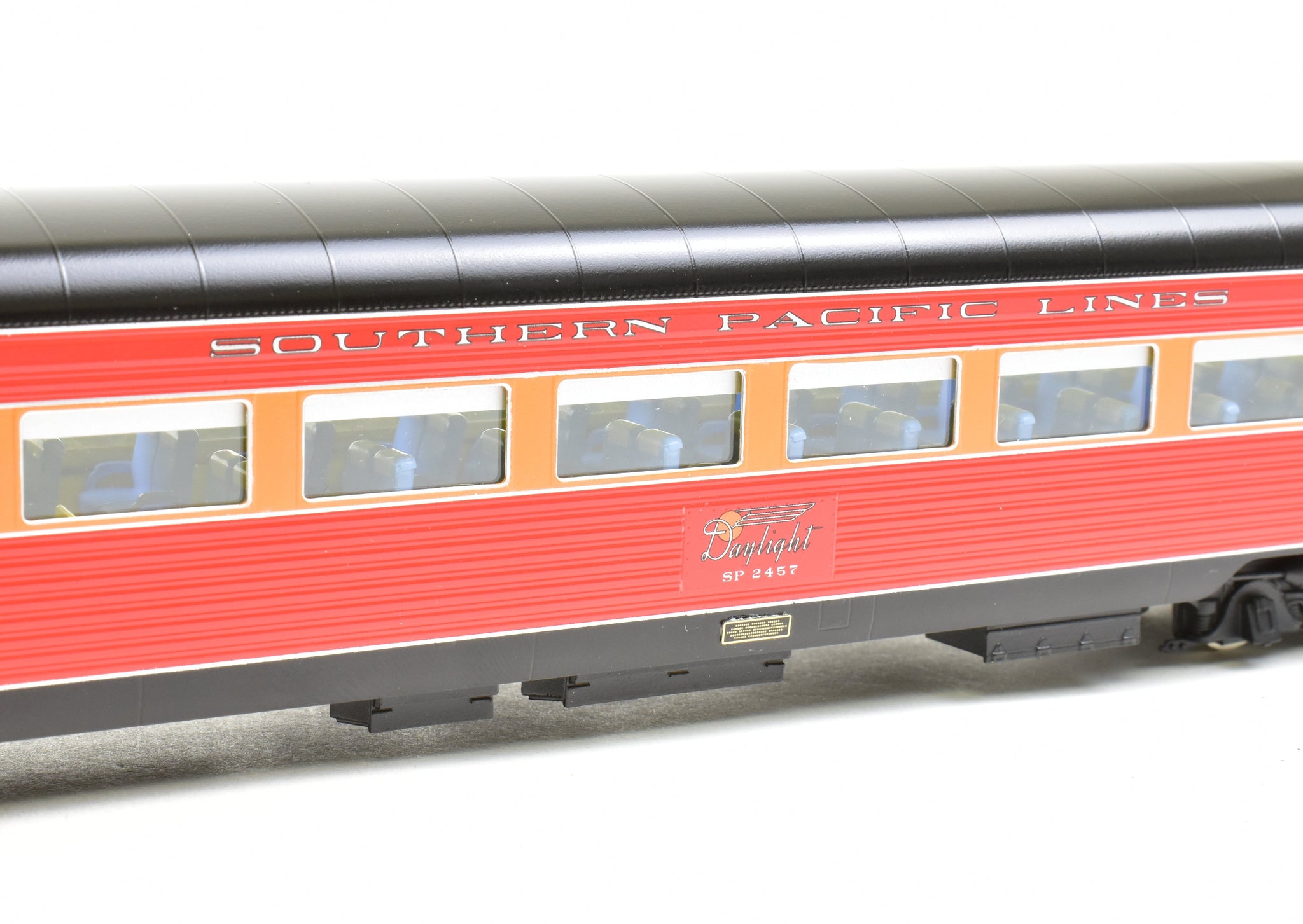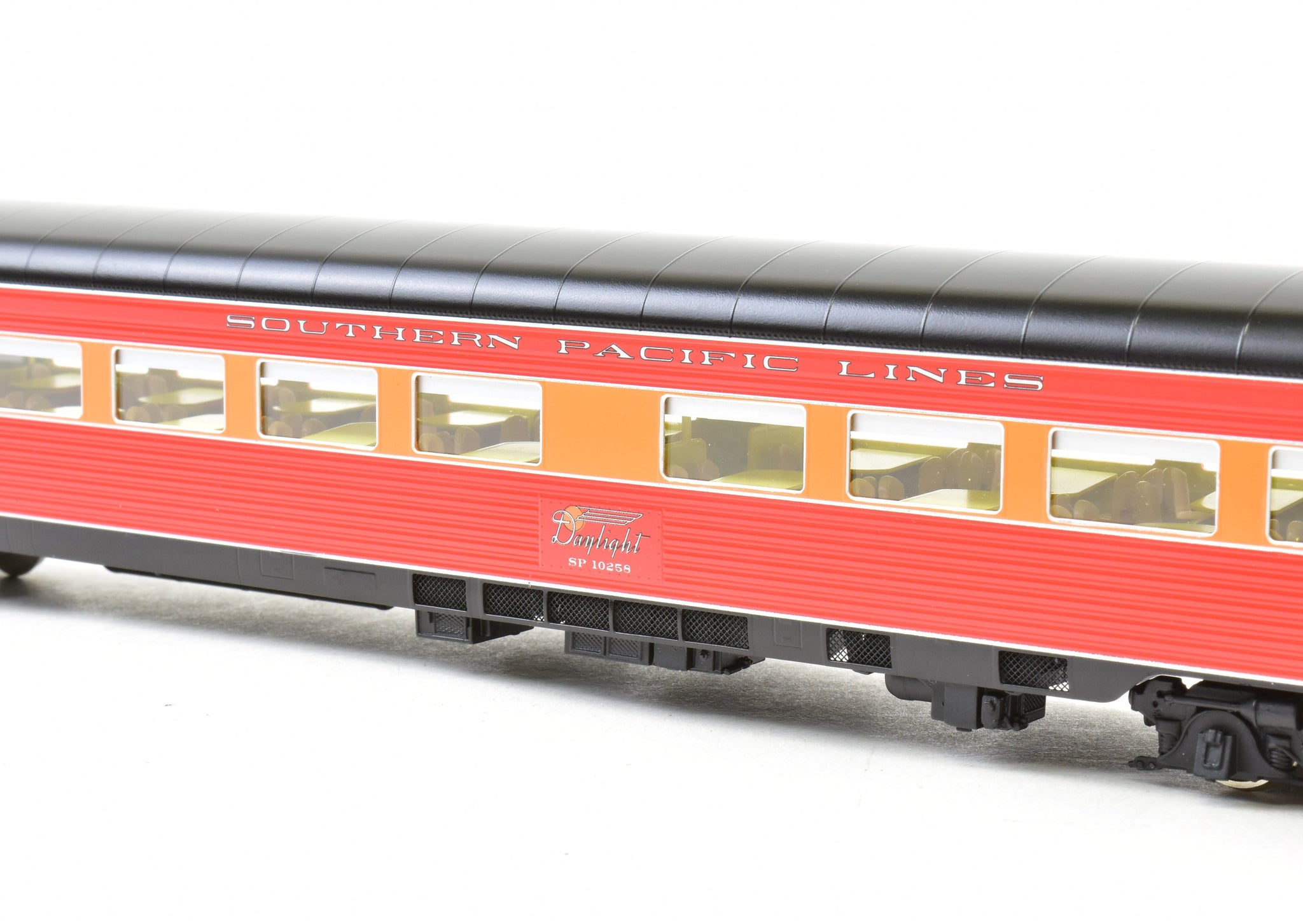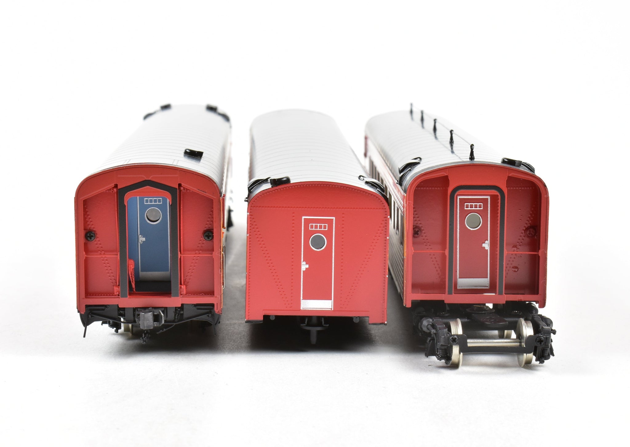 1999 run Challenger Imports models built by Samhongsa in Korea. Box shows minimal shelf wear. Spare parts included. Factory finished with window glazing, interiors, and diaphragms installed. Represents a full 16-car consist that would have operated at peak times on the coast line. Note: A couple trust plate etching are missing - see photos.
