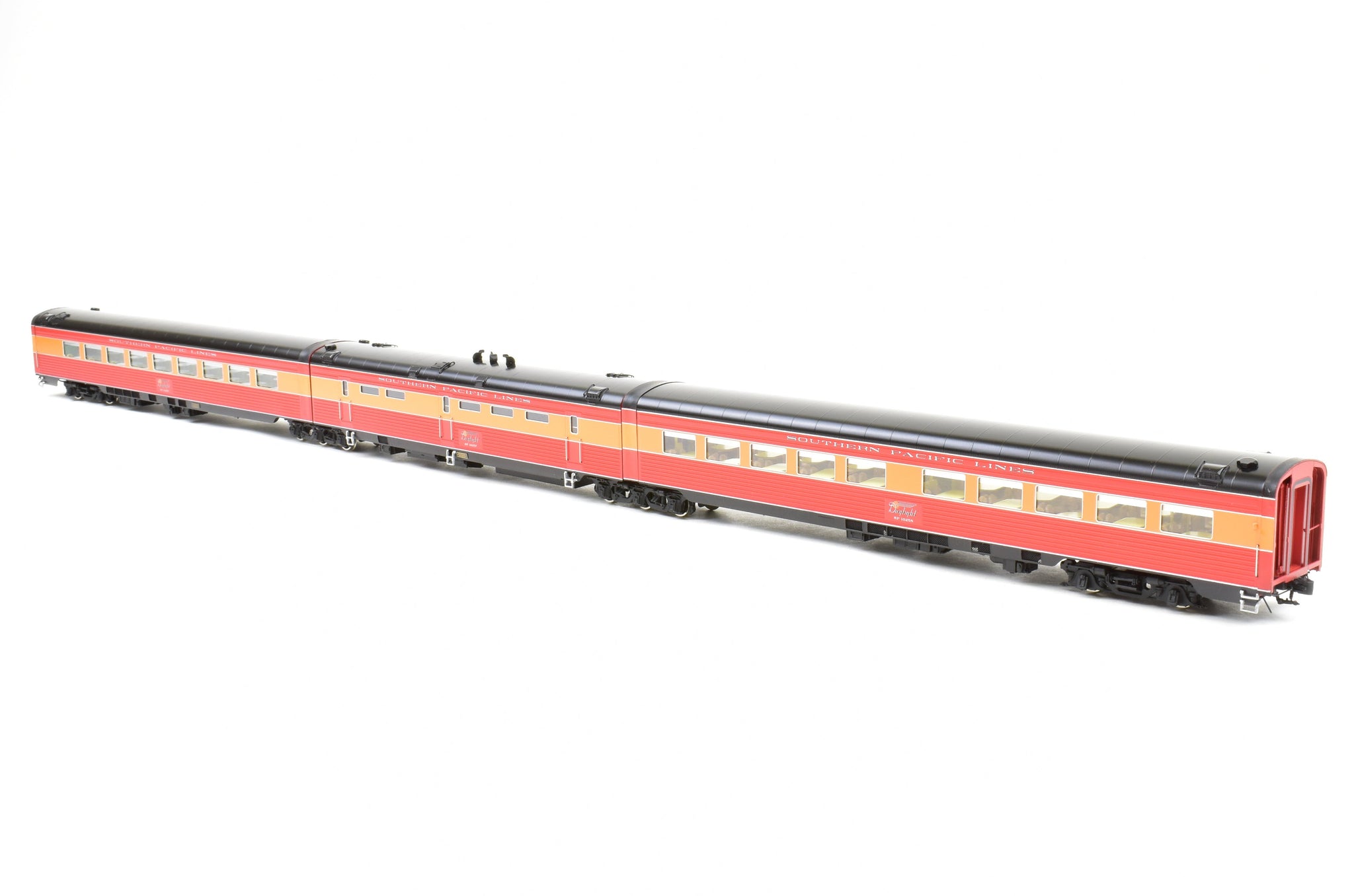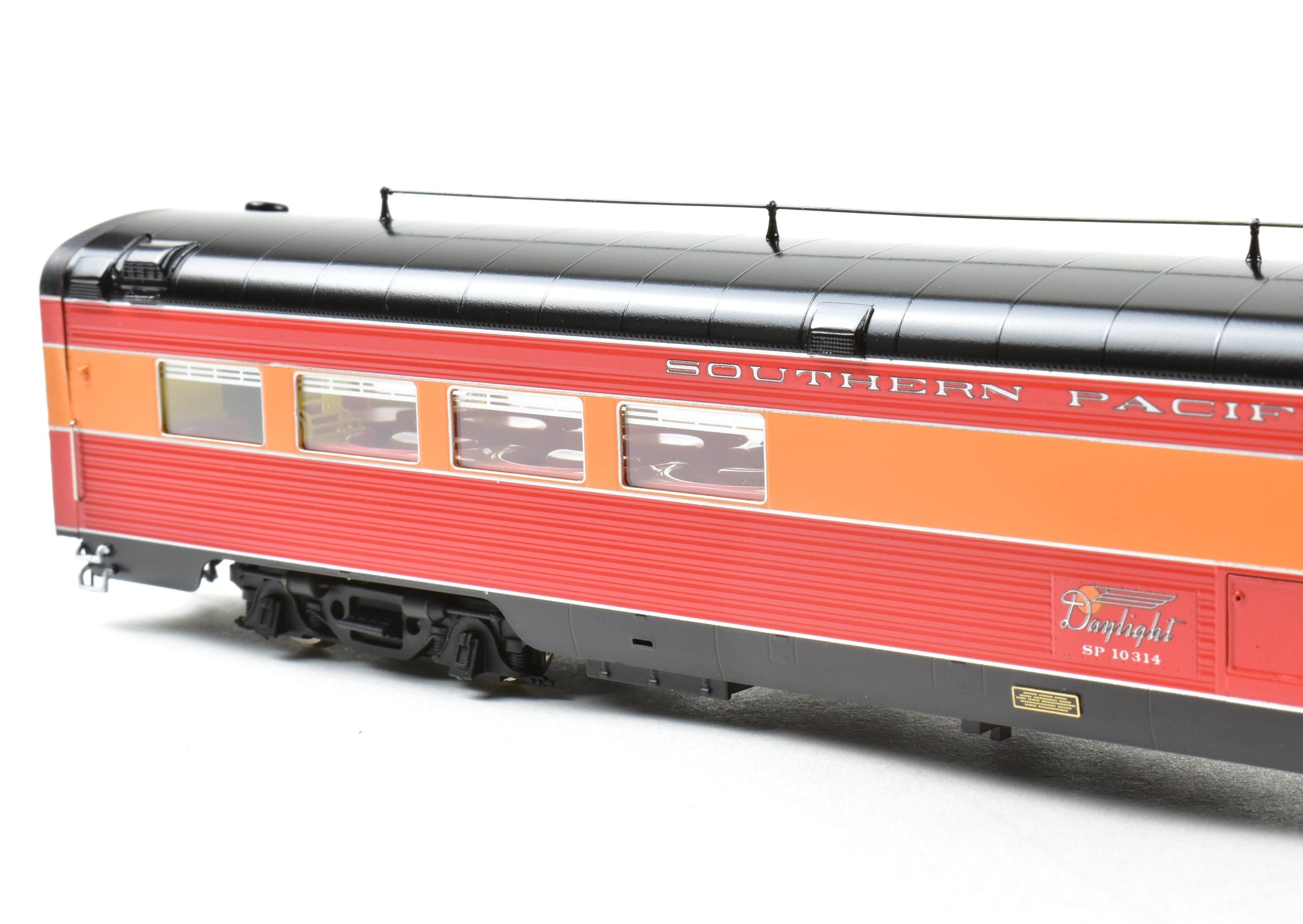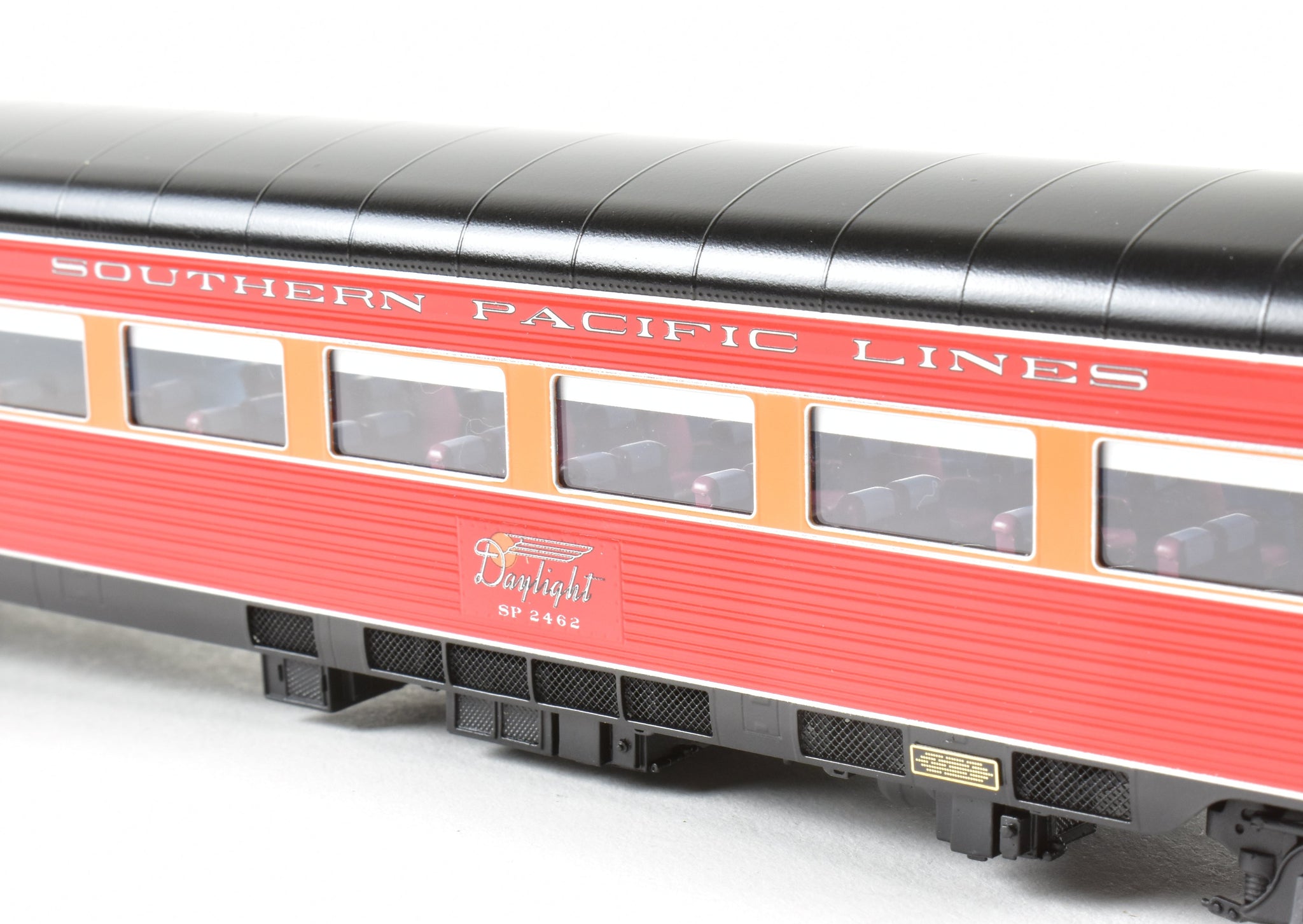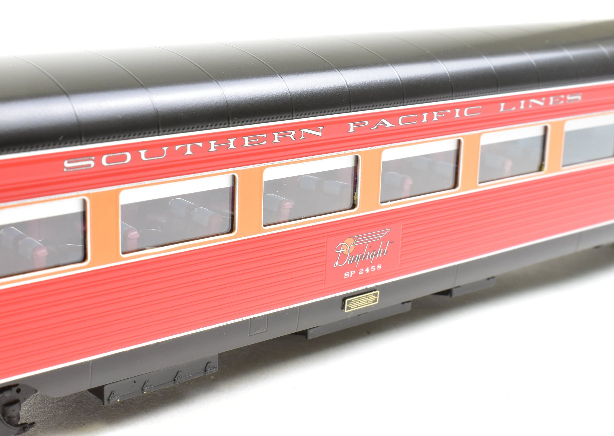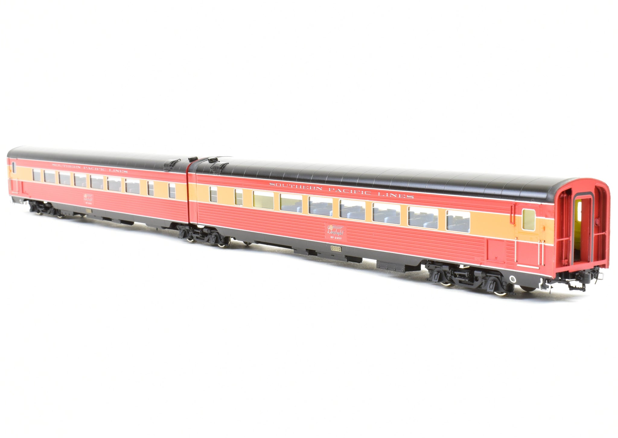 1999 run Challenger Imports models built by Samhongsa in Korea. Box shows minimal shelf wear. Spare parts included. Factory finished with window glazing, interiors, and diaphragms installed. Represents a full 16-car consist that would have operated at peak times on the coast line. Note: A couple trust plate etching are missing - see photos.