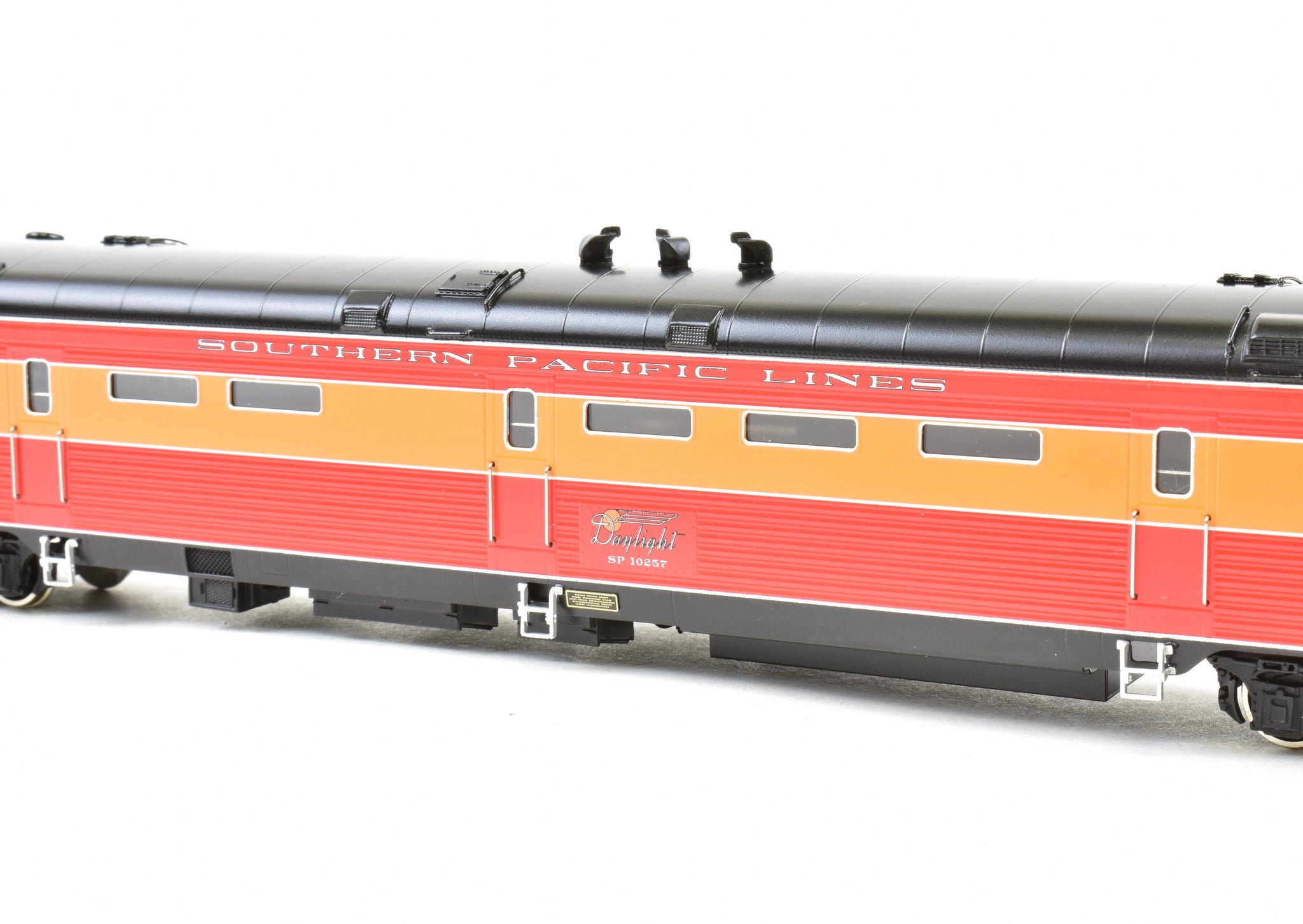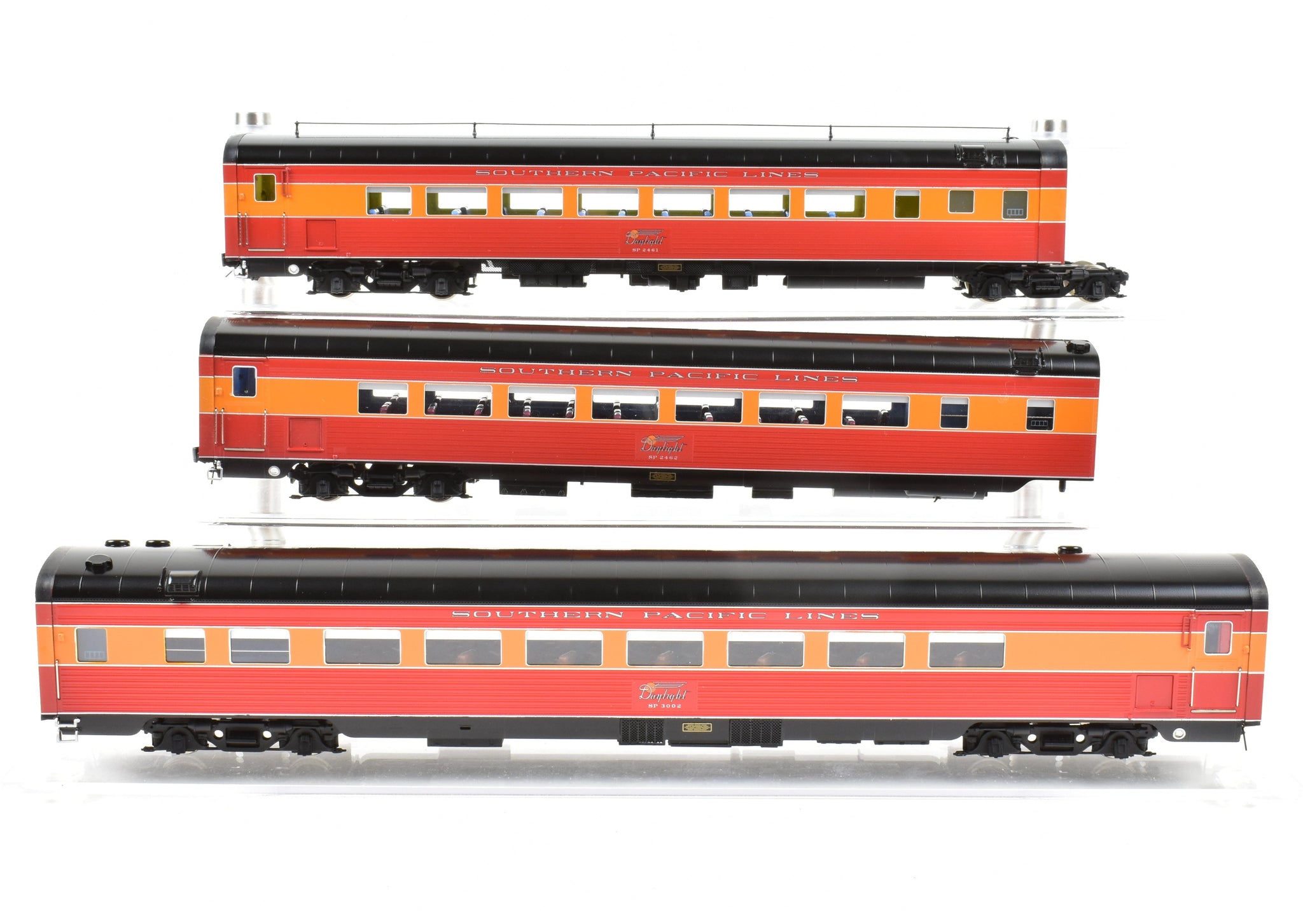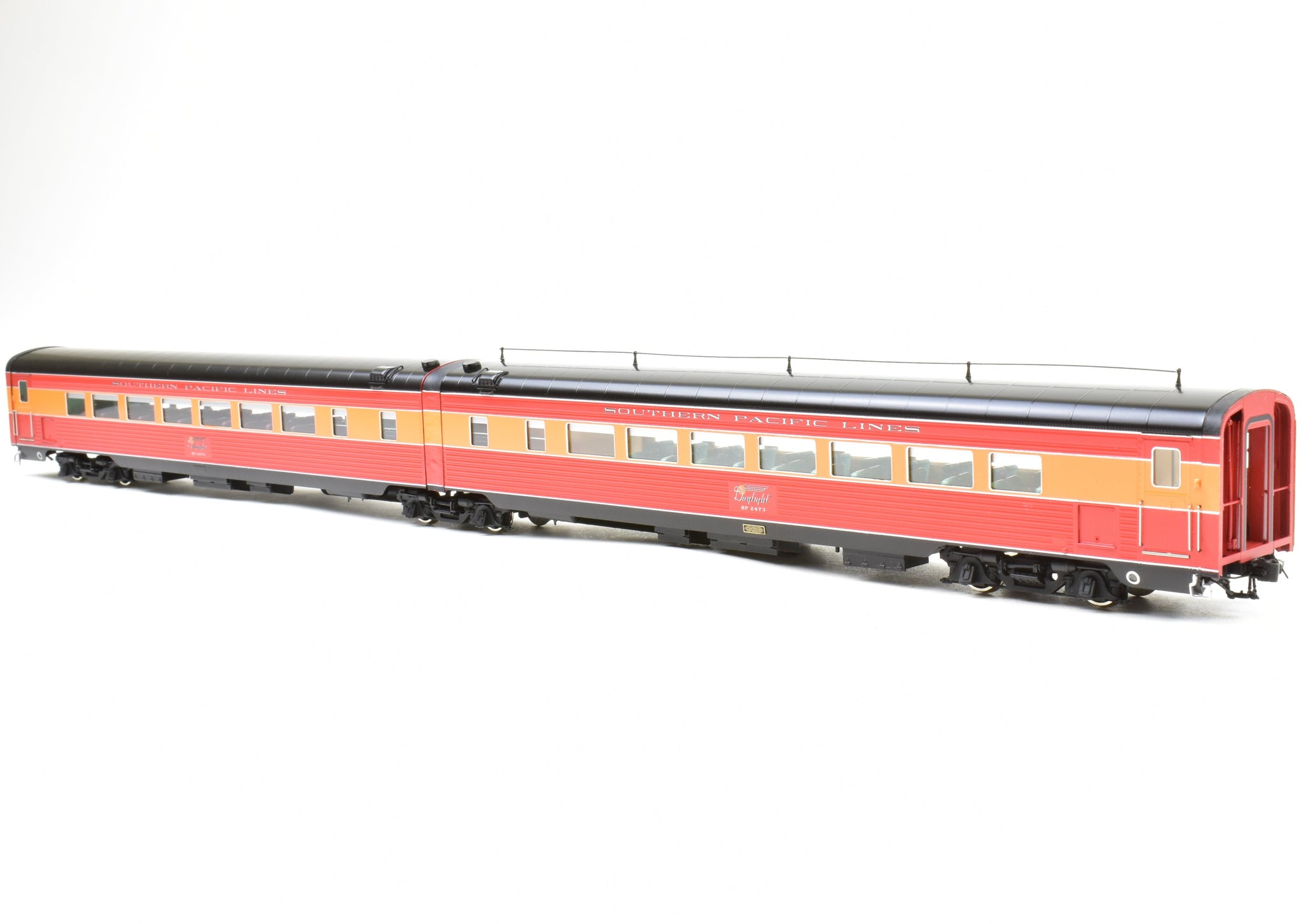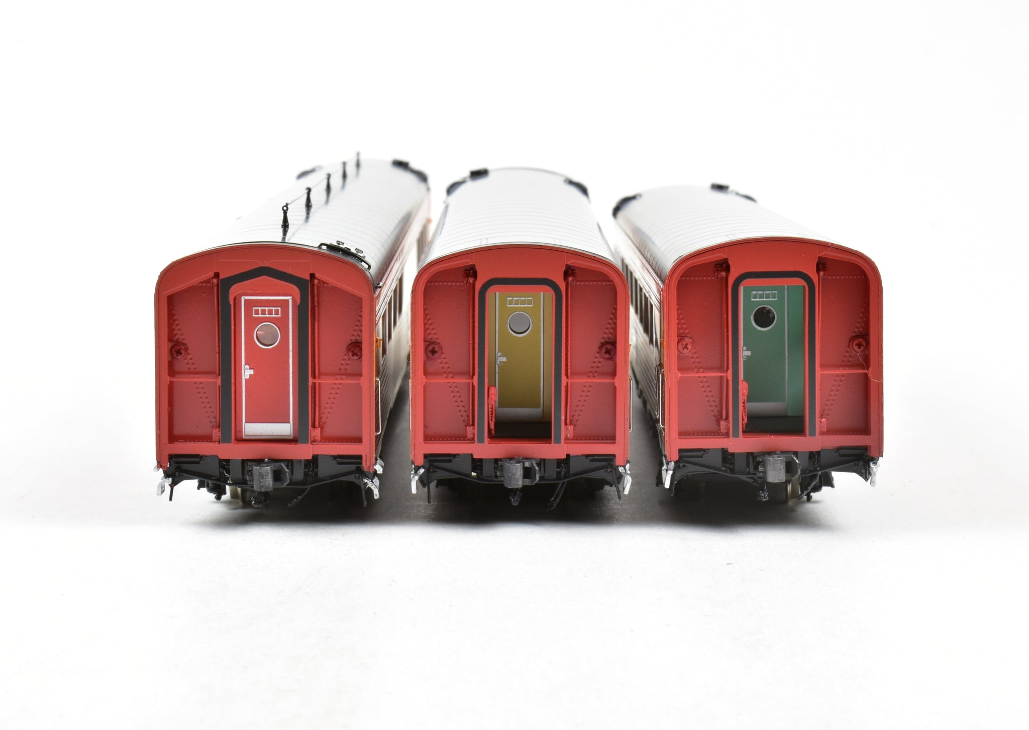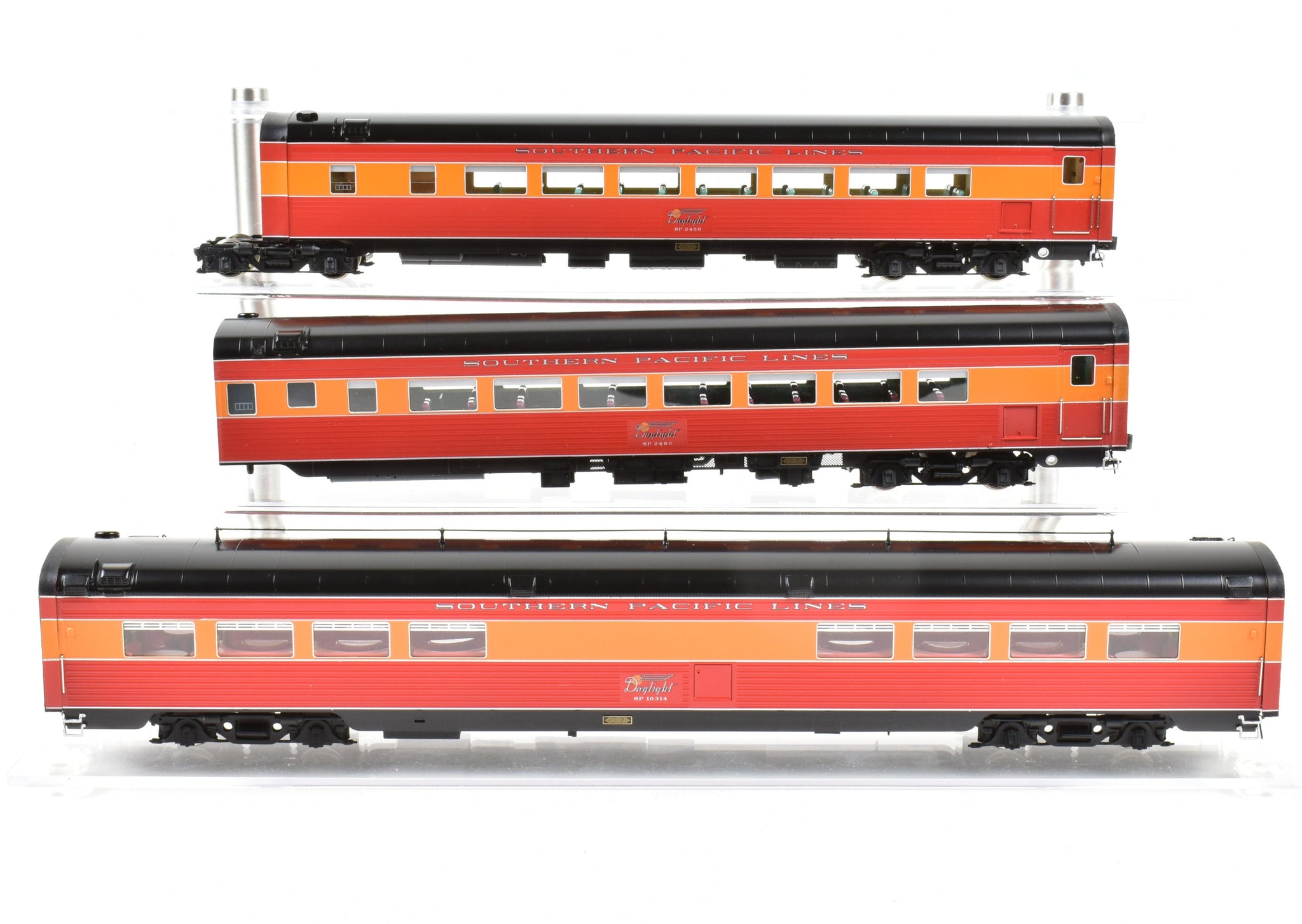 1999 run Challenger Imports models built by Samhongsa in Korea. Box shows minimal shelf wear. Spare parts included. Factory finished with window glazing, interiors, and diaphragms installed. Represents a full 16-car consist that would have operated at peak times on the coast line. Note: A couple trust plate etching are missing - see photos.
