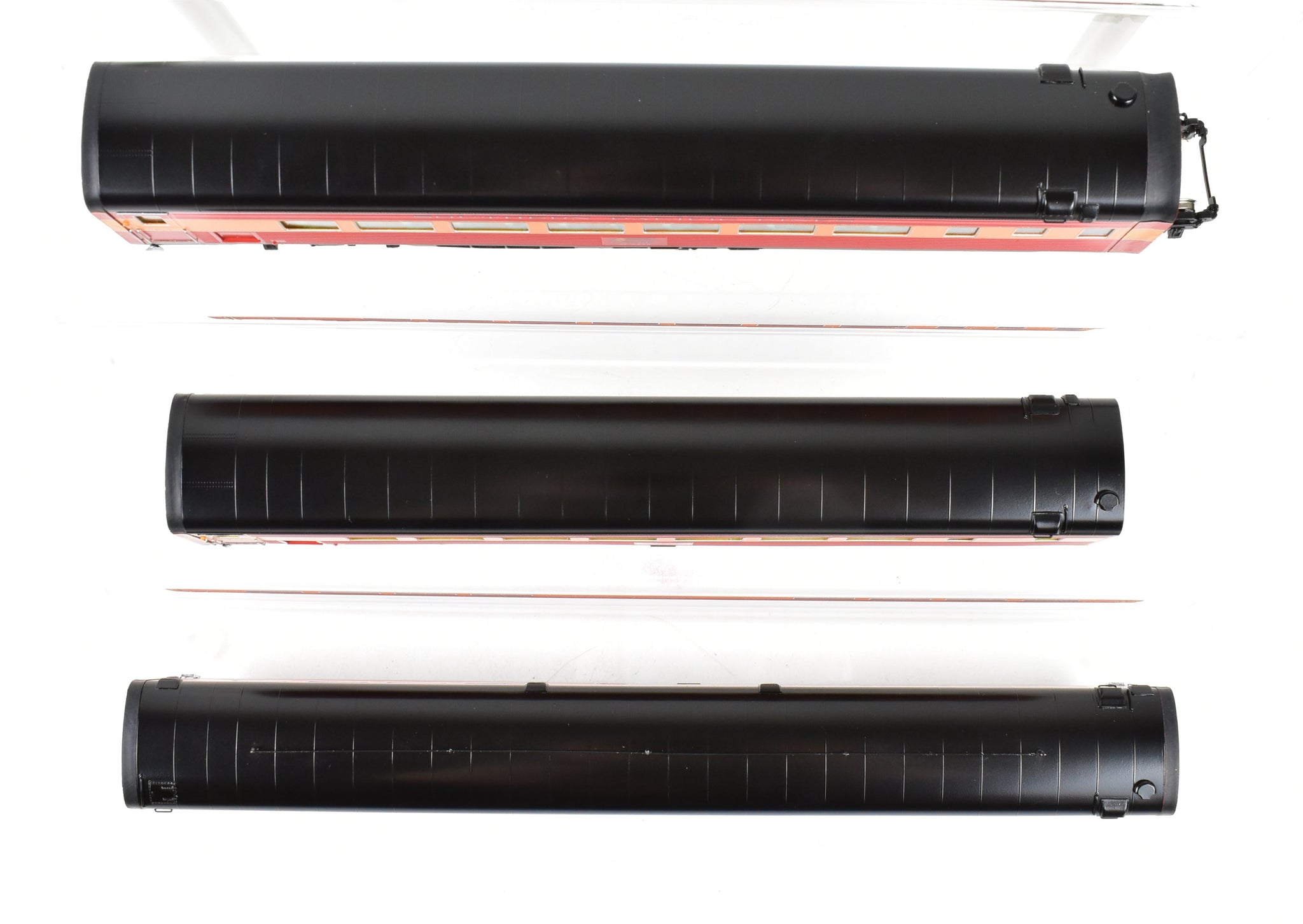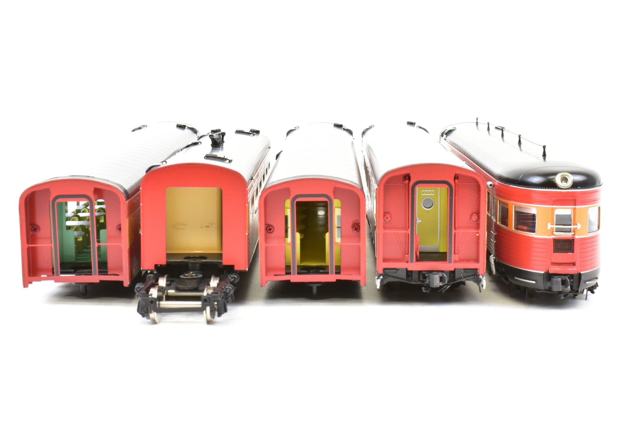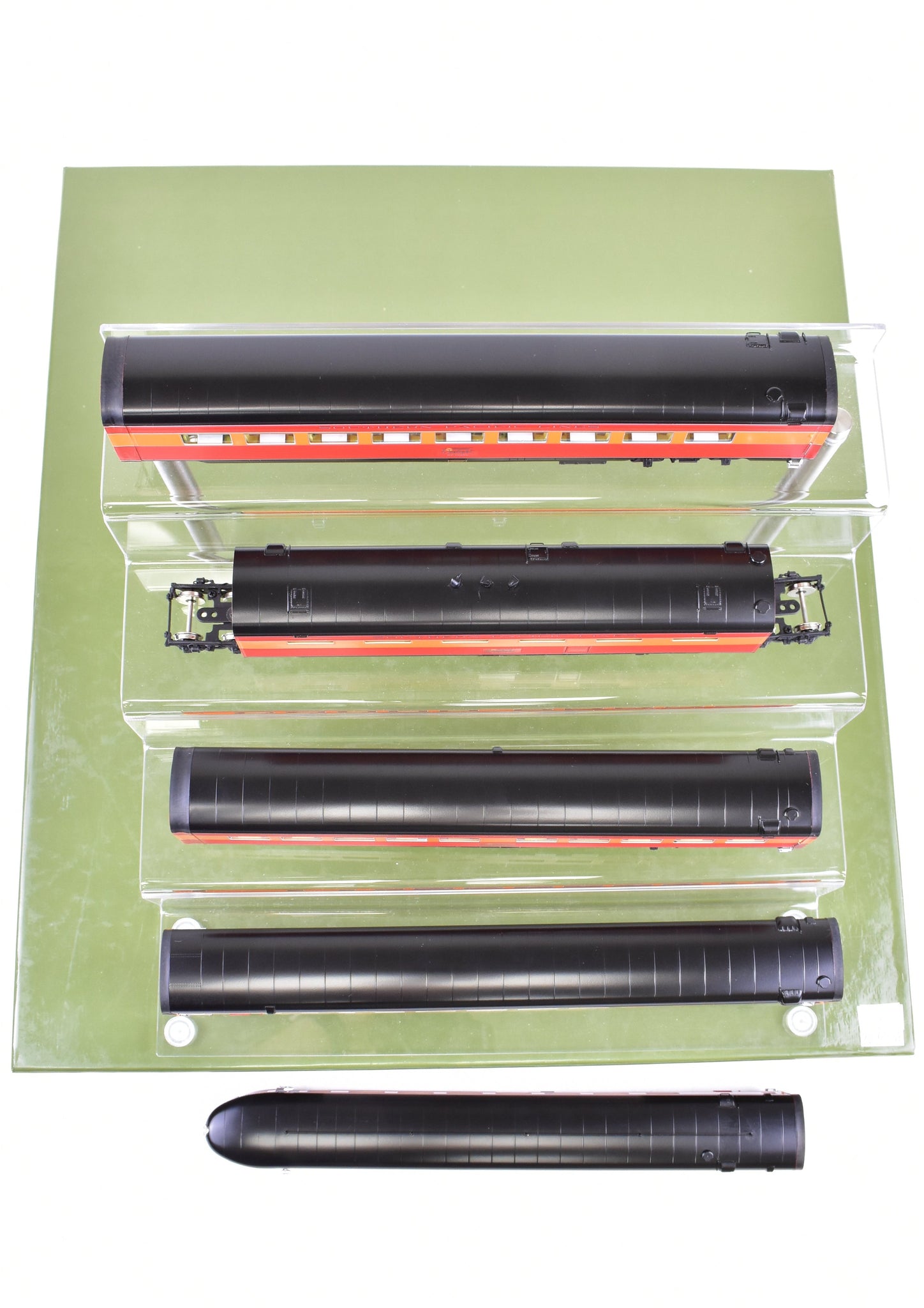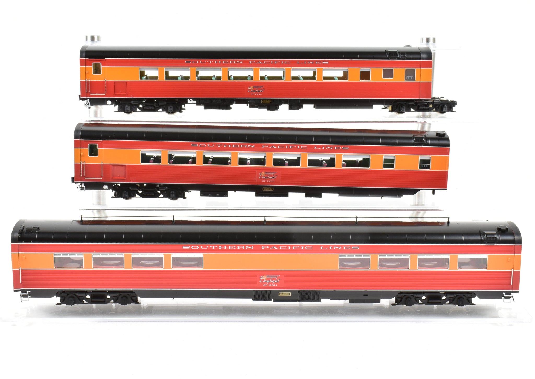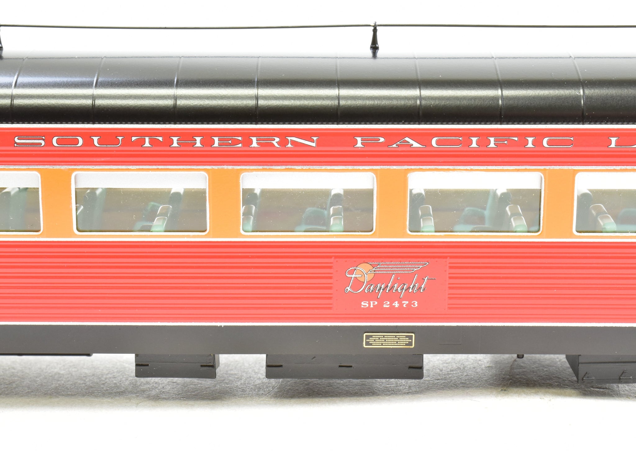 1999 run Challenger Imports models built by Samhongsa in Korea. Box shows minimal shelf wear. Spare parts included. Factory finished with window glazing, interiors, and diaphragms installed. Represents a full 16-car consist that would have operated at peak times on the coast line. Note: A couple trust plate etching are missing - see photos.