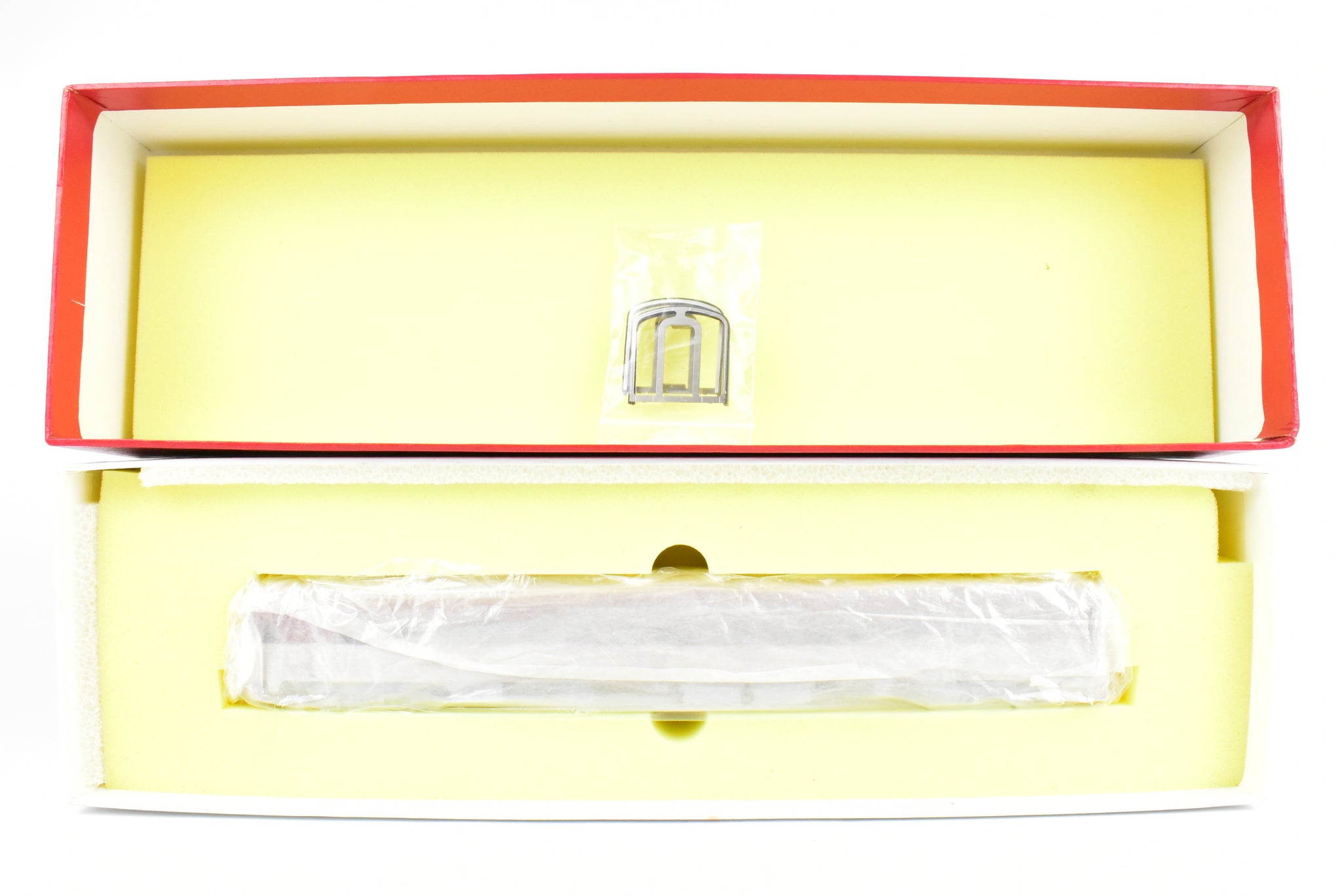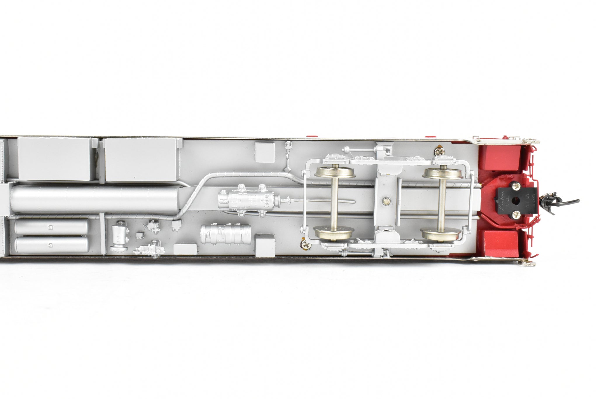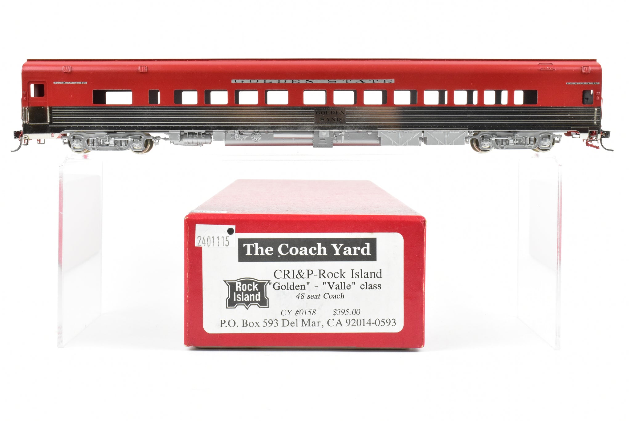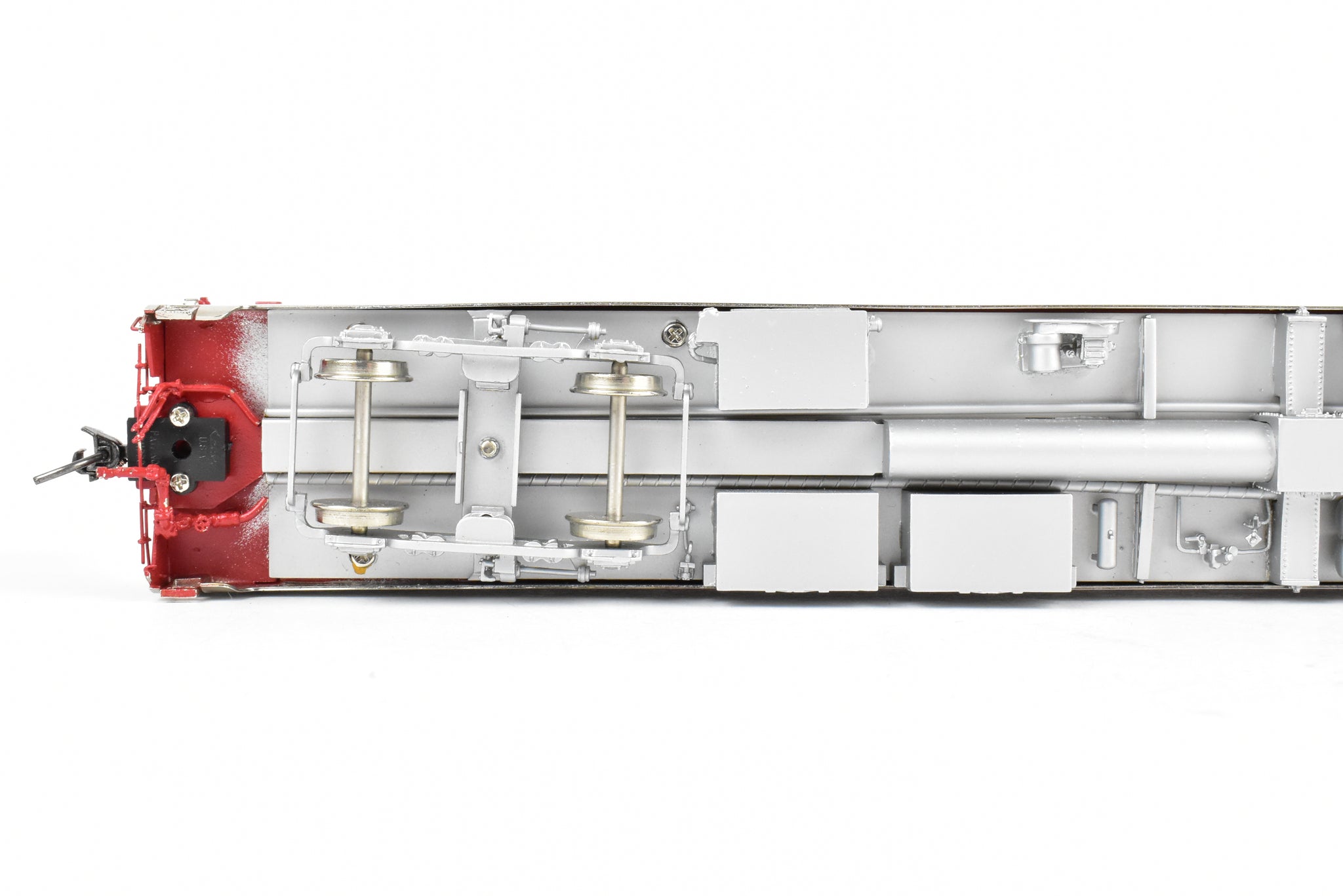 1990's run The Coach Yard imported model built by Samhongsa in Korea. Original, but incorrect, box shows minimal wear. Grey painted full width diaphragms included. This is actually a Budd built divided chair car that was used on the Sunset Limited. This example has been incorrectly painted into the Golden State scheme.