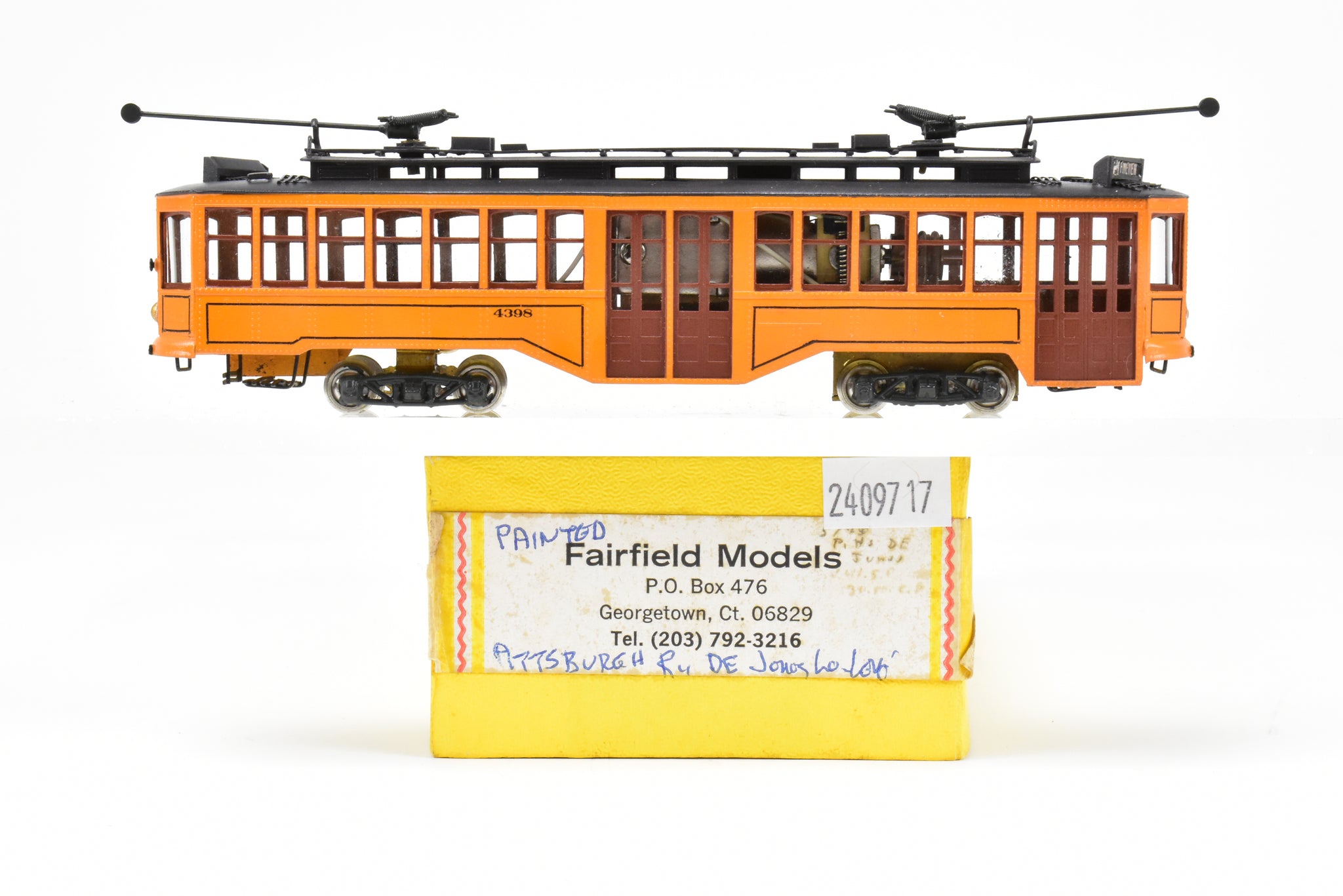 1976 run built for Fairfield Traction Models by Kumata of Japan. Minimal wear on the box. Trolley poles installed. Represents a Double ended car. Model is custom painted, paintwork is very good. The underframe is unpainted (see photos). Super nice finish throughout.