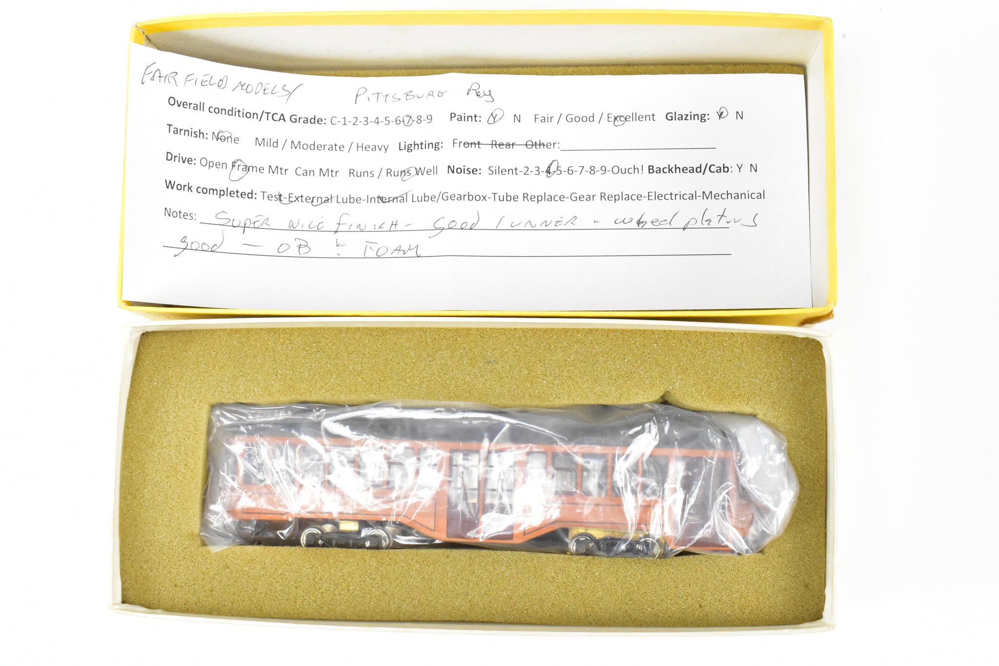 Decorated: Custom painted - Carbody is orange and black with nice finish. Underframe is unpainted.