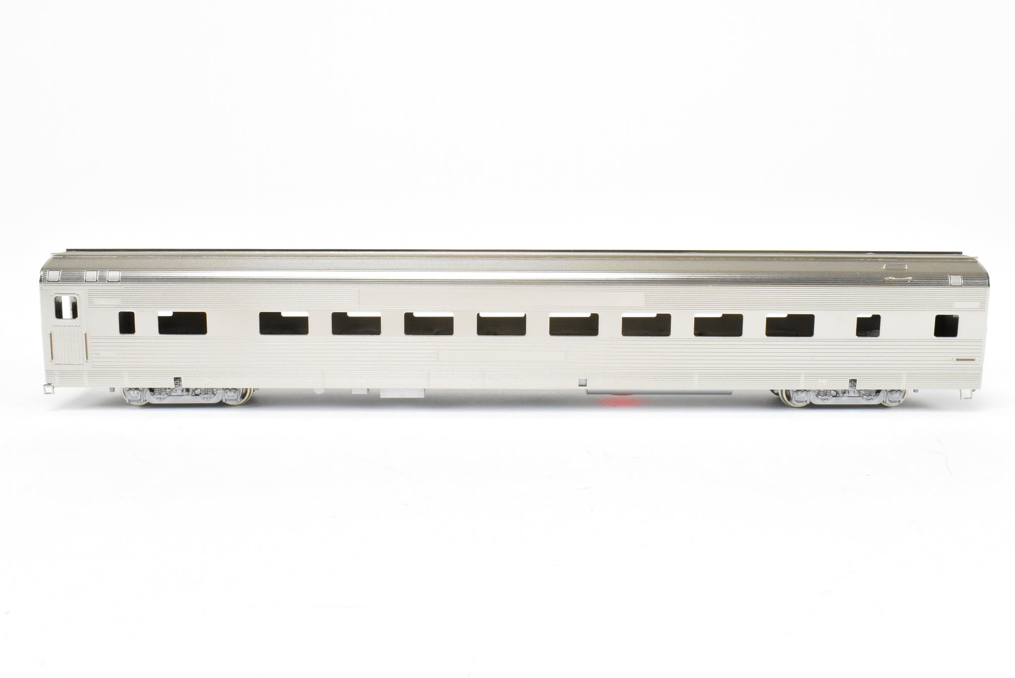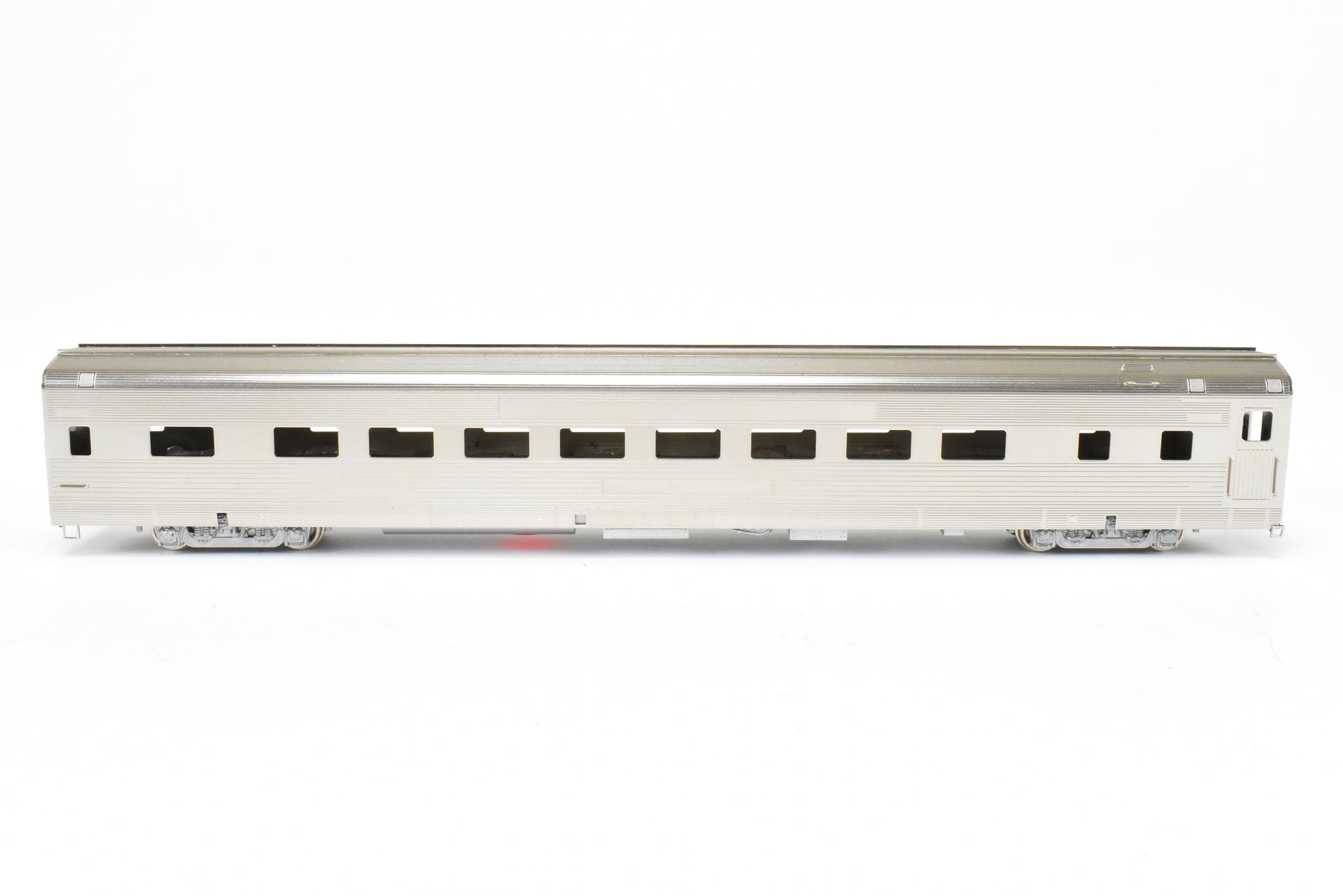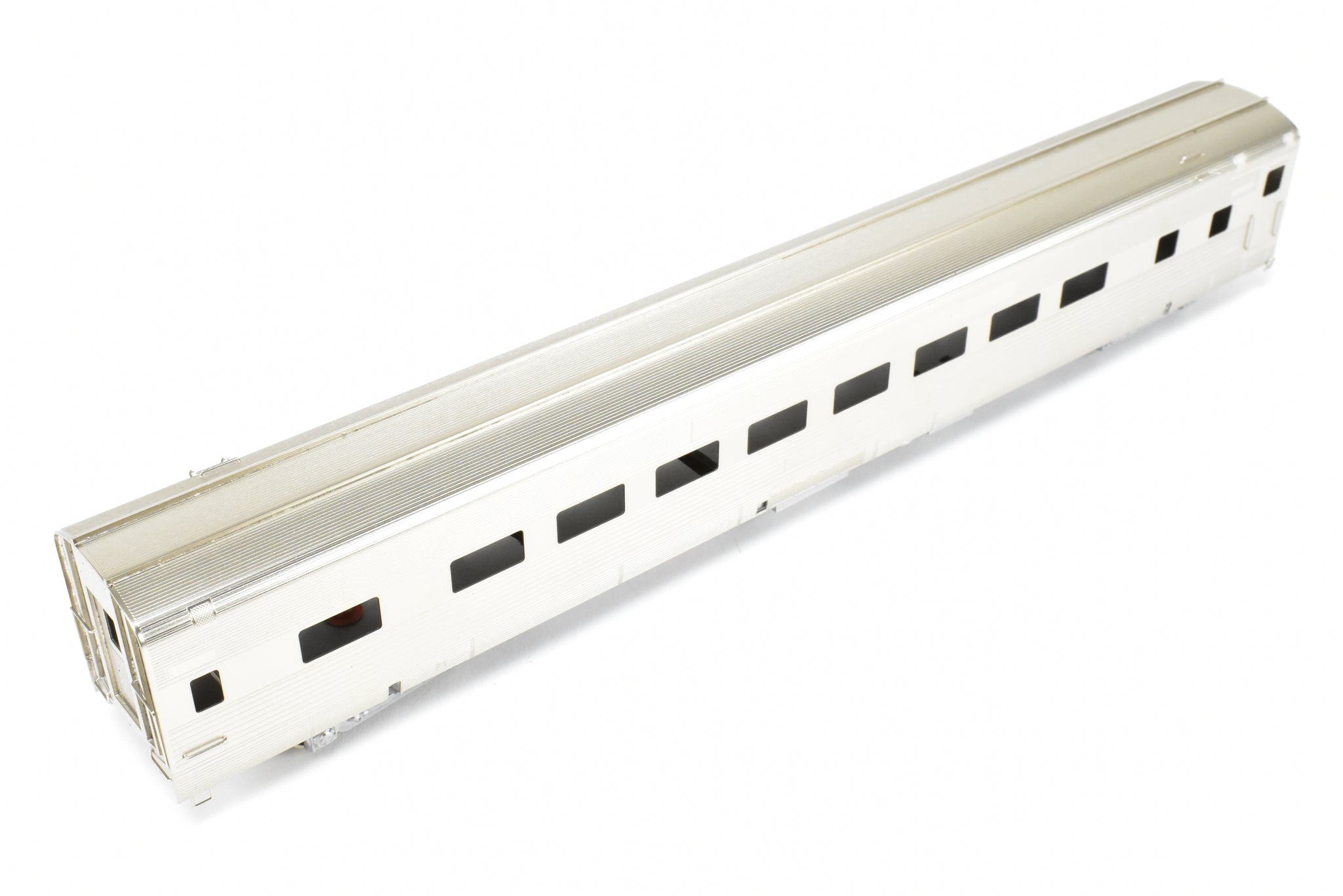 Model built in Japan. Box shows minimal shelf wear. Like new. No spare parts. model plating is near mint. This model represents Budd's 16 section sleeper. These sleepers were used on the California Zephyr from 1949 to 1964 when they were converted to chair cars. Two of these cars survived on the Rio Grande Zephyr.