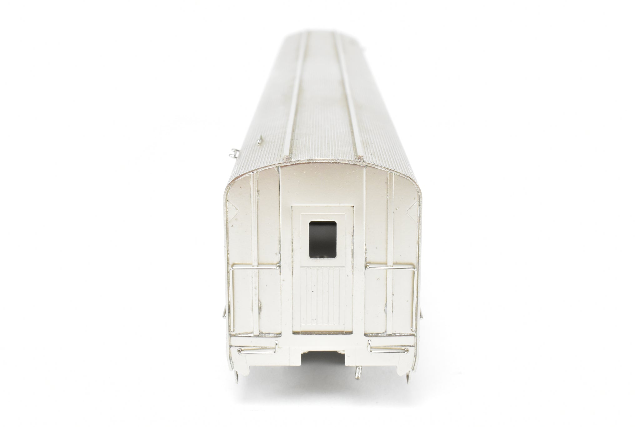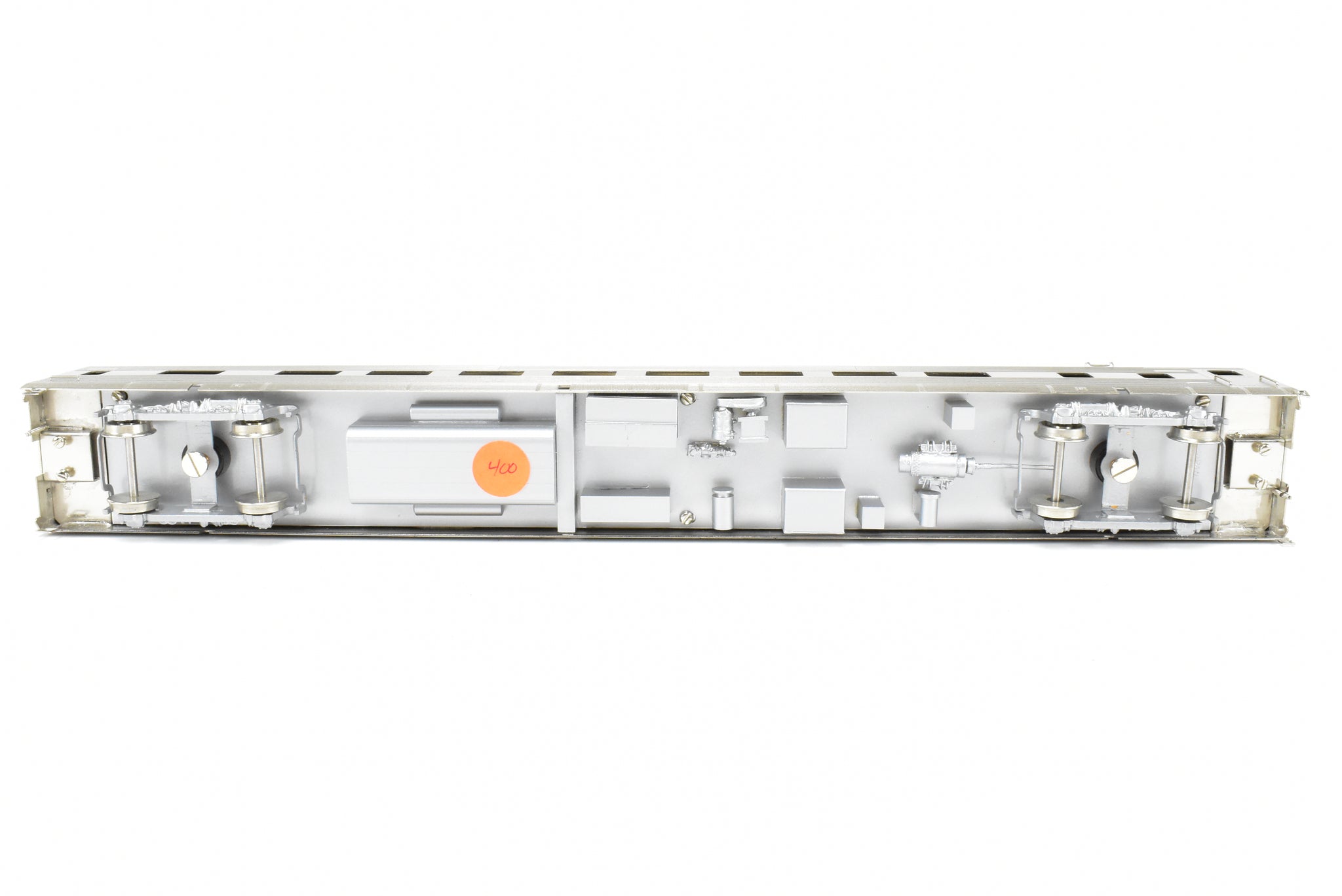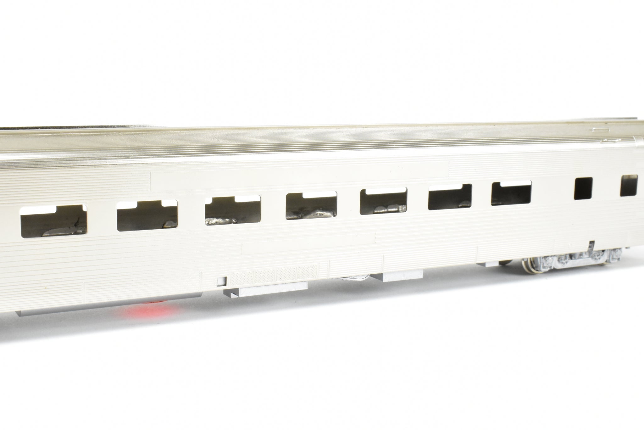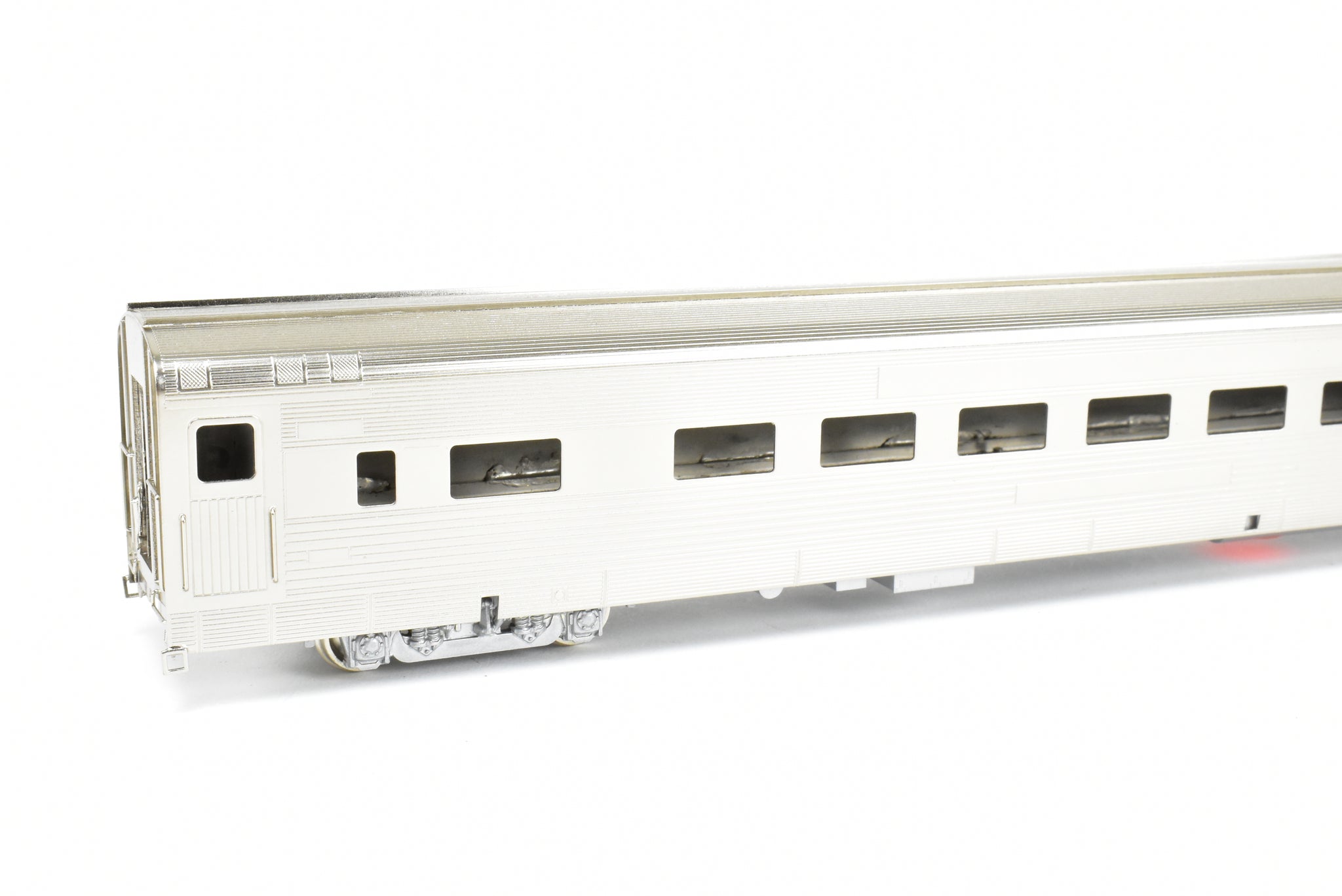 Model built in Japan. Box shows minimal shelf wear. Like new. No spare parts. model plating is near mint. This model represents Budd's 16 section sleeper. These sleepers were used on the California Zephyr from 1949 to 1964 when they were converted to chair cars. Two of these cars survived on the Rio Grande Zephyr.