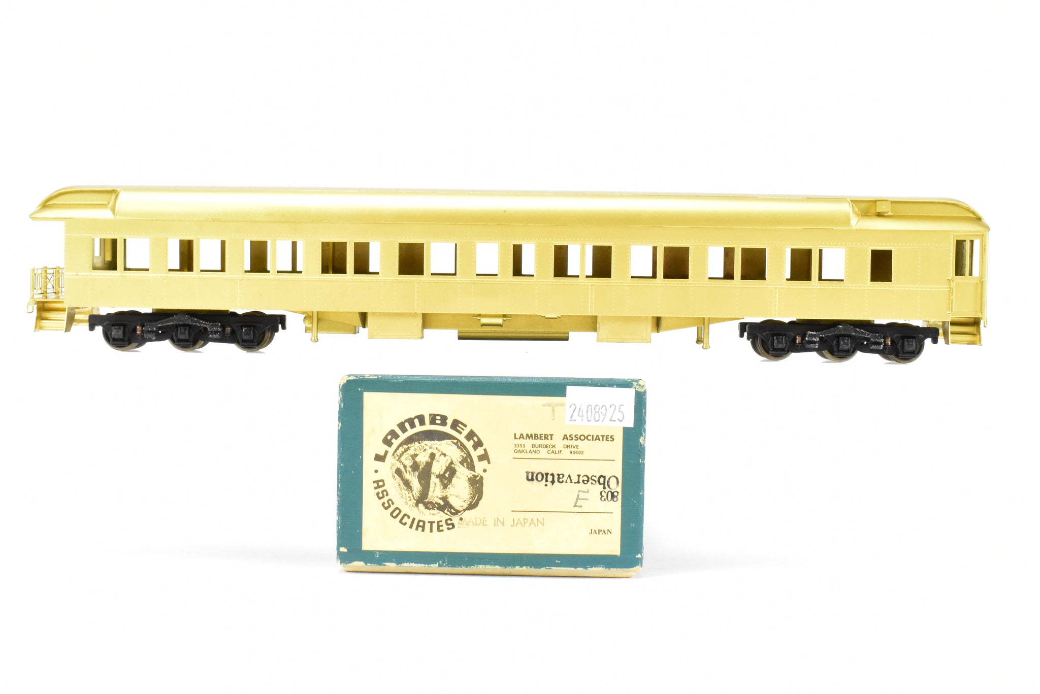 1971 run Lambert Associates model built by Kumata in Japan. Box shows minimal shelf wear and Lambert paperwork is included. Central Valley trucks with metal wheels have been added - none originally included. No spare parts included. Model represents a Pullman 3-2 Lounge Observation.