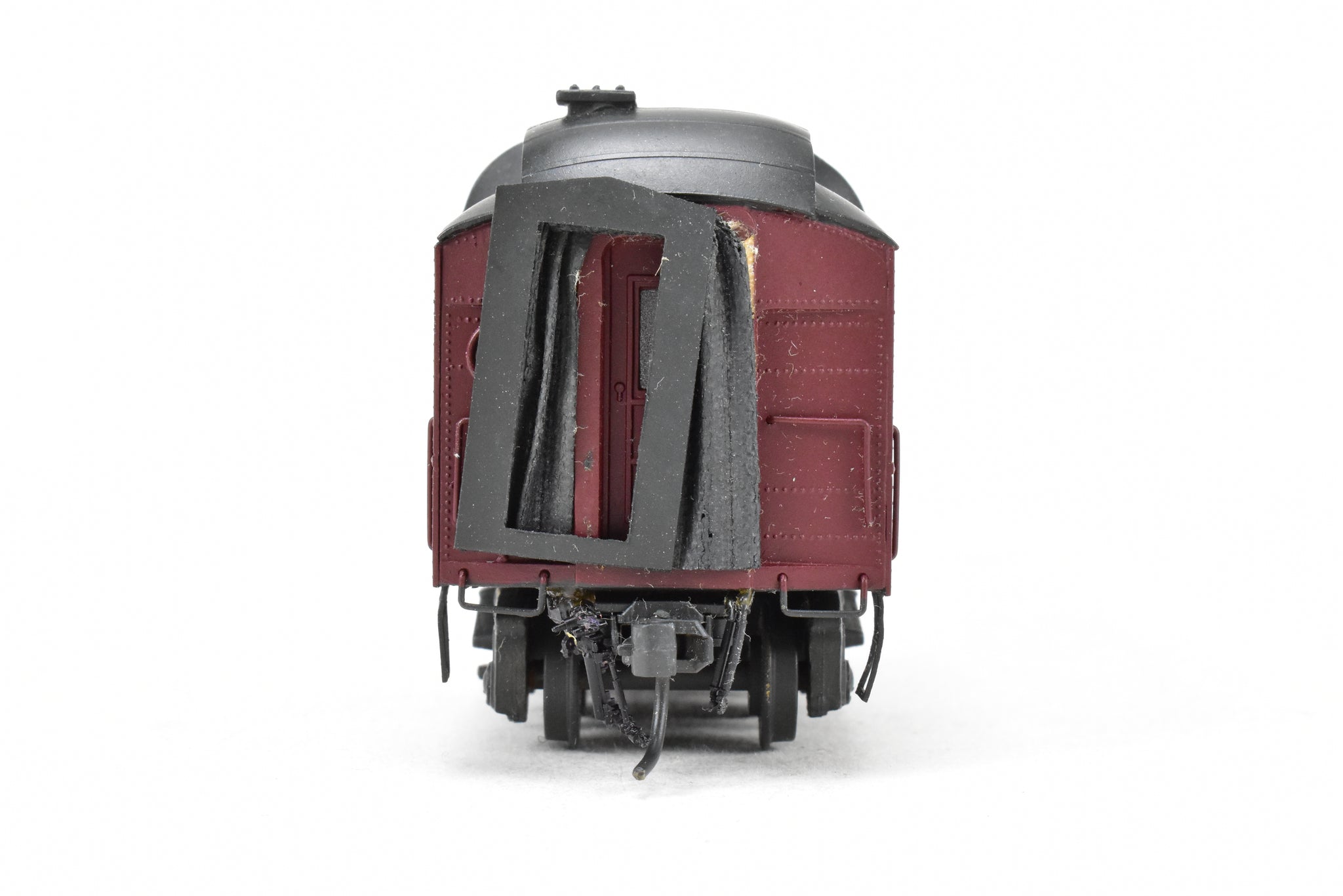 Built in Japan. Original box shows some wear. There are no spare parts, Central Valley trucks on the model. Custom painted and glazing adde but fogged over - see photos. Steam lines and airhose details added to end - see photos.