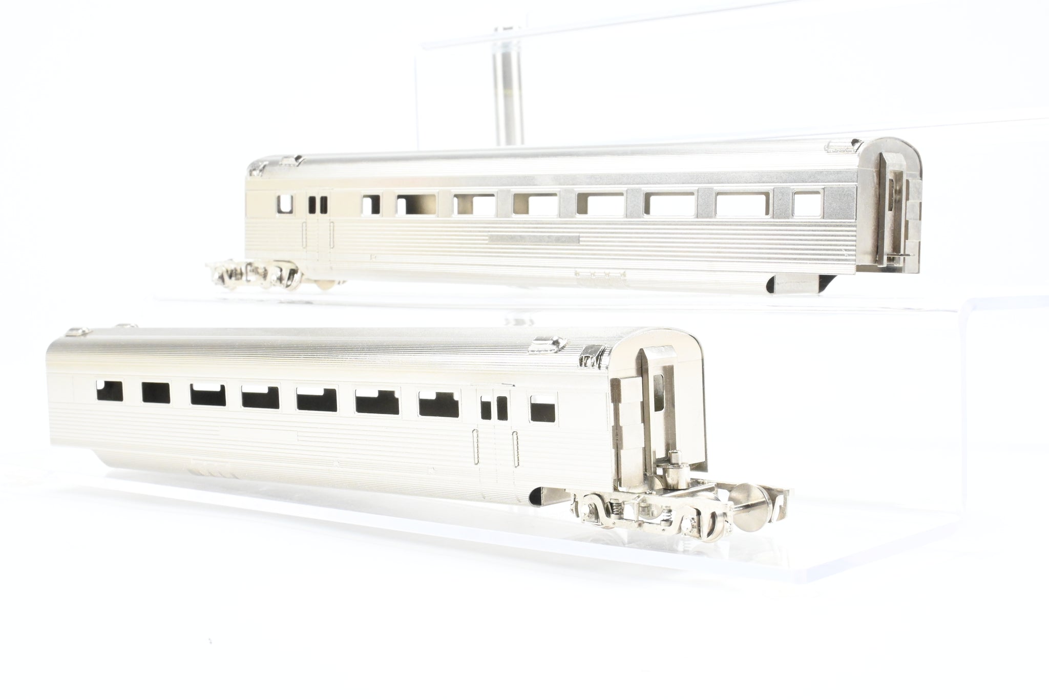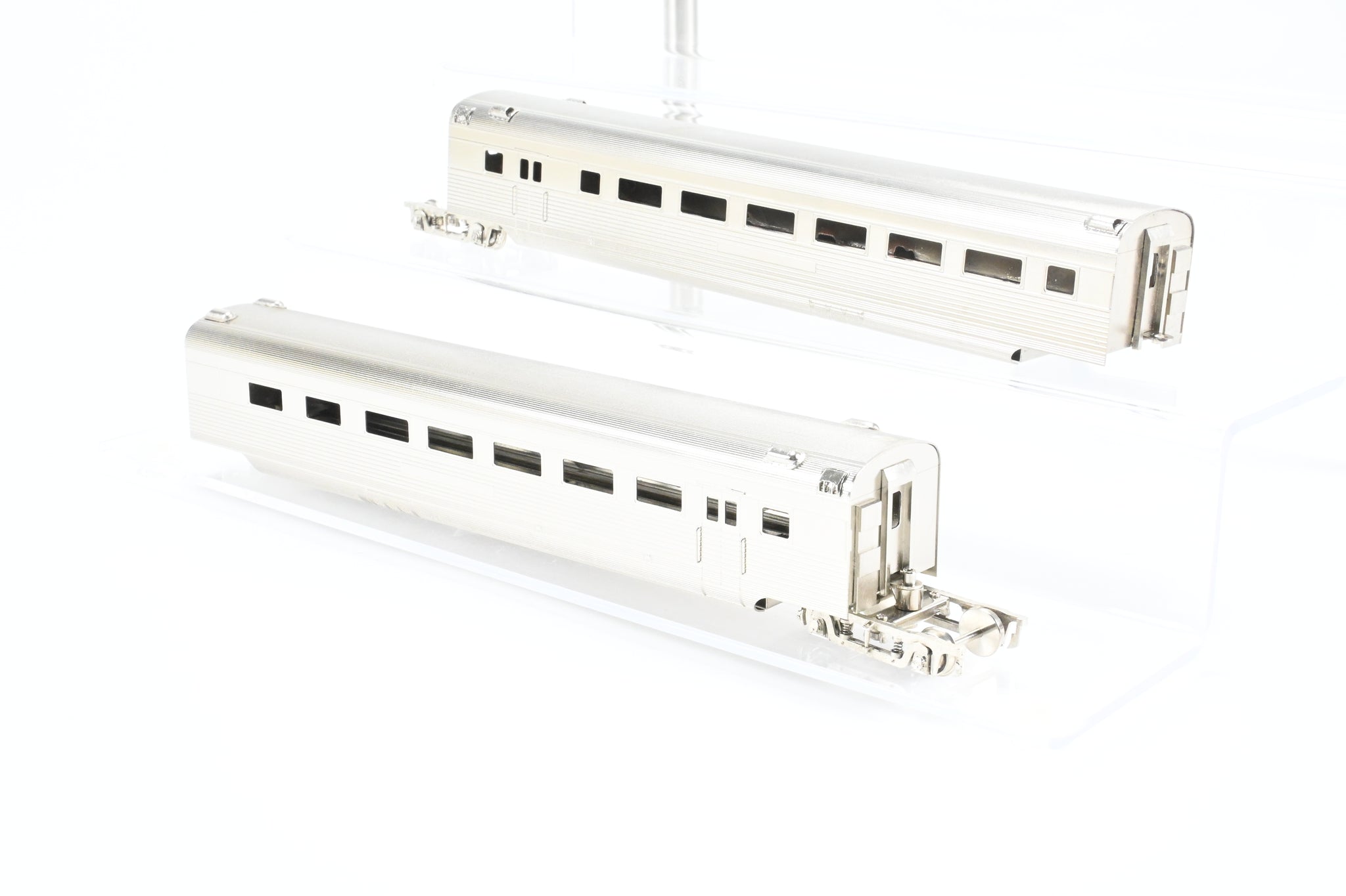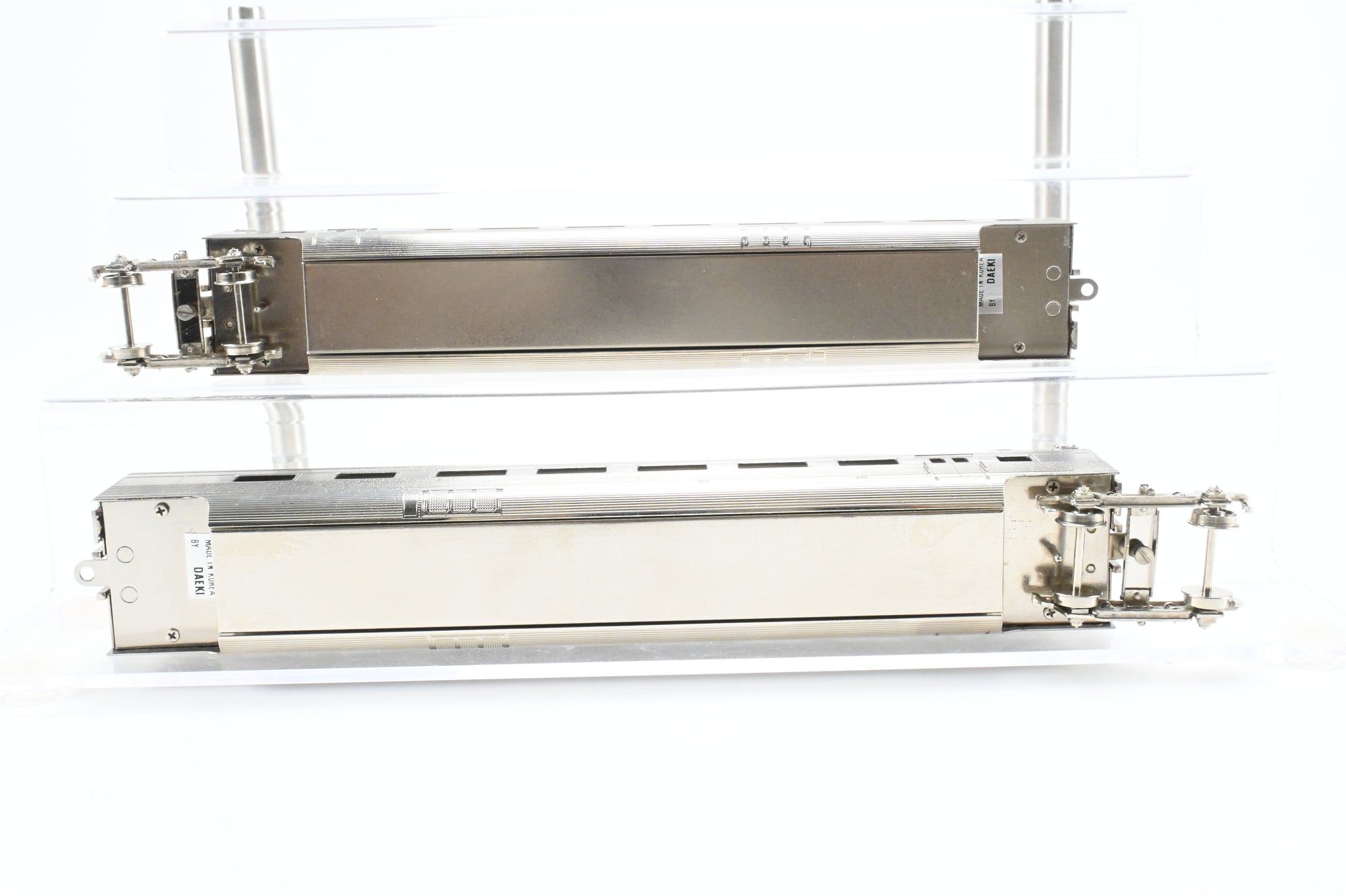 2-Car set imported by Oriental Limited. Models made by DAEKI in Korea. Box shows minor shelf wear. Spare parts included. Plating is excellent. This is a 2 car set consisting of two extra coaches. This set is used on the Nebraska Zephyr articulated train set but originally came from the pre-war Twin Cities Zephyr trains.