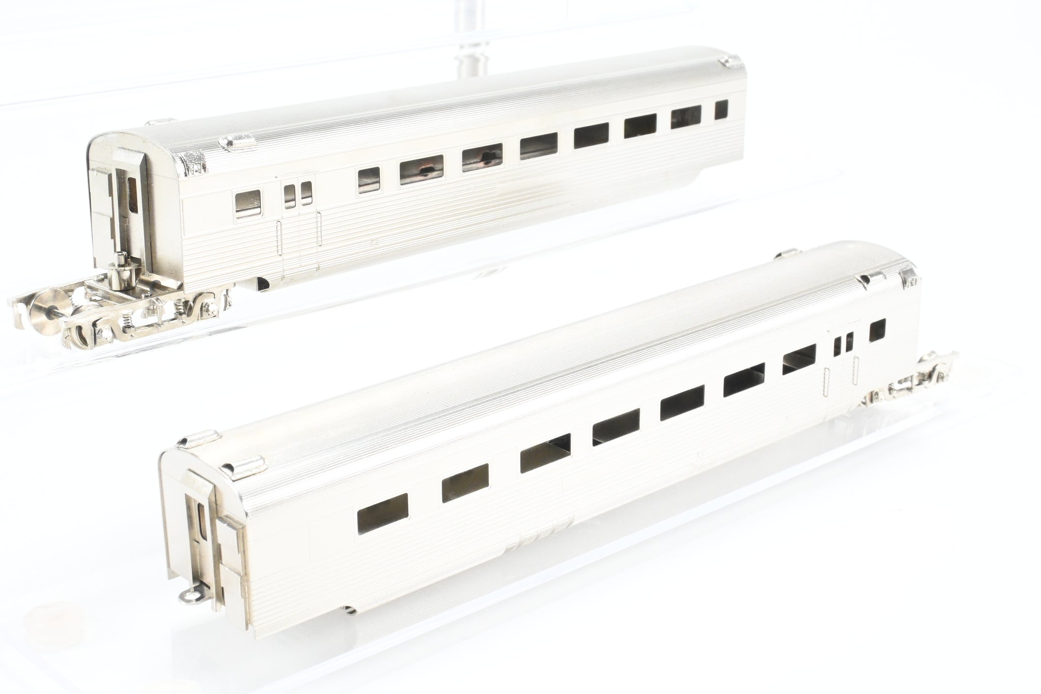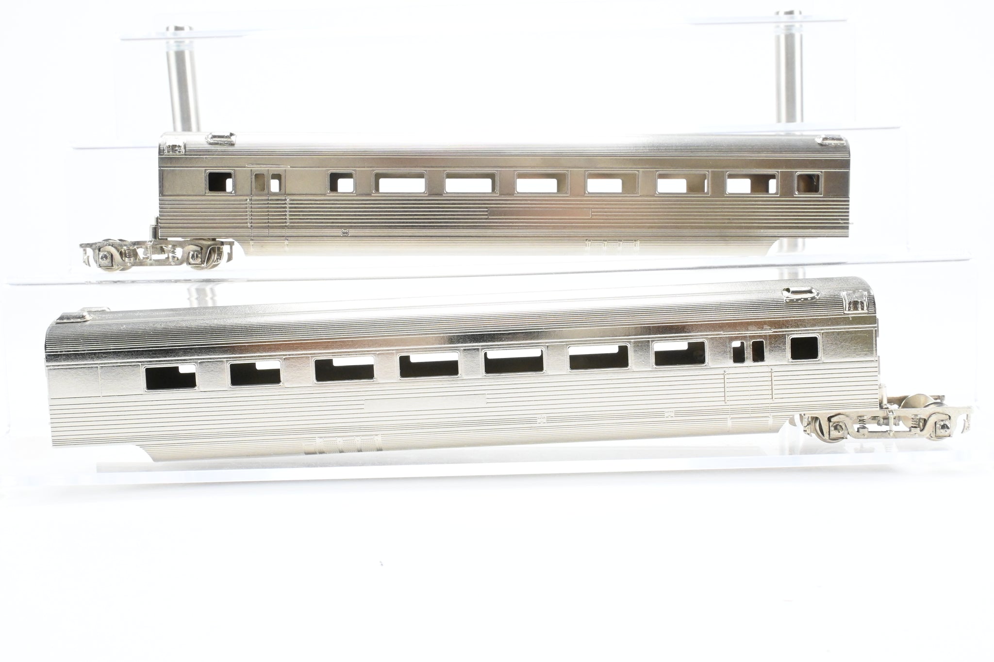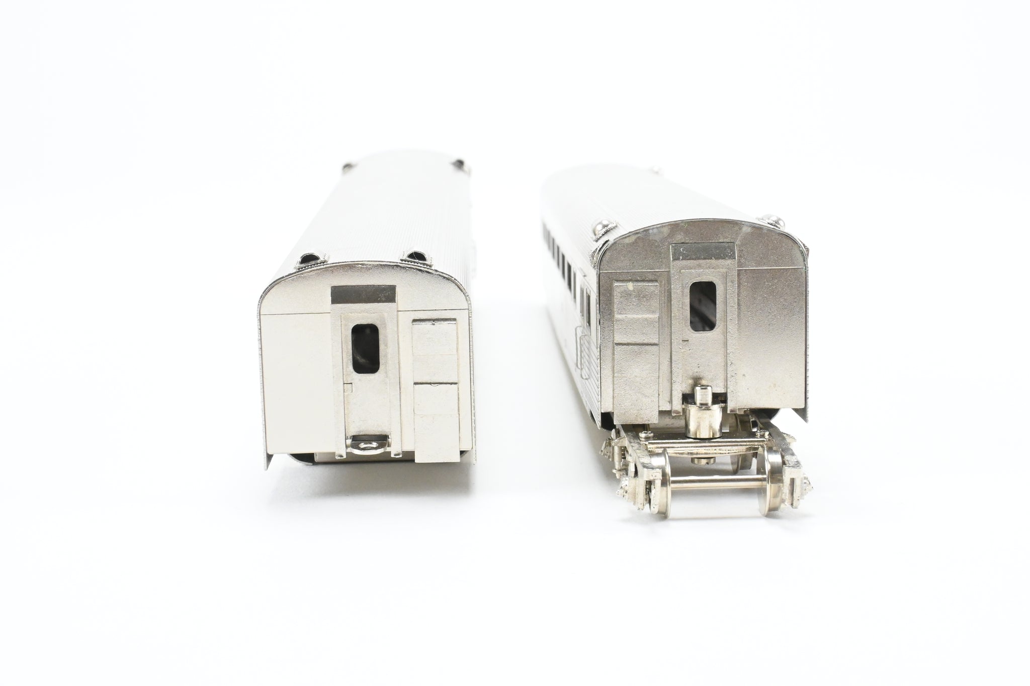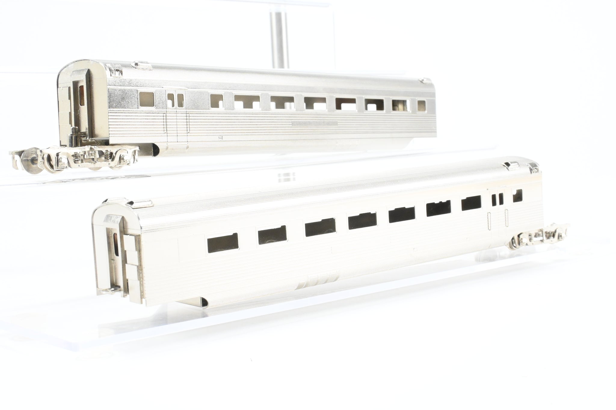 2-Car set imported by Oriental Limited. Models made by DAEKI in Korea. Box shows minor shelf wear. Spare parts included. Plating is excellent. This is a 2 car set consisting of two extra coaches. This set is used on the Nebraska Zephyr articulated train set but originally came from the pre-war Twin Cities Zephyr trains.