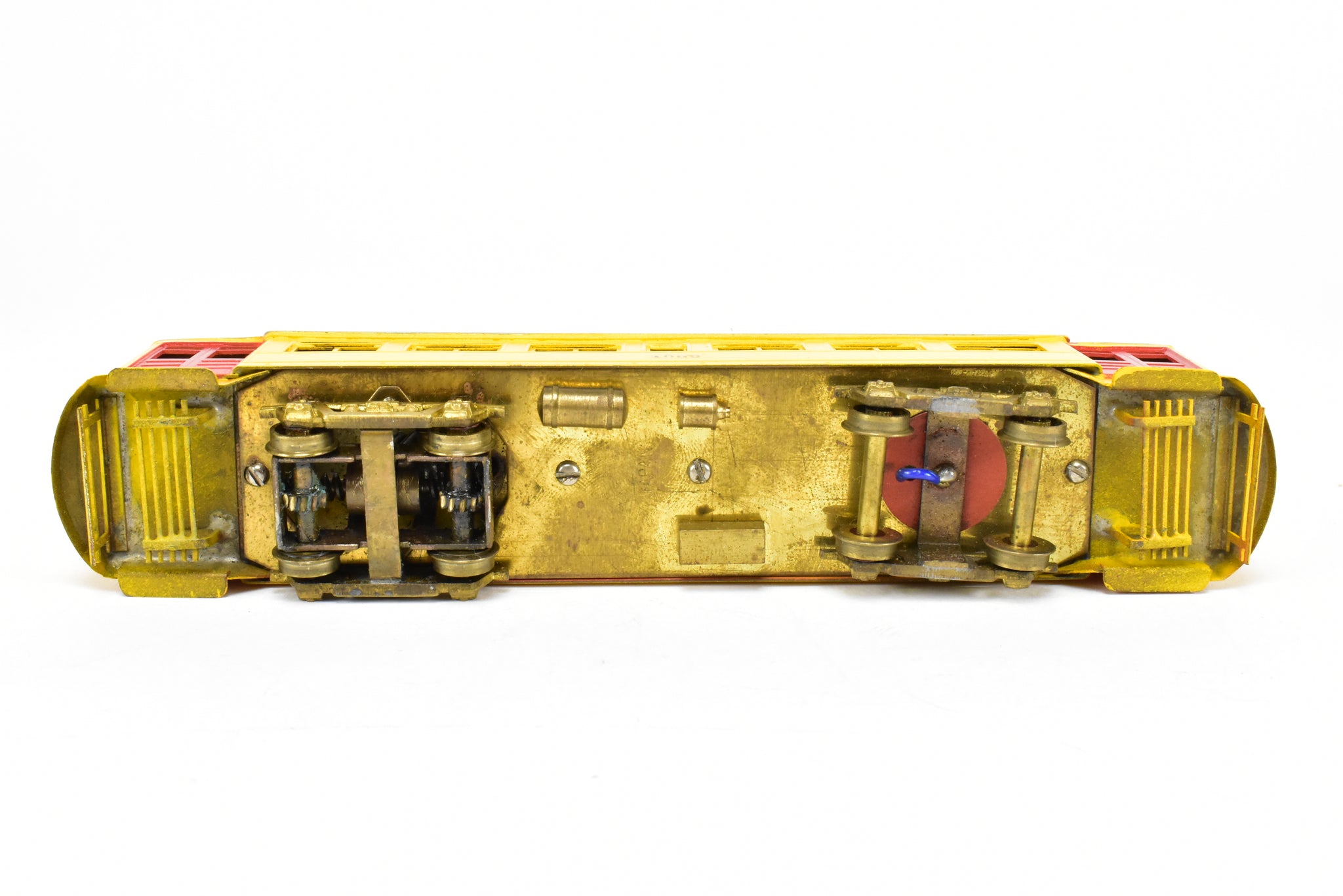 1963 run Model Tramway System imported model built in Japan Box shows minimal shelf wear, with torn label. Hand-written label. Flywheel/Steel belt drive. Solid model with signs of some use. Paintwork is good. Model is custom painted for a private road, numbered but not lettered.
