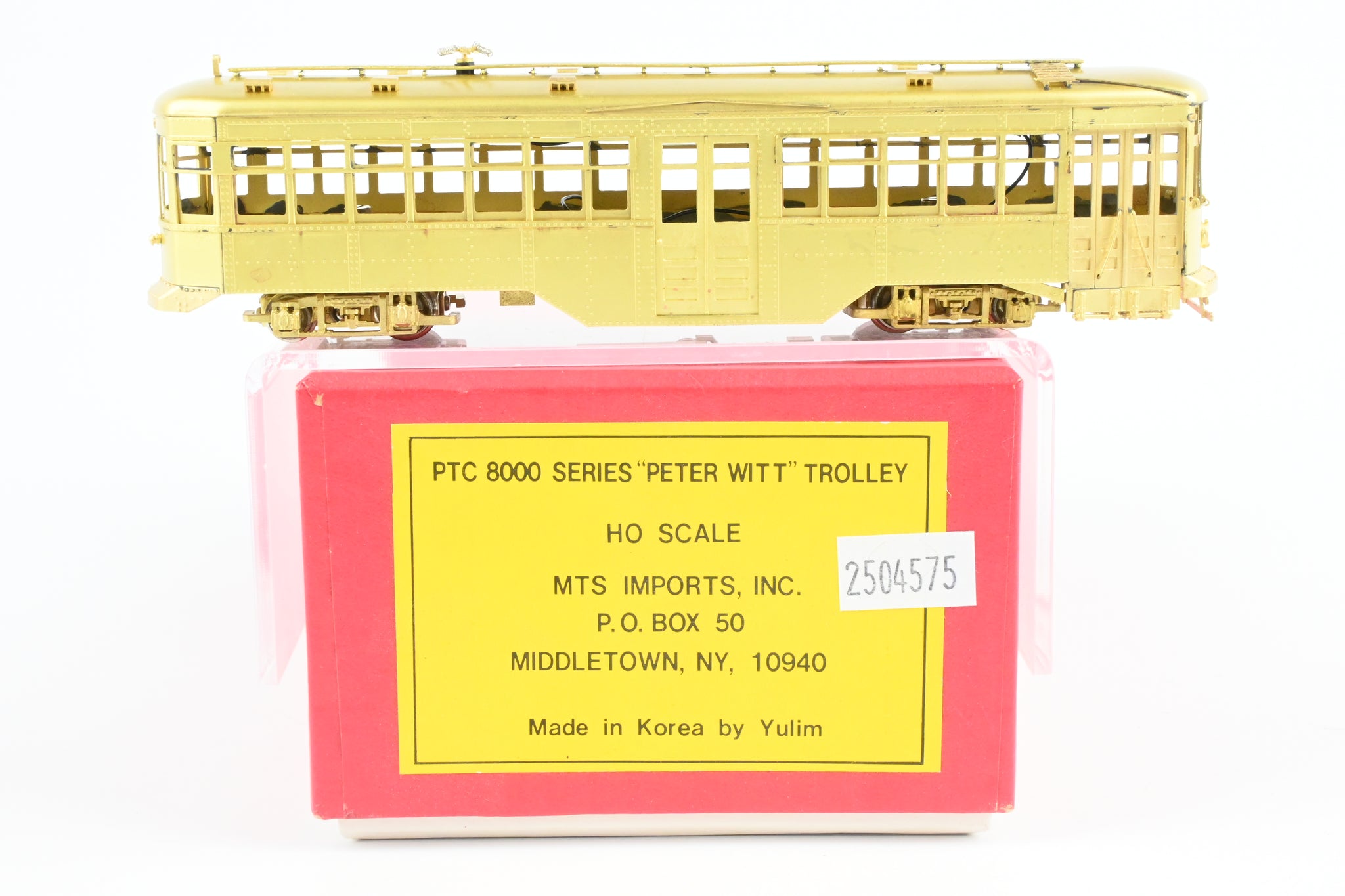 1994 run MTS Imports model built by Yulim in Korea. Box shows almost no shelf wear. No spare parts included. Trolley pole included, but not installed. Switch underneath allows either rail only electrical or one rail and trolley pole electrical pickup. Under floor mounted motor drive allows for full interior. A smooth and quiet runner, it shows little signs of use. Please Note: Trolley pole has been repaired and reinstalled since photos were taken.