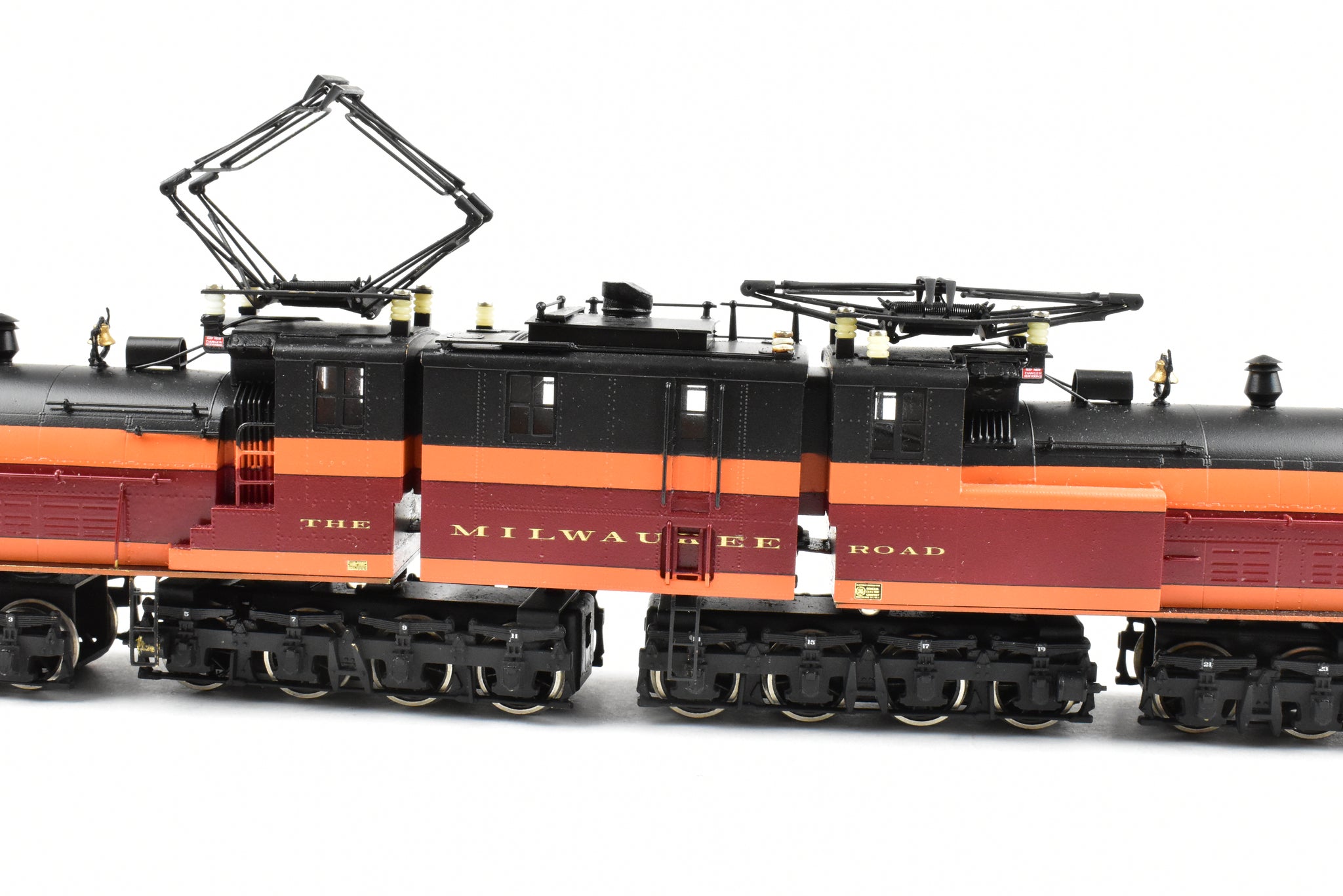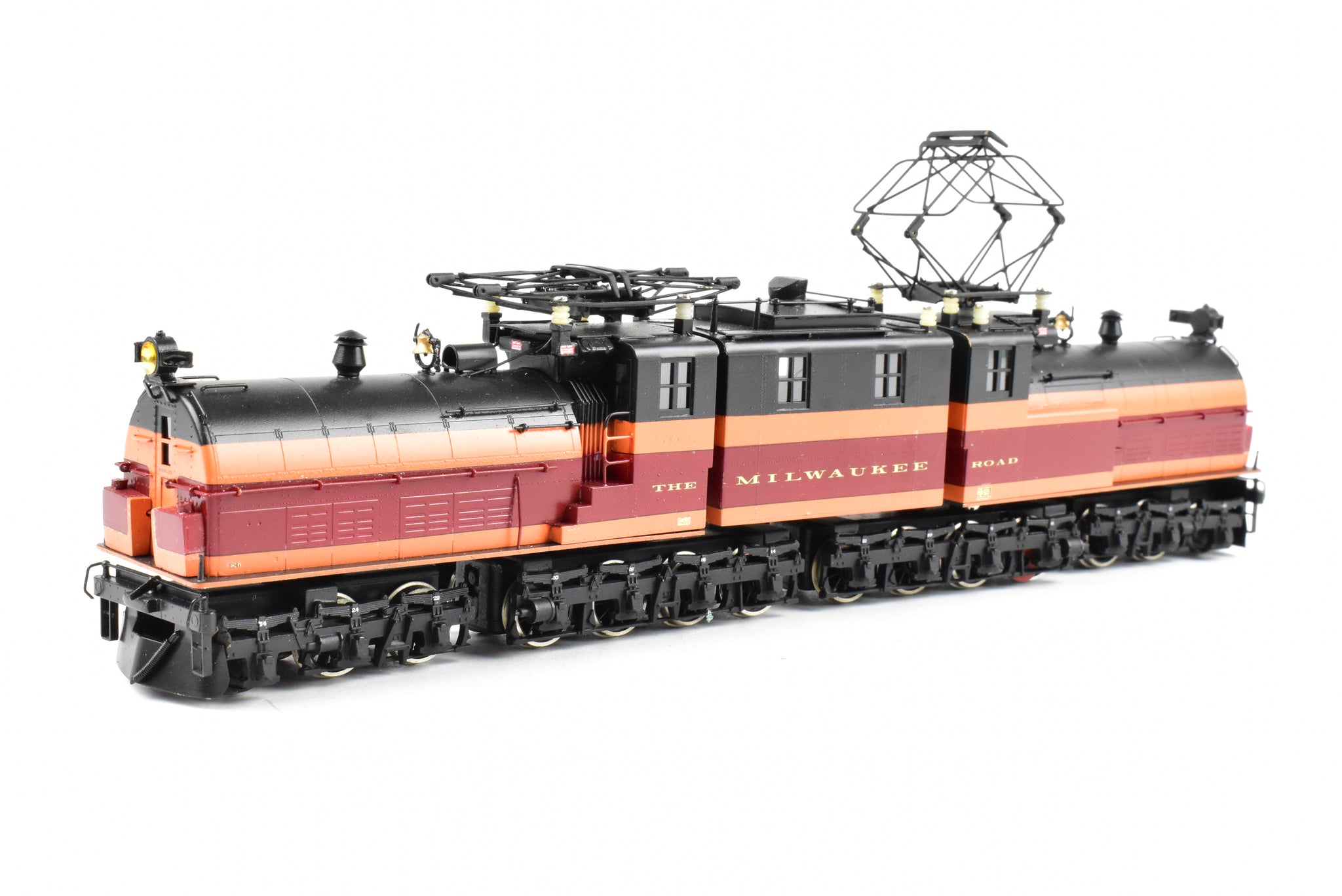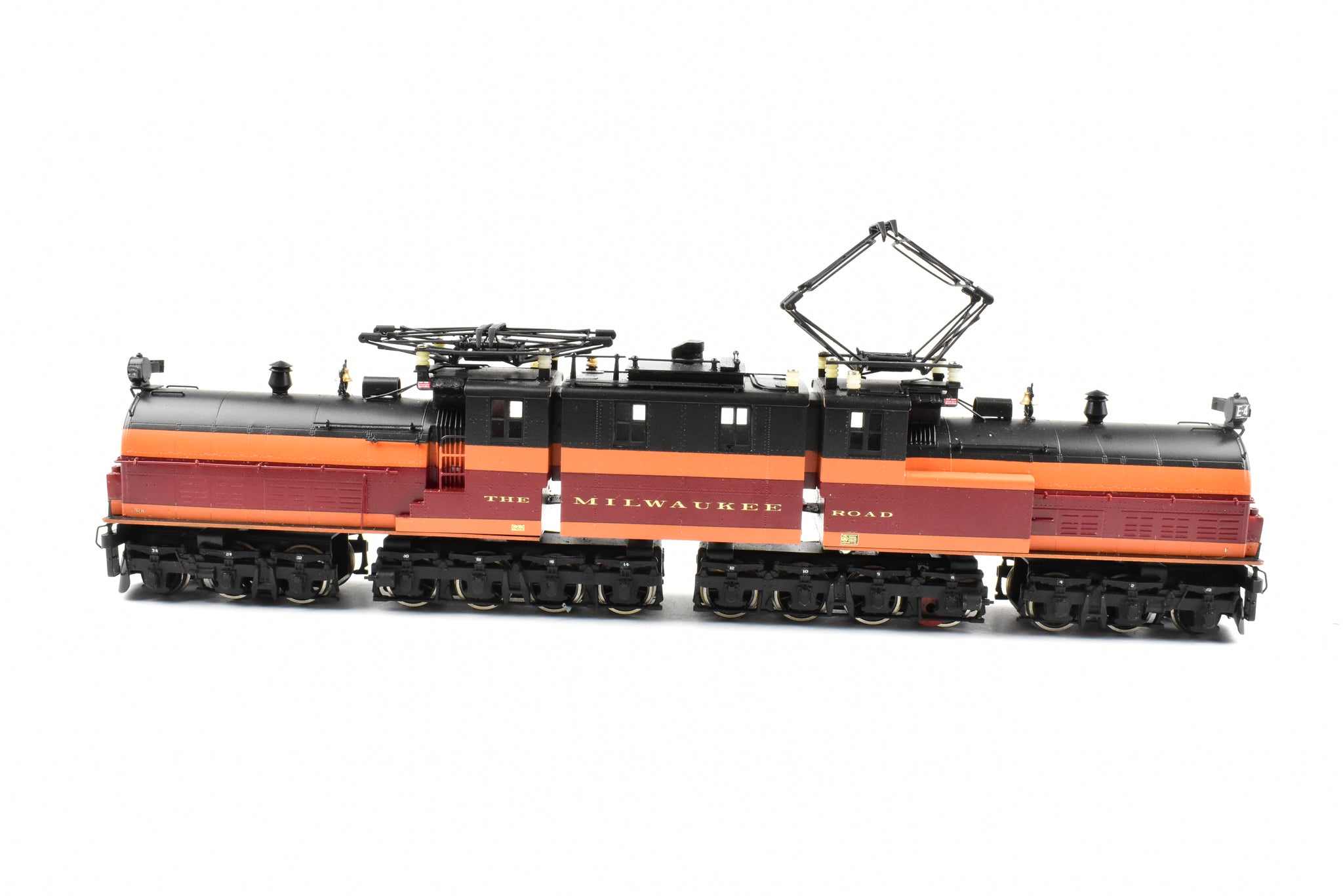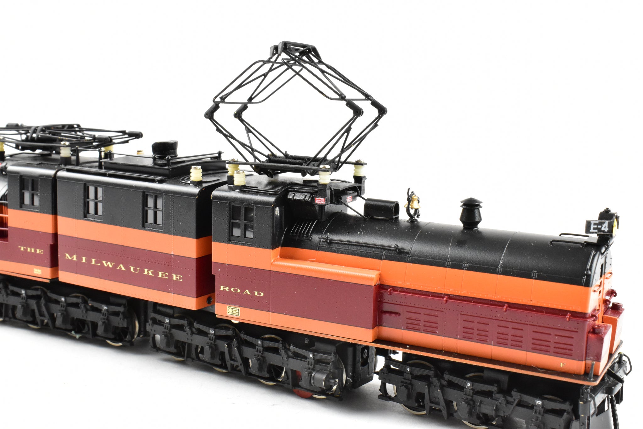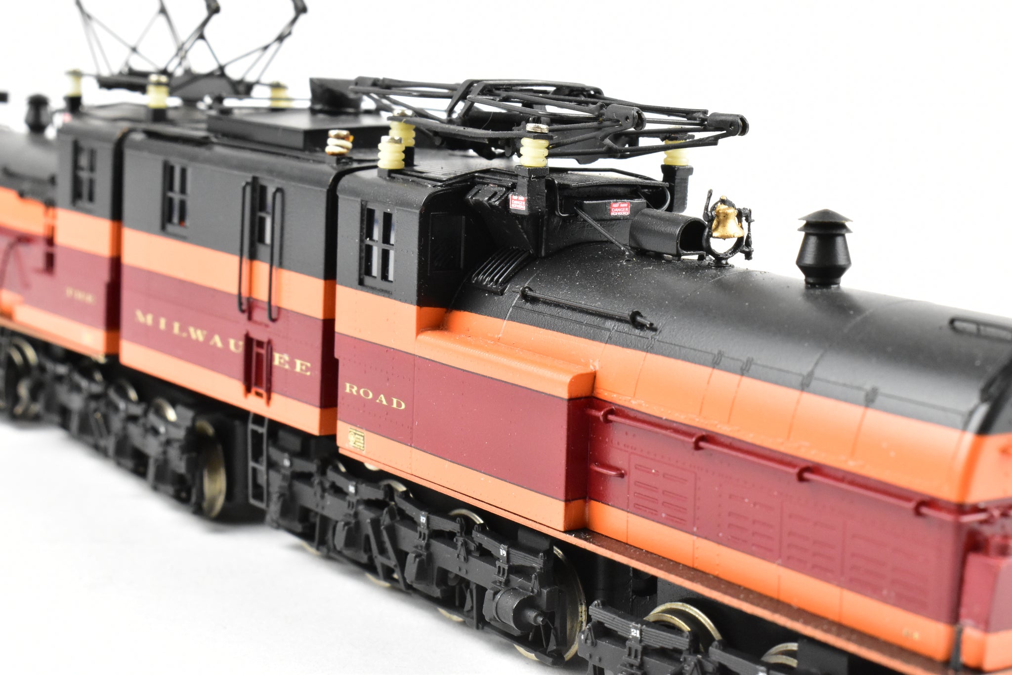 1973 run NJ Custom Brass imported model built by Kumata in Japan. Box shows minimal shelf wear. Spare parts included. Beautiful Pro-Paint work. Glazing, proper sized number boards on the headlights, and MV lenses have been added. Note: Model runs, but does not track well. In addition, one pantograph does not stay latched in the down position.