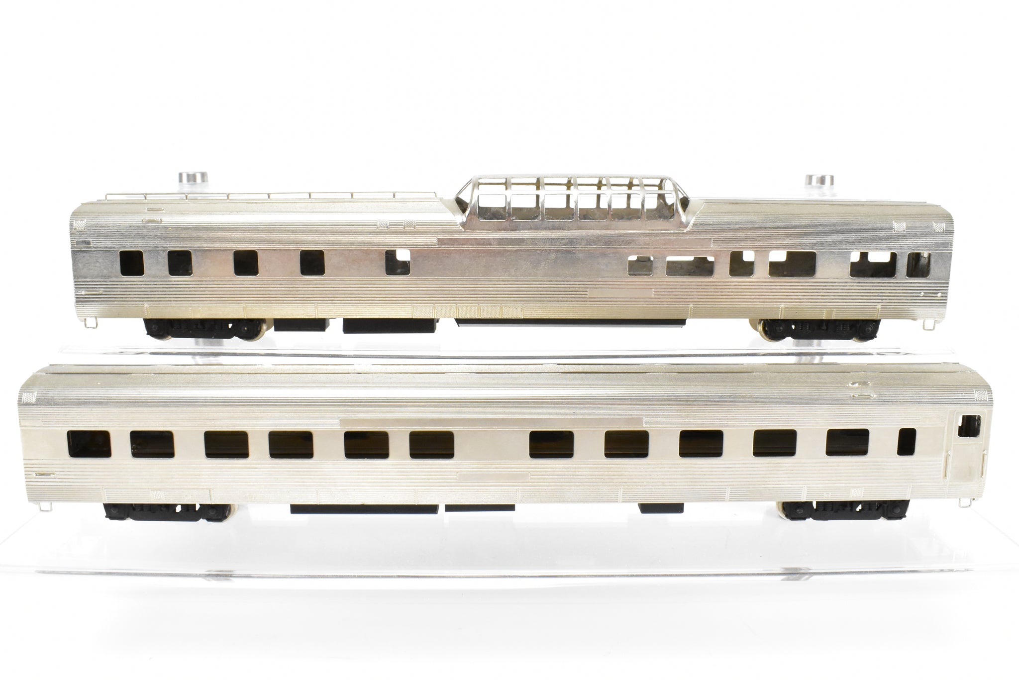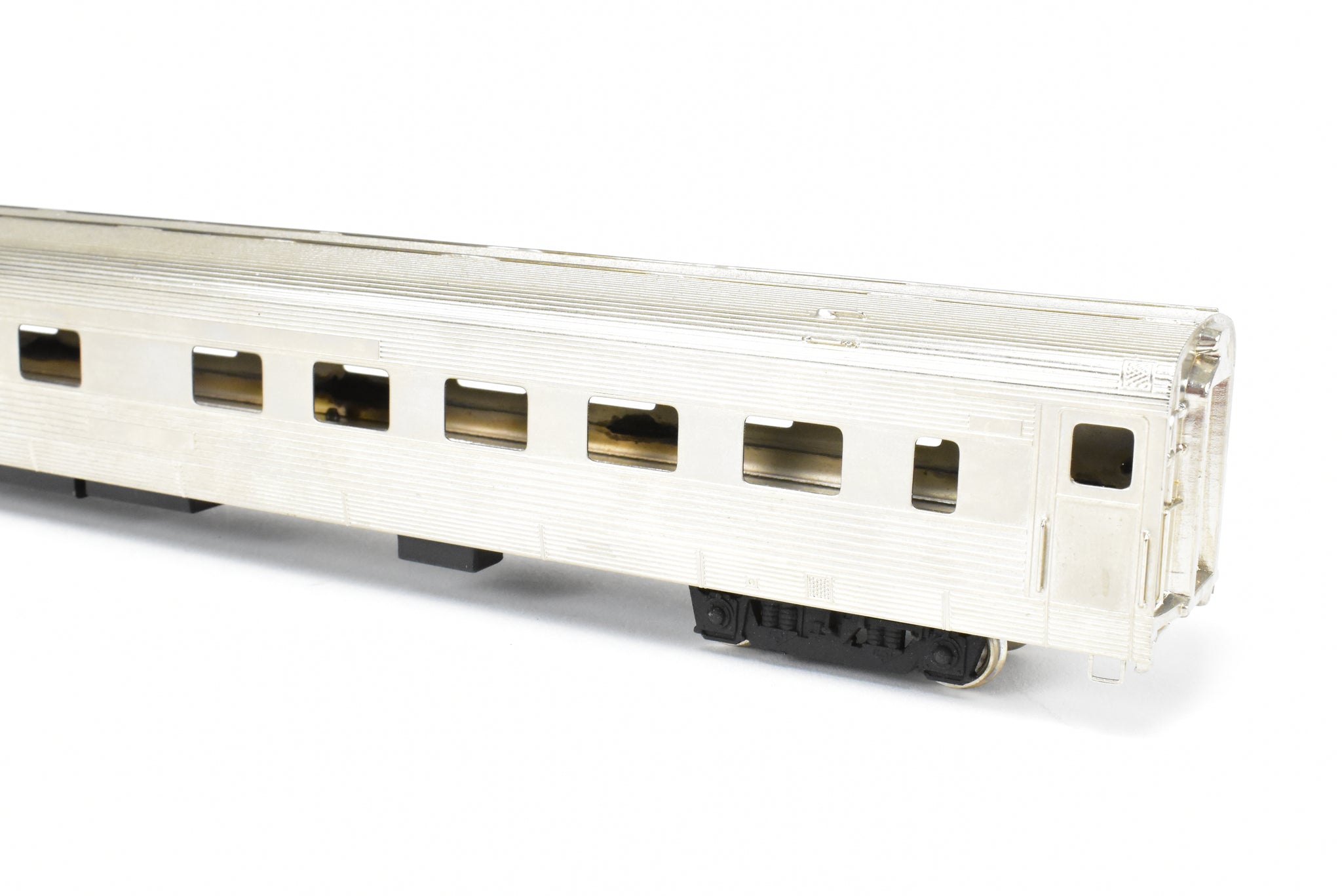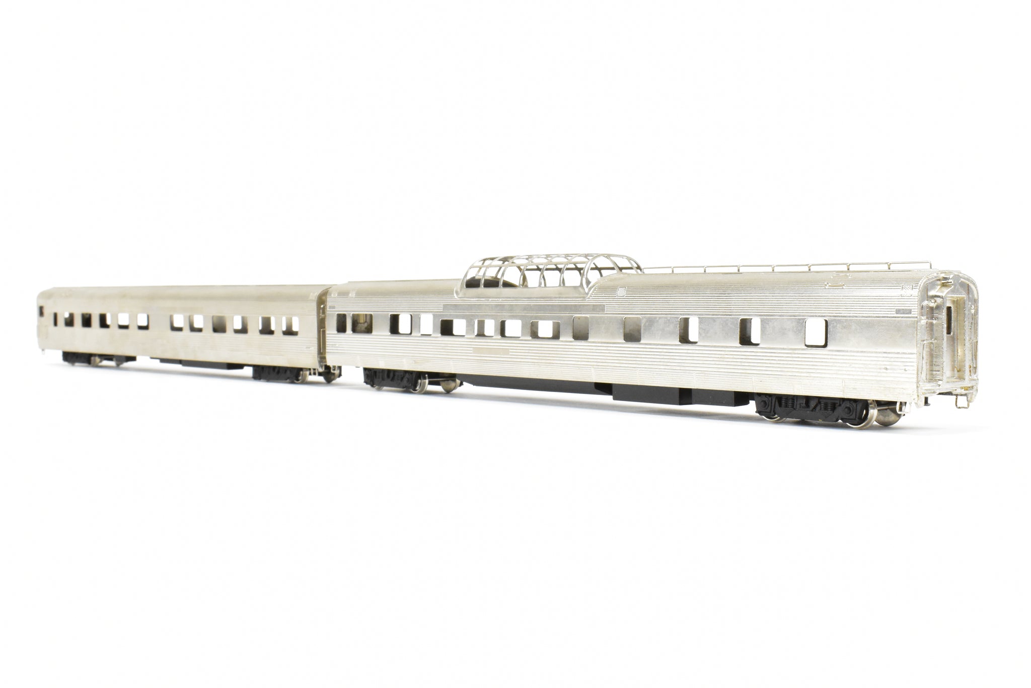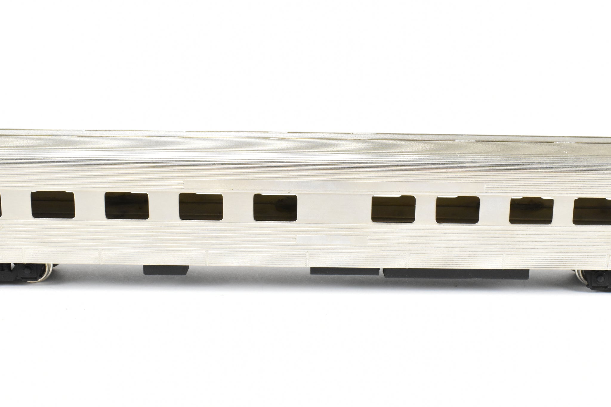 Models built by Kumata (KMT) in Japan. Box shows minimal shelf wear. Spare parts are not included. Set that includes a Dome Coach and a 10-6 sleeper. NOTE: the Budd 10-6 sleeper is wrong, should have the 16 Section sleeper instead. Cars have minor wear (see photos). A nice set.