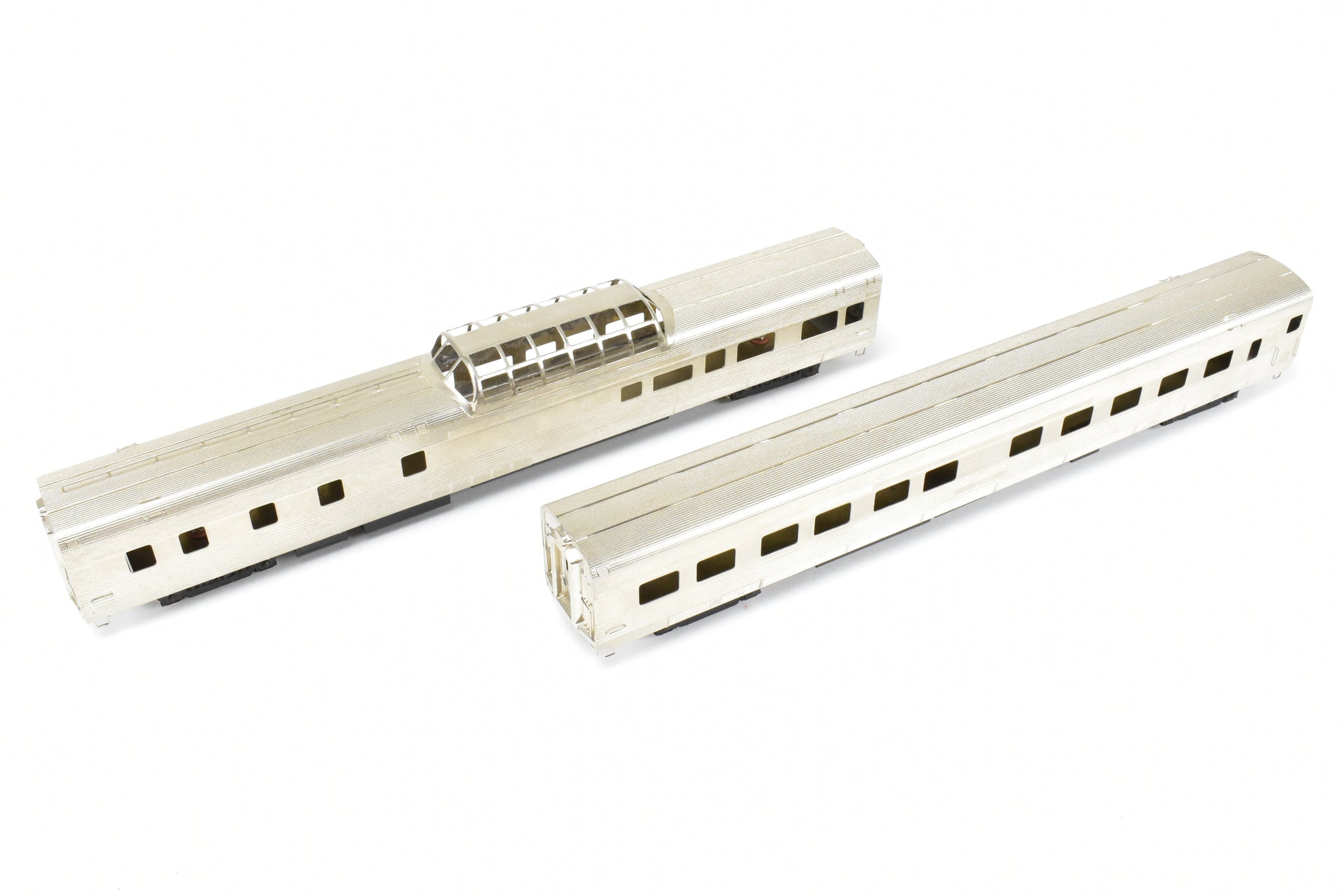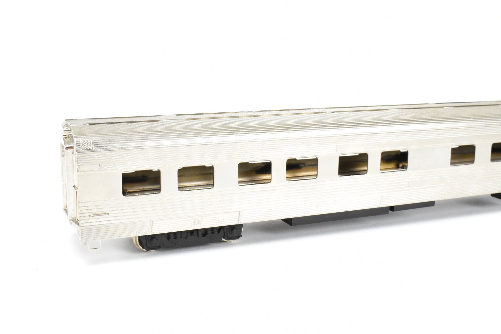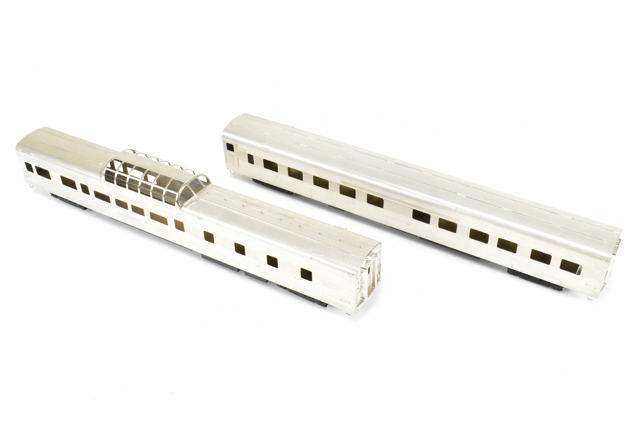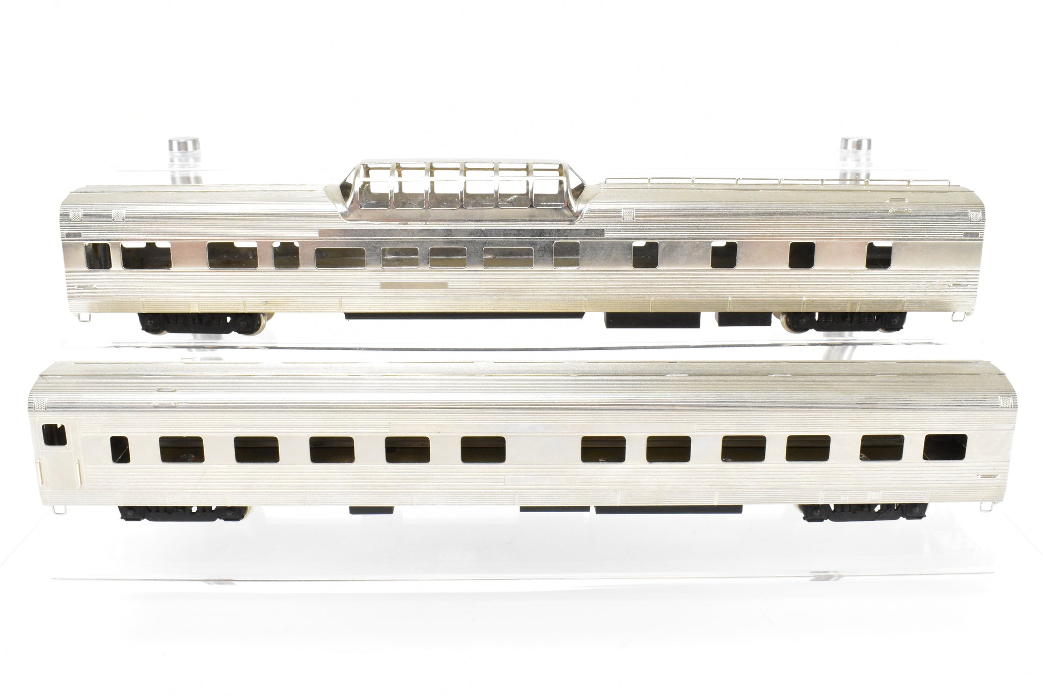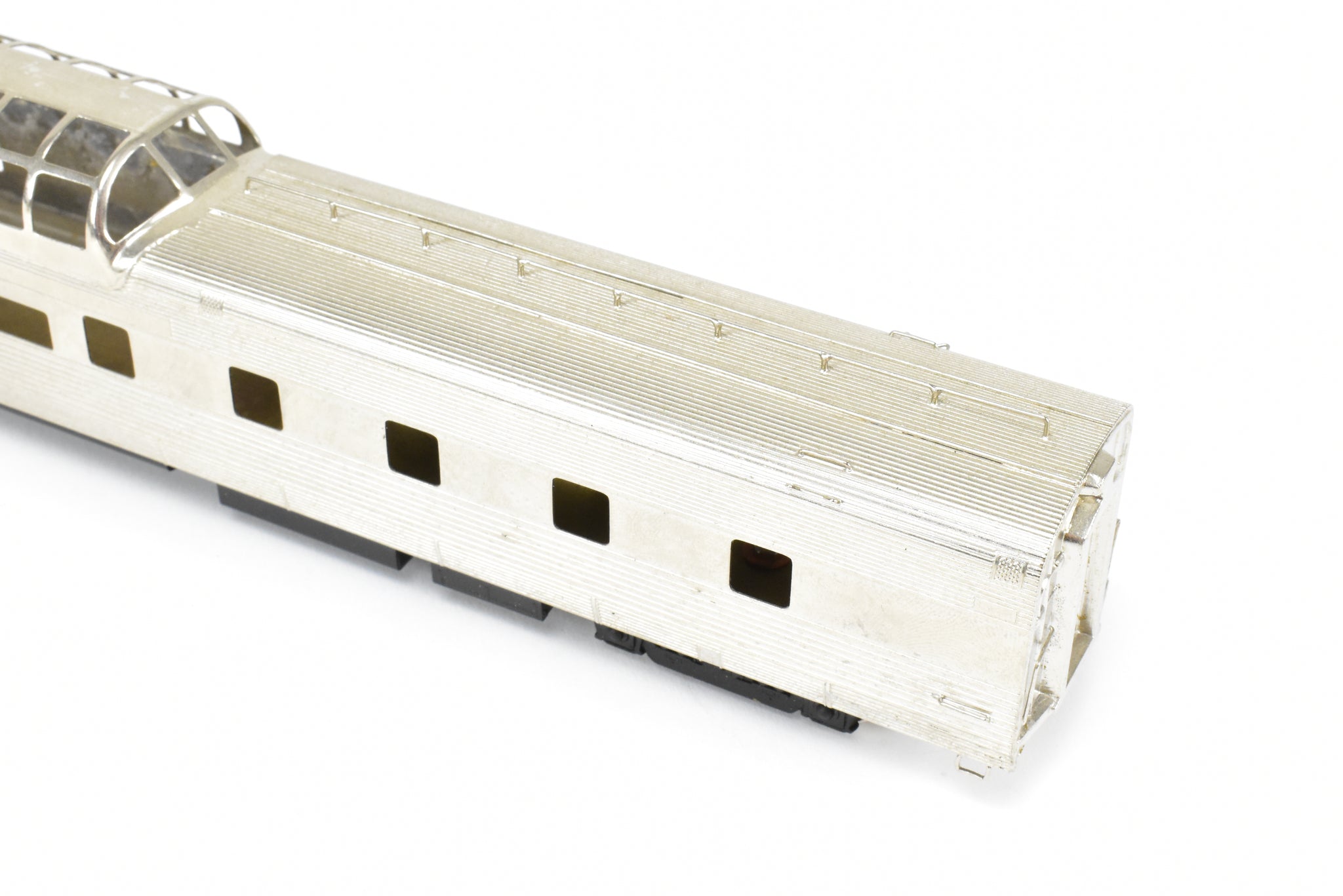 Models built by Kumata (KMT) in Japan. Box shows minimal shelf wear. Spare parts are not included. Set that includes a Dome Coach and a 10-6 sleeper. NOTE: the Budd 10-6 sleeper is wrong, should have the 16 Section sleeper instead. Cars have minor wear (see photos). A nice set.