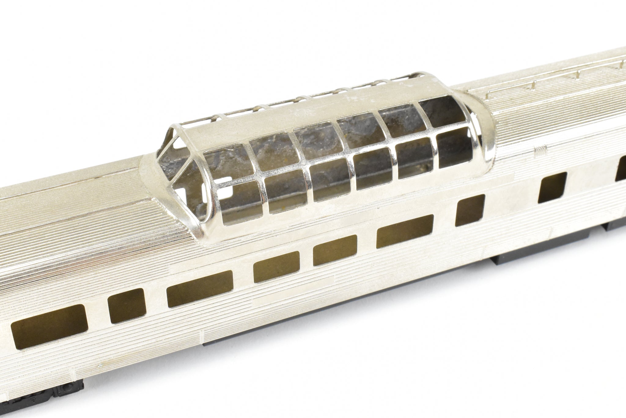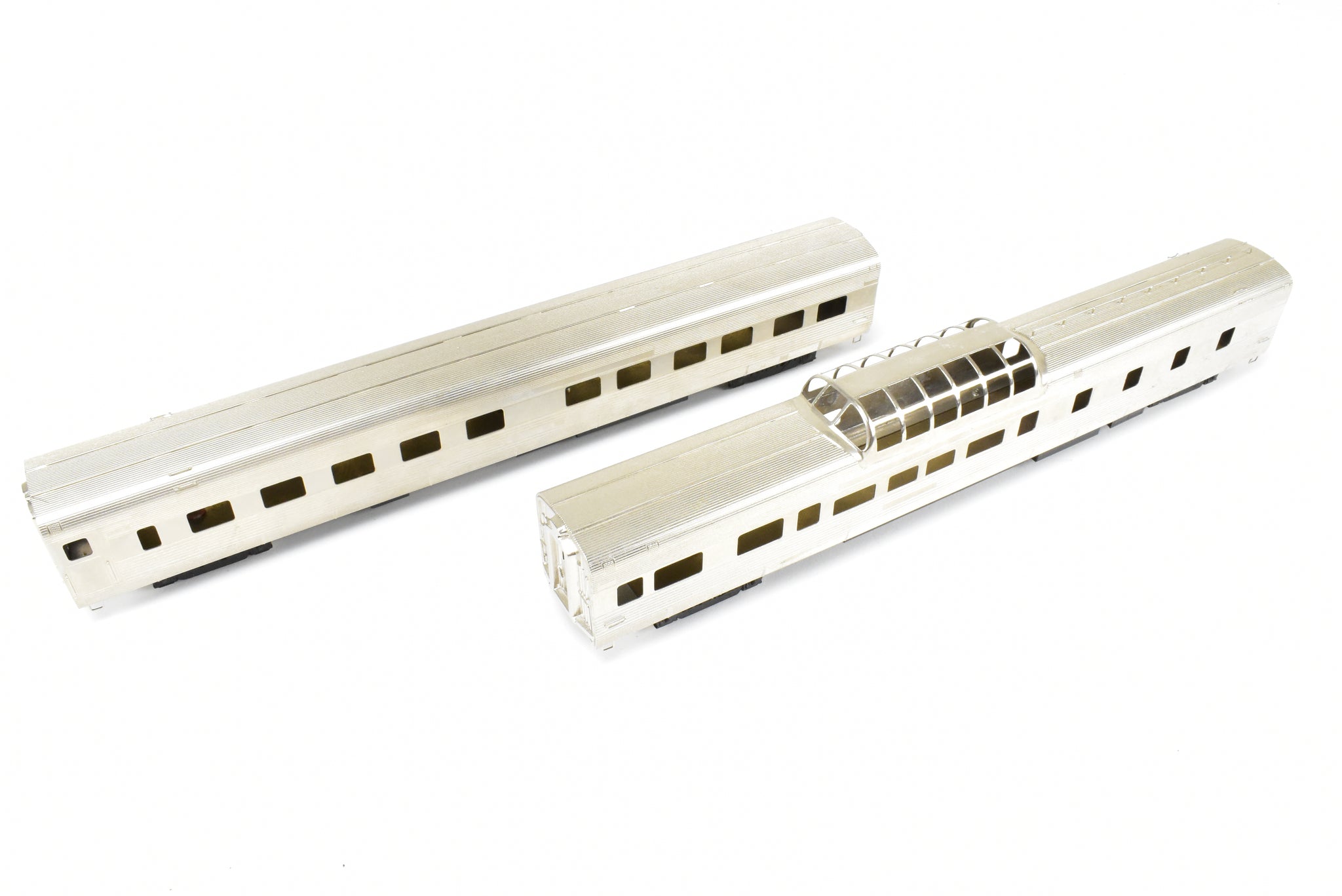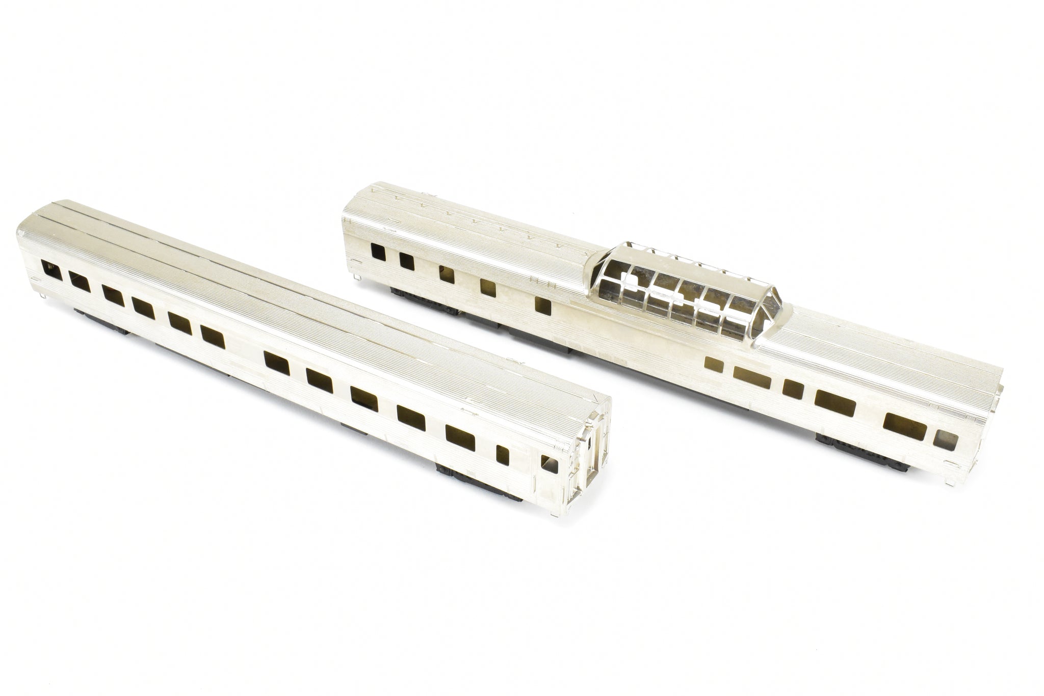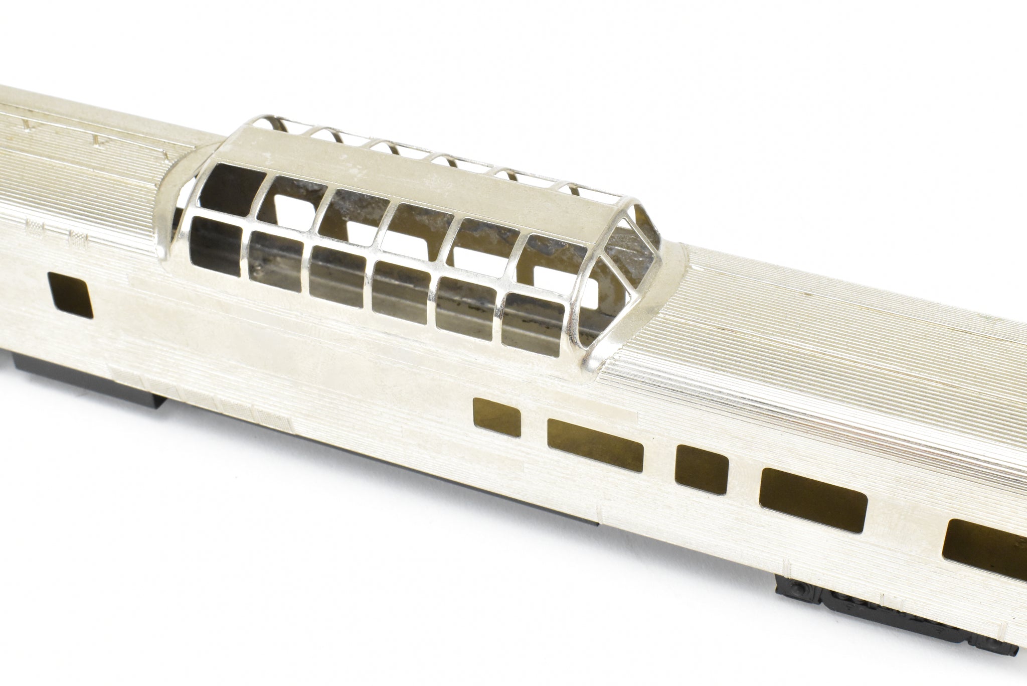 Models built by Kumata (KMT) in Japan. Box shows minimal shelf wear. Spare parts are not included. Set that includes a Dome Coach and a 10-6 sleeper. NOTE: the Budd 10-6 sleeper is wrong, should have the 16 Section sleeper instead. Cars have minor wear (see photos). A nice set.