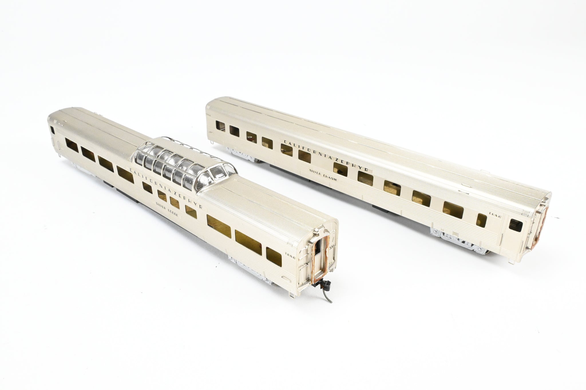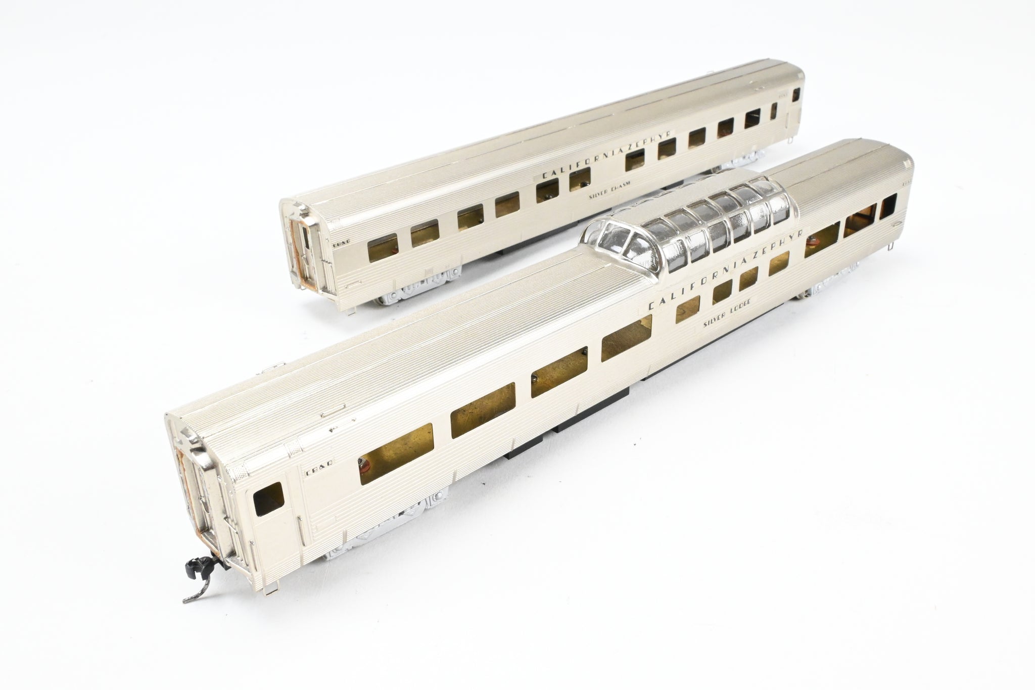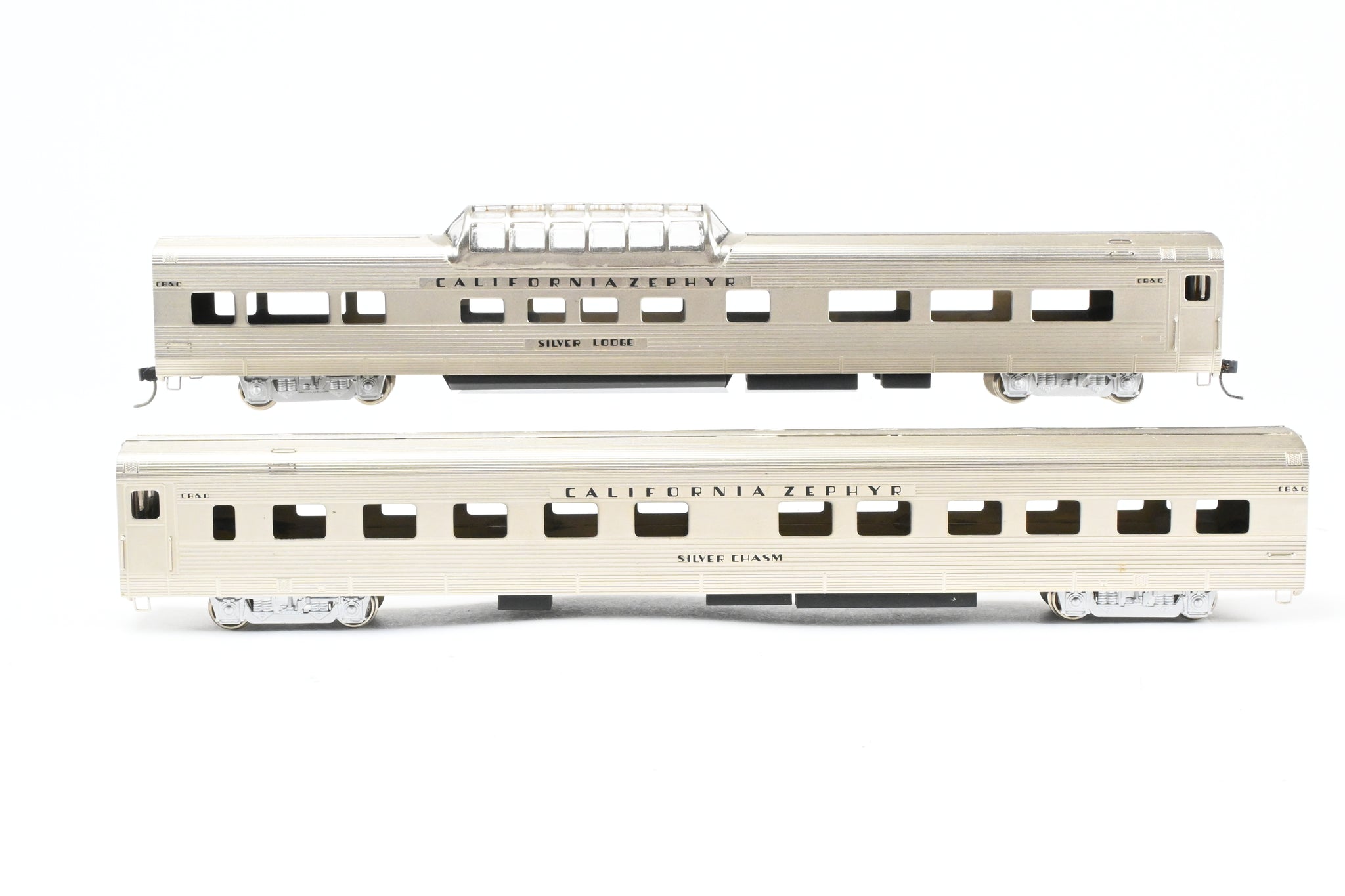 Decorated: Unpainted - Minor wear in the plating. Models decaled for CB&Q Silver Lodge and Silver Chasm.