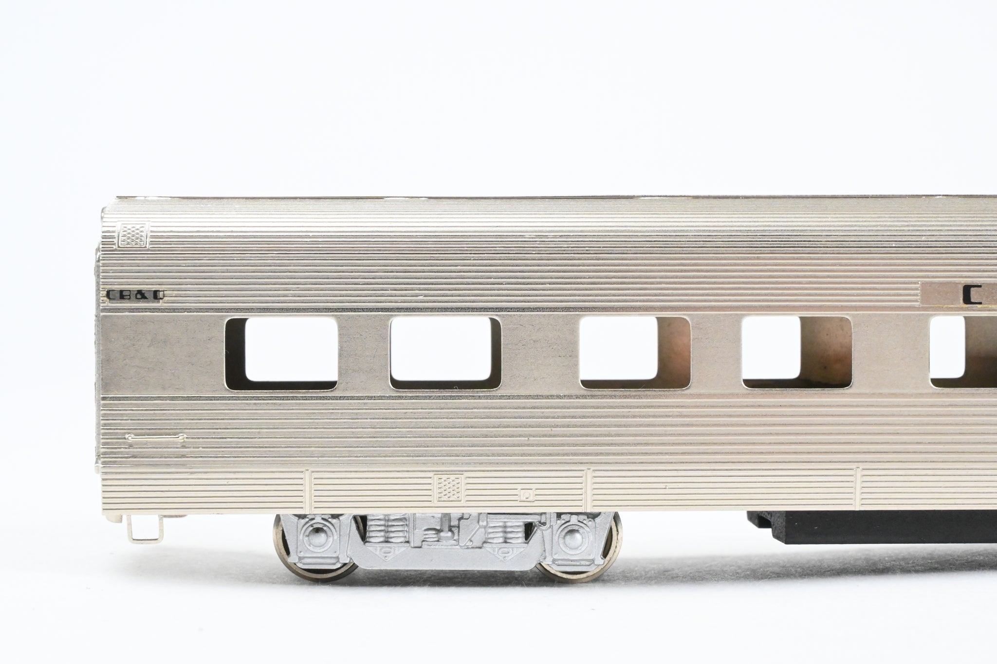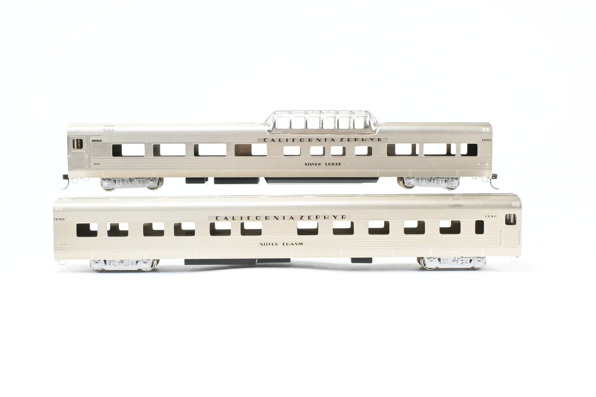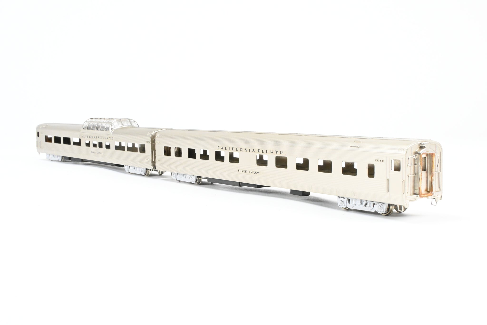 Decorated: Unpainted - Minor wear in the plating. Models decaled for CB&Q Silver Lodge and Silver Chasm.