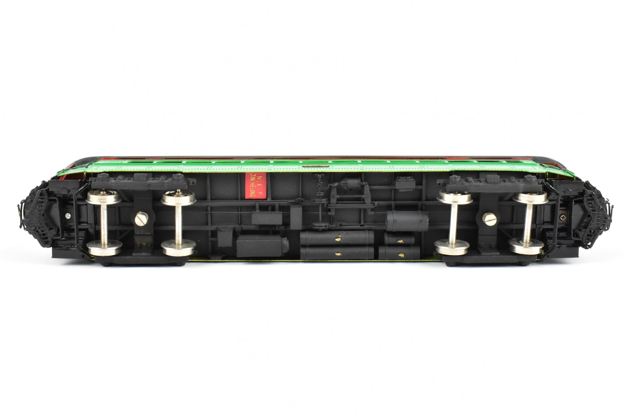 1980's run Nickel Plate Products imported model built by Jin Hueng in Korea. Reboxx box and foam show virtually no wear. No spare parts included. Factory painted. Unpowered trailer. Very hard to find model with very few produced.