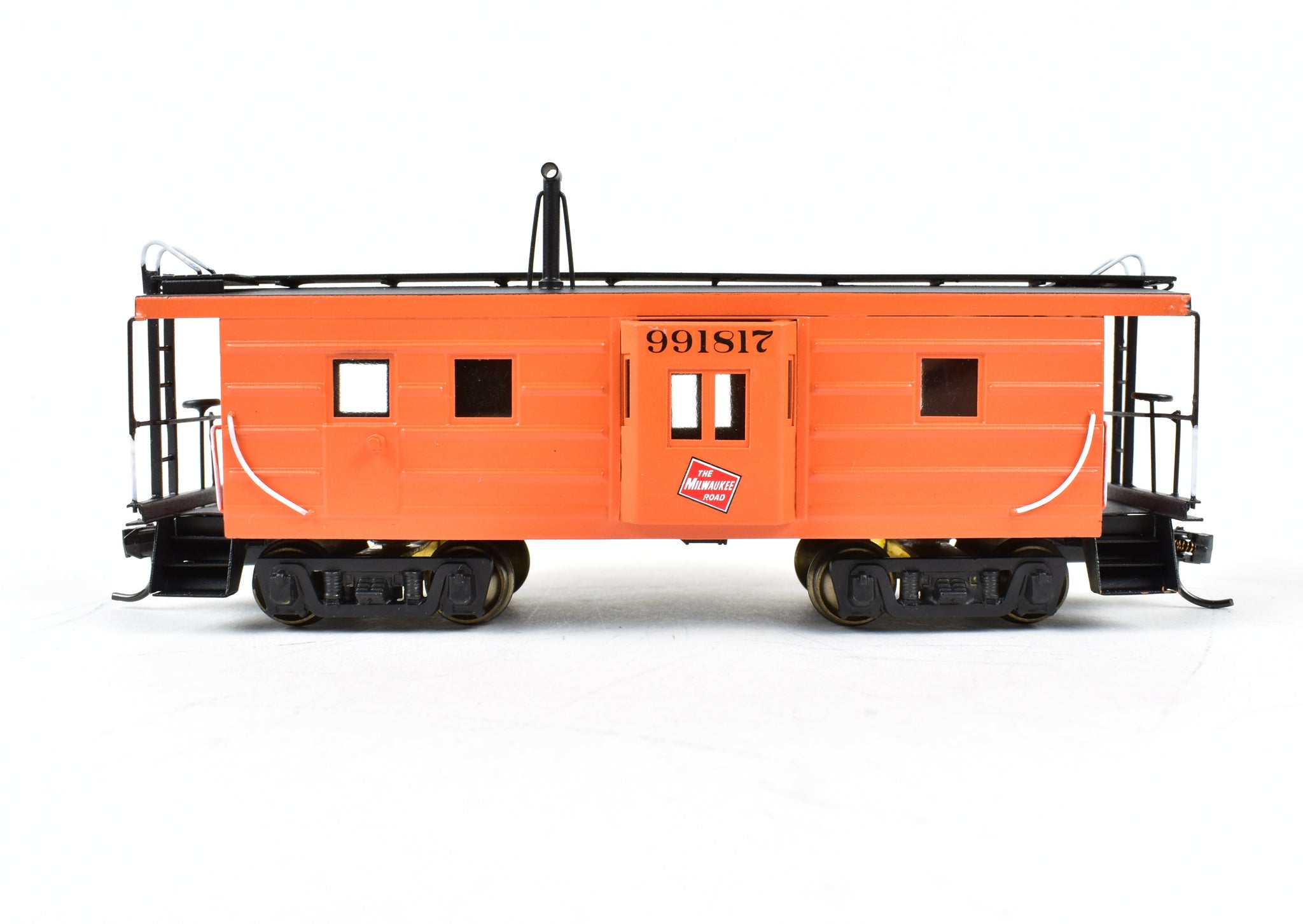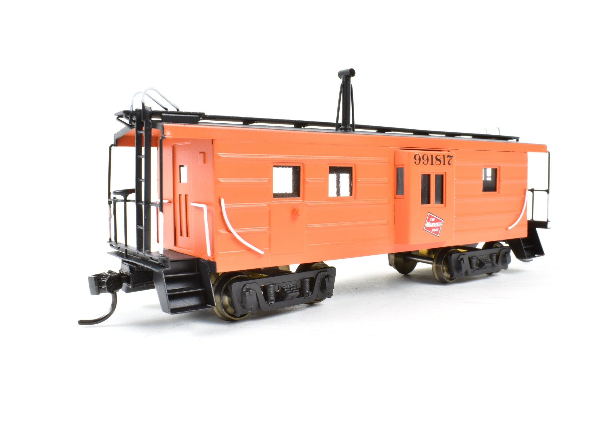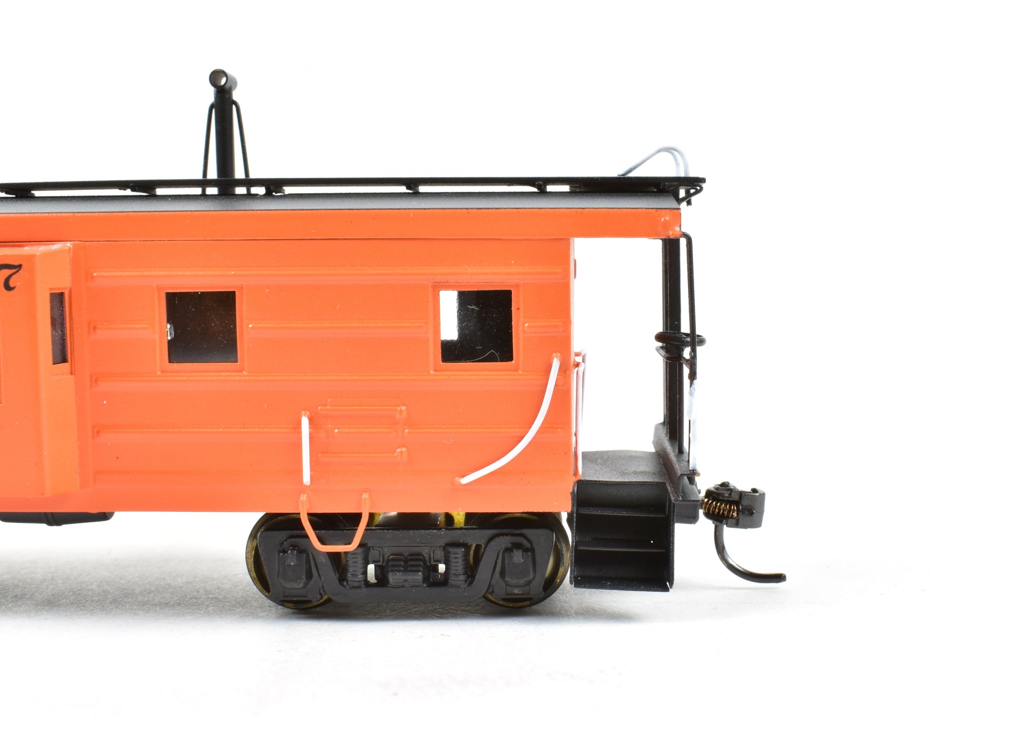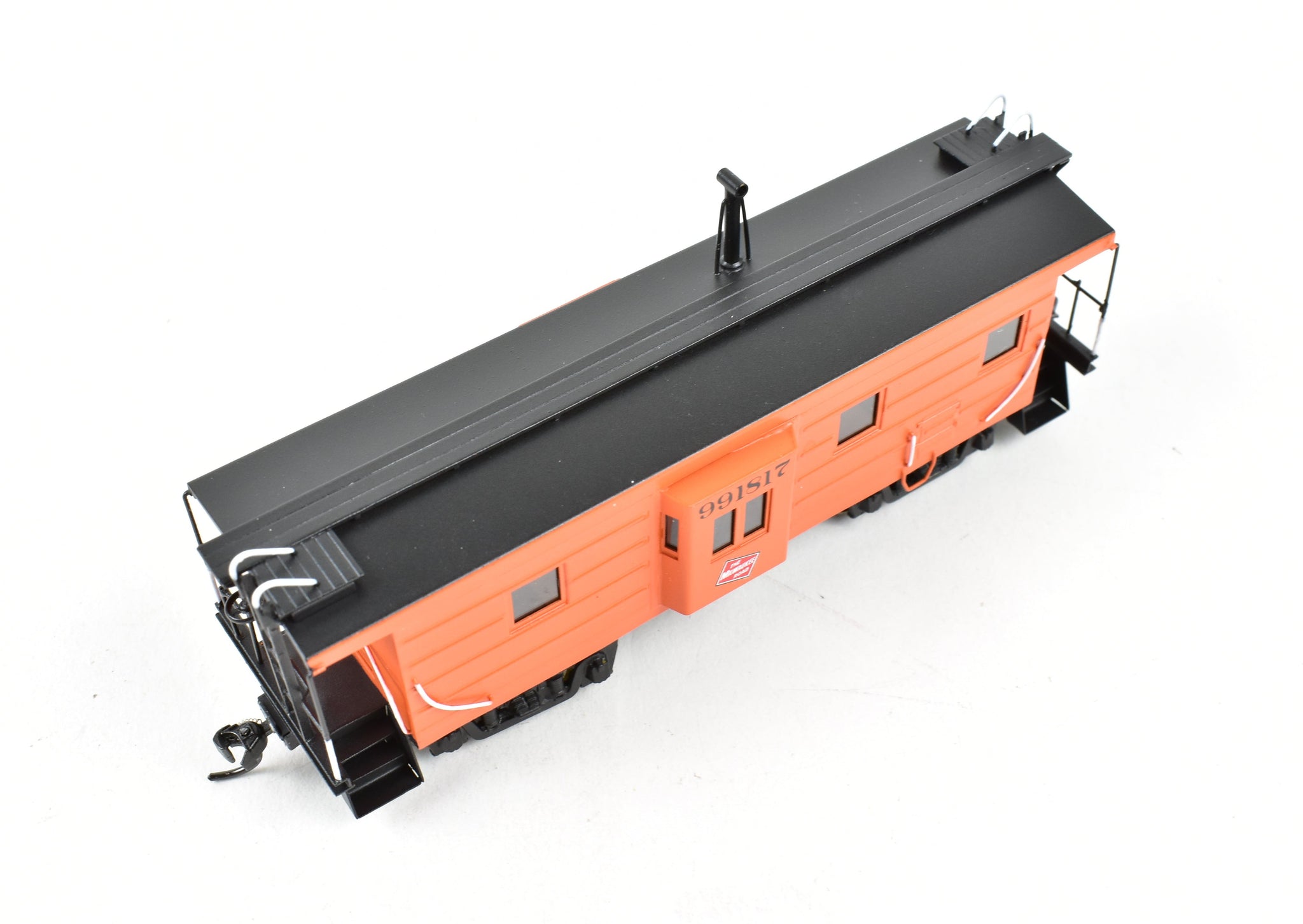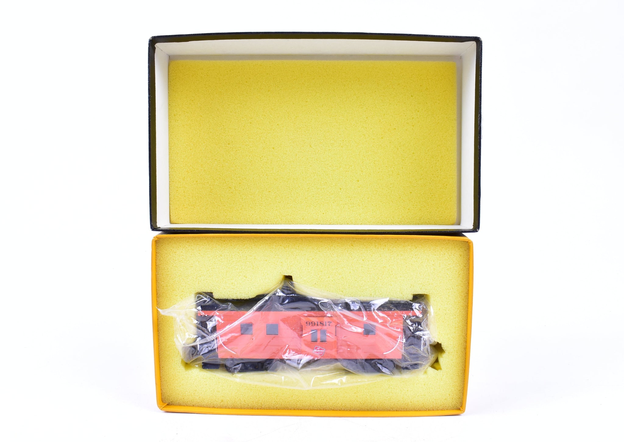Built in 1975 by Kumata in Japan. Box shows minimal shelf wear. No Spare parts included. Model is of a steel bay window caboose. Pro-Paint work with no decal film showing. Glazing installed. Great example of this model.
